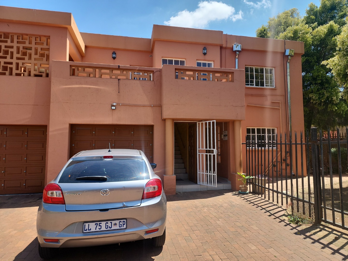 Discover this townhouse, ideally situated in the suburban heart of Brackendowns, Alberton. Presenting excellent kerb appeal, the property features a well-maintained peach-colored exterior, a paved driveway leading to a single attached garage, and a secure pedestrian gate with perimeter fencing. A charming balcony offers an additional outdoor living space, complemented by mature trees providing natural shade.