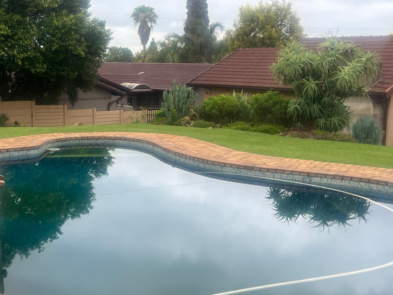 A sparkling pool forms the centrepiece of the outdoor space, offering tranquil views across the property.