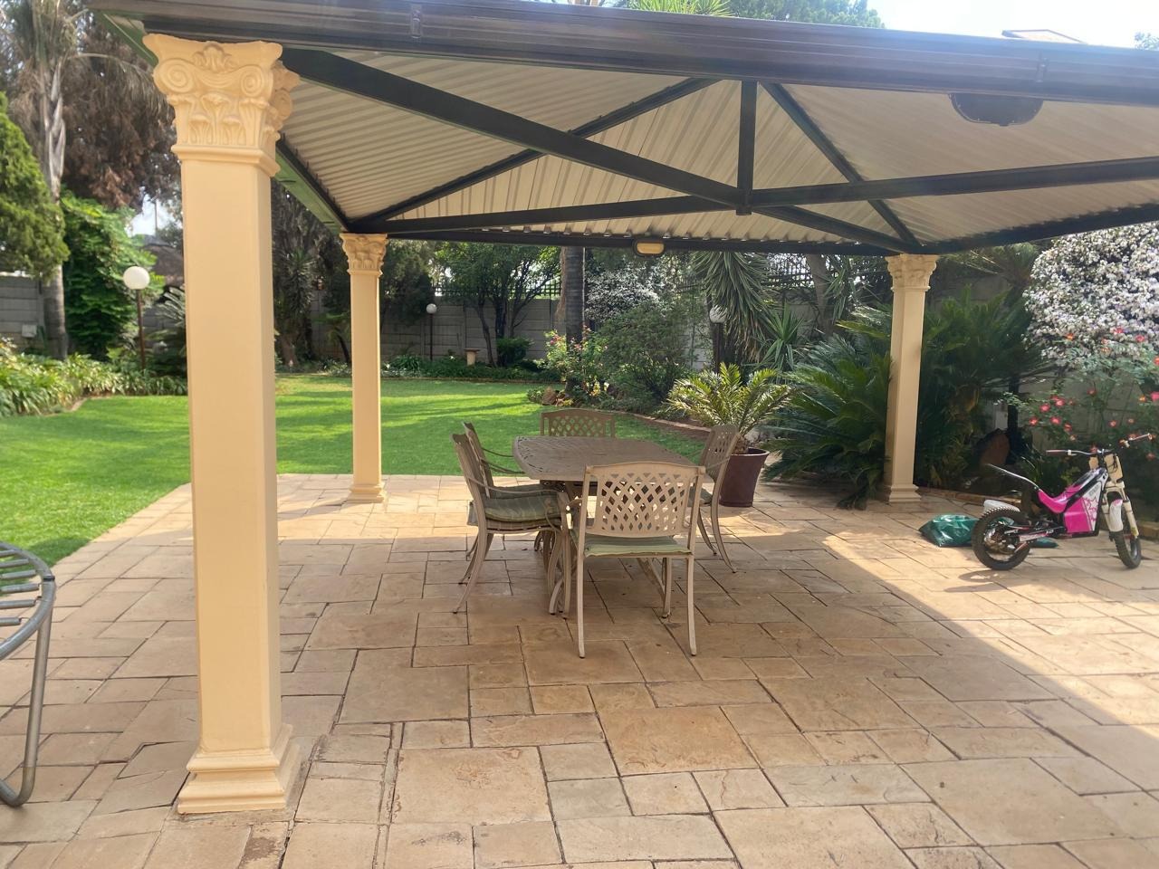 Outdoors, the property features an expansive garden and yard, ideal for children to play, pets to roam, or for creating your dream entertainment area with a pool. The home is further complemented by a double garage and secure parking, with a gated entrance providing peace of mind.