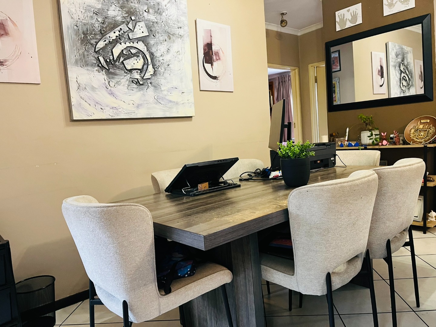 Flowing outdoors, the covered entertainment patio is perfectly suited for hosting family and friends. Complete with a built-in braai and generous seating space, it creates an inviting setting for weekend gatherings or tranquil alfresco dining overlooking the small garden providing the perfect backdrop for kids to enjoy. Additional features include the convenience of two carports and visitors' parking is an extra bonus for peace of mind.