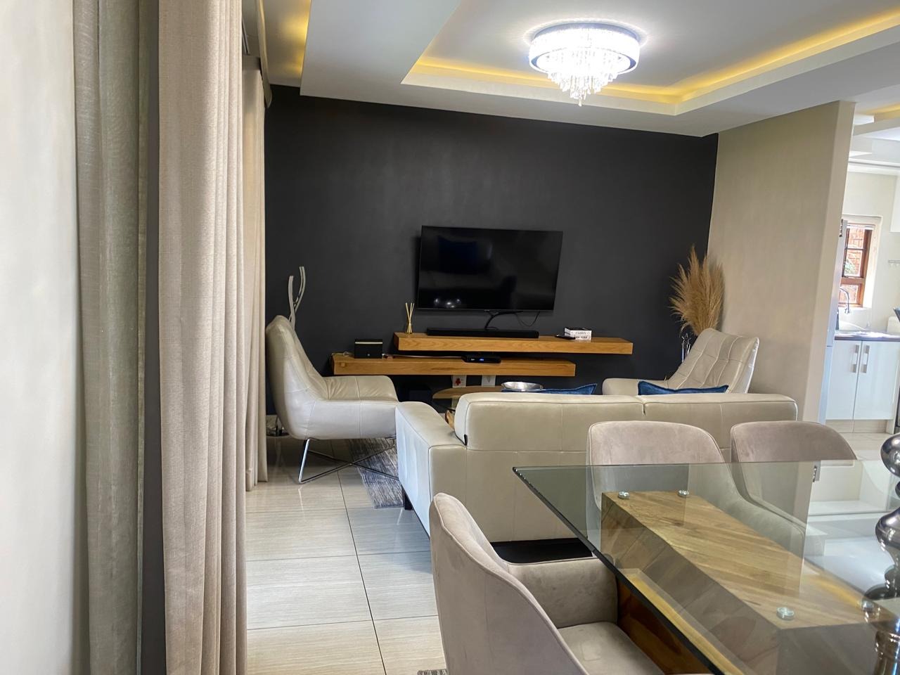 The bedrooms are well-sized with built-in cupboards, while the bathrooms are stylishly finished to reflect a modern aesthetic. Step outside to a private garden area — perfect for relaxing, braais, or family gatherings — offering that ideal balance between low-maintenance living and outdoor enjoyment.