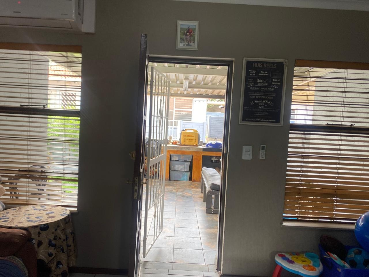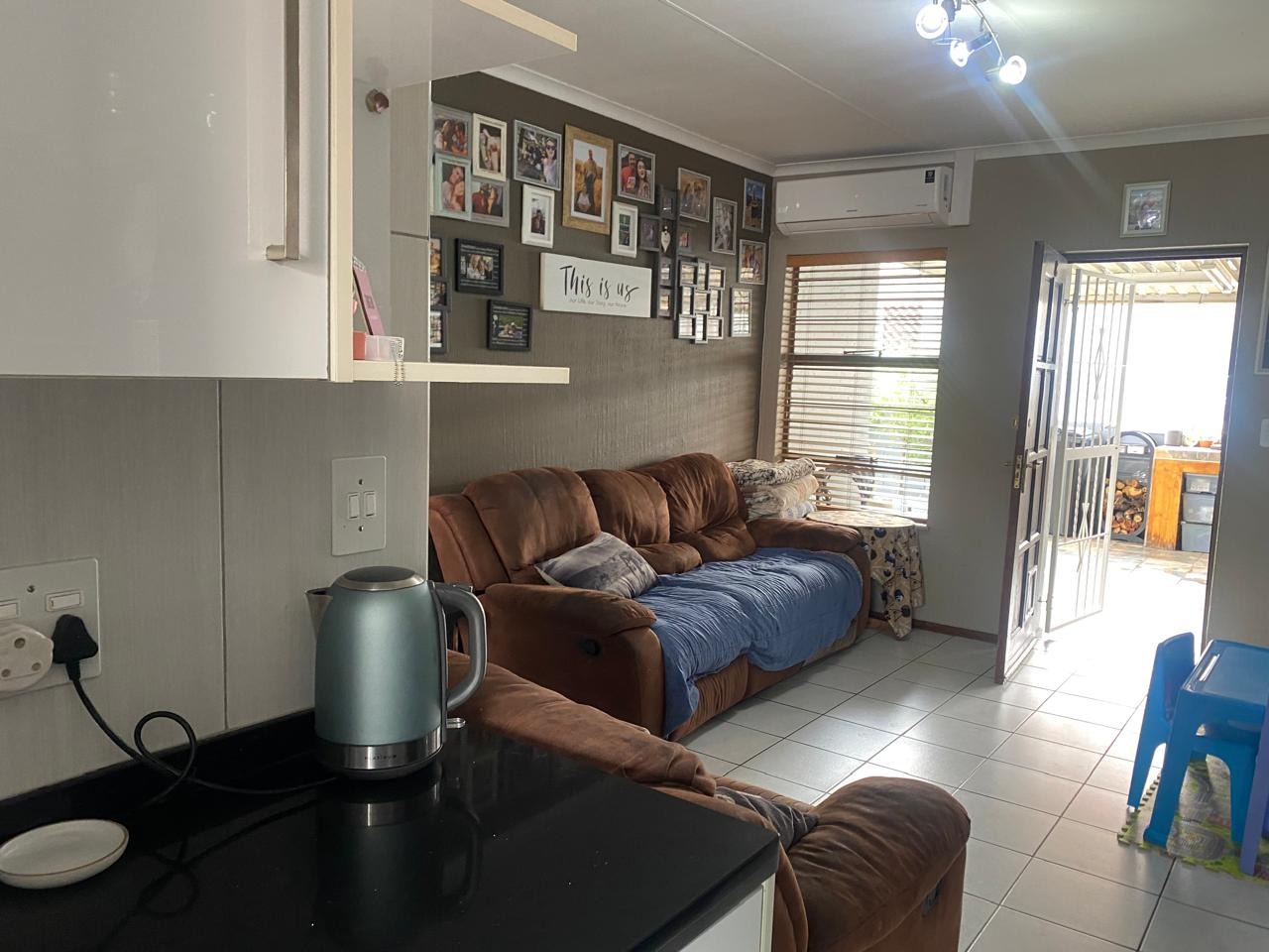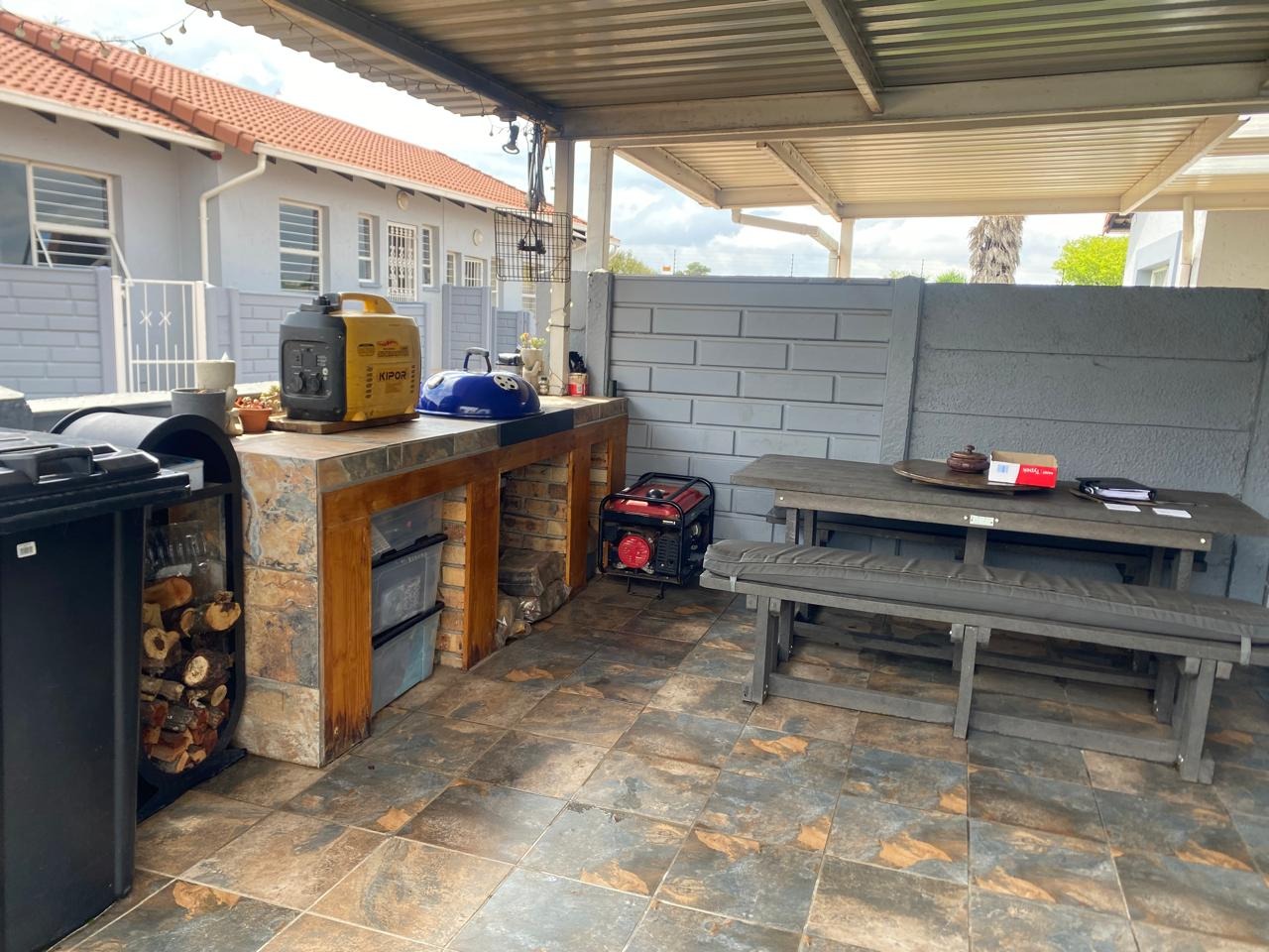 Discover this charming 3-bedroom, 1-bathroom residence located in the desirable suburban area of Meyersdal, Alberton. The property presents a welcoming kerb appeal with a light blue exterior, a tiled roof, and a gated pedestrian entrance leading to a covered porch. A small, well-maintained front garden with a stone pathway enhances the entrance, while practical covered parking for multiple vehicles is provided by a brick-paved carport, ensuring convenience and shelter. Step inside to an open-concept living area that seamlessly connects to a modern kitchen, creating an inviting and functional space for daily living and entertaining. The kitchen is equipped with contemporary white cabinets and benefits from natural light. Tiled flooring extends throughout the main living spaces, offering durability and ease of maintenance. The layout is designed for comfortable family life, featuring one lounge area. The home offers three comfortable bedrooms and a well-appointed bathroom. Complementing the interior, the property boasts a spacious covered outdoor patio, ideal for entertainment. This area features a built-in braai with a tiled countertop and integrated storage, alongside a dedicated outdoor dining space with a large table and benches. The durable tiled flooring and high boundary walls ensure privacy, while the presence of generators suggests provision for backup power solutions. Meyersdal, a sought-after suburb in Alberton, offers a tranquil suburban lifestyle within Gauteng, South Africa. Residents benefit from convenient access to local amenities, schools, and major transport routes, making it an ideal location for families and professionals alike. The property includes a security gate for enhanced peace of mind and a garden for outdoor enjoyment. Key Features: * 3 Bedrooms, 1 Bathroom * Open-plan Living and Modern Kitchen * Covered Carport for Multiple Vehicles * Spacious Covered Outdoor Patio * Built-in Braai Entertainment Area * Tiled Flooring Throughout * Gated Pedestrian Entry * Small Front Garden * Suburban Meyersdal Location