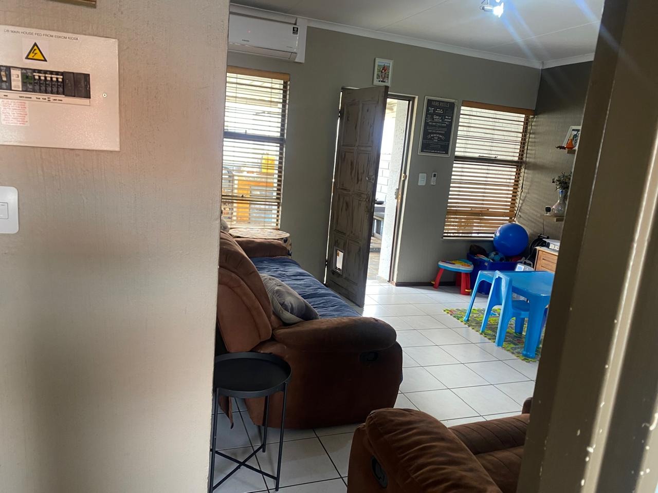 Discover this charming 3-bedroom, 1-bathroom residence located in the desirable suburban area of Meyersdal, Alberton. The property presents a welcoming kerb appeal with a light blue exterior, a tiled roof, and a gated pedestrian entrance leading to a covered porch. A small, well-maintained front garden with a stone pathway enhances the entrance, while practical covered parking for multiple vehicles is provided by a brick-paved carport, ensuring convenience and shelter. Step inside to an open-concept living area that seamlessly connects to a modern kitchen, creating an inviting and functional space for daily living and entertaining. The kitchen is equipped with contemporary white cabinets and benefits from natural light. Tiled flooring extends throughout the main living spaces, offering durability and ease of maintenance. The layout is designed for comfortable family life, featuring one lounge area. The home offers three comfortable bedrooms and a well-appointed bathroom. Complementing the interior, the property boasts a spacious covered outdoor patio, ideal for entertainment. This area features a built-in braai with a tiled countertop and integrated storage, alongside a dedicated outdoor dining space with a large table and benches. The durable tiled flooring and high boundary walls ensure privacy, while the presence of generators suggests provision for backup power solutions. Meyersdal, a sought-after suburb in Alberton, offers a tranquil suburban lifestyle within Gauteng, South Africa. Residents benefit from convenient access to local amenities, schools, and major transport routes, making it an ideal location for families and professionals alike. The property includes a security gate for enhanced peace of mind and a garden for outdoor enjoyment. Key Features: * 3 Bedrooms, 1 Bathroom * Open-plan Living and Modern Kitchen * Covered Carport for Multiple Vehicles * Spacious Covered Outdoor Patio * Built-in Braai Entertainment Area * Tiled Flooring Throughout * Gated Pedestrian Entry * Small Front Garden * Suburban Meyersdal Location