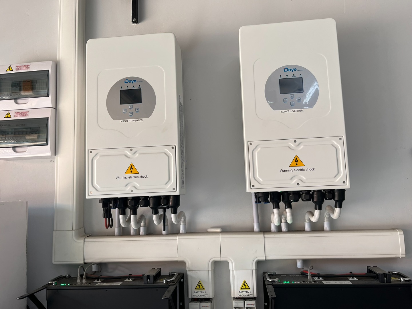 - 2x 5KVA inverters, 2x lithium batteries, 10 solar panels
