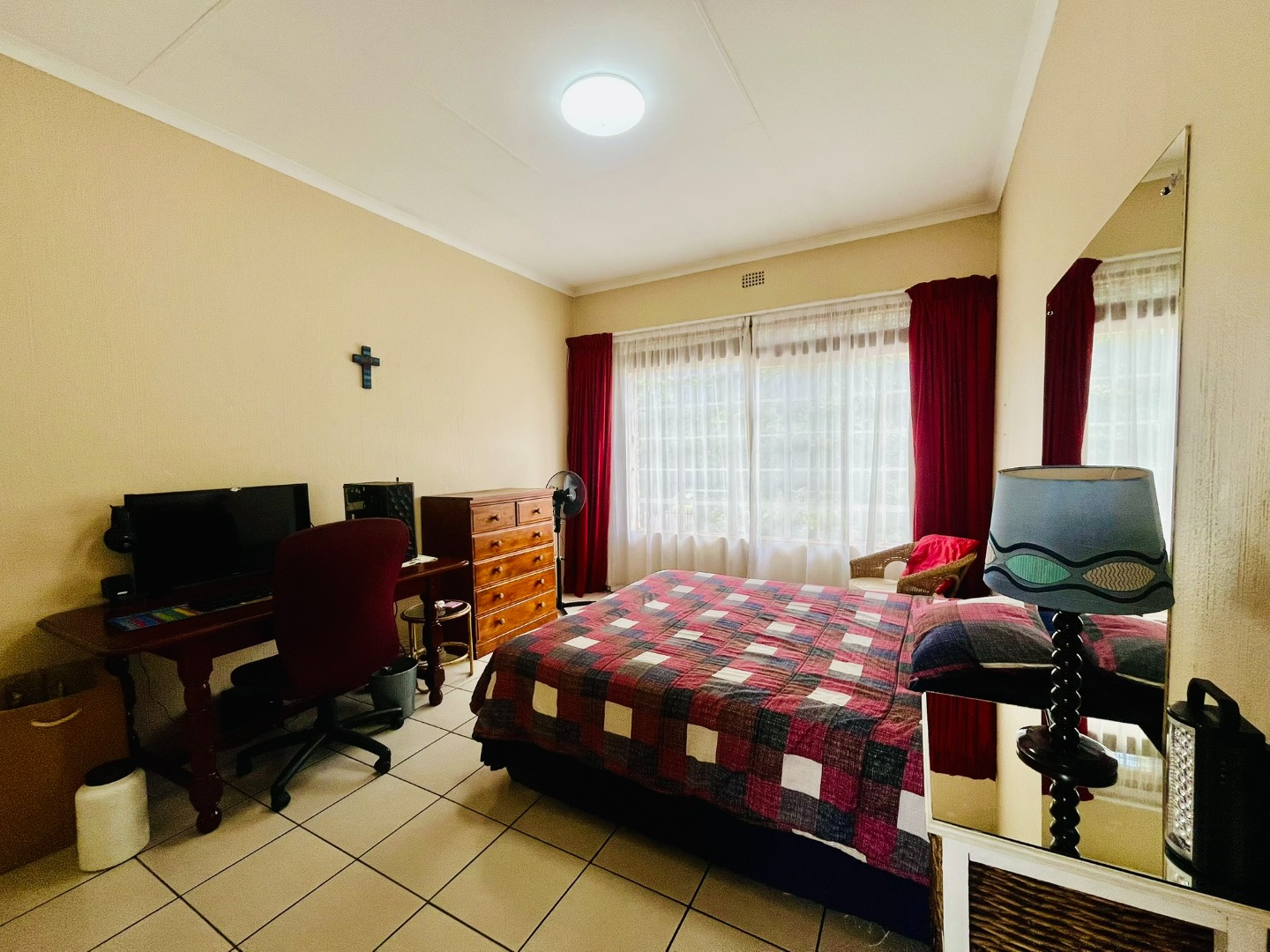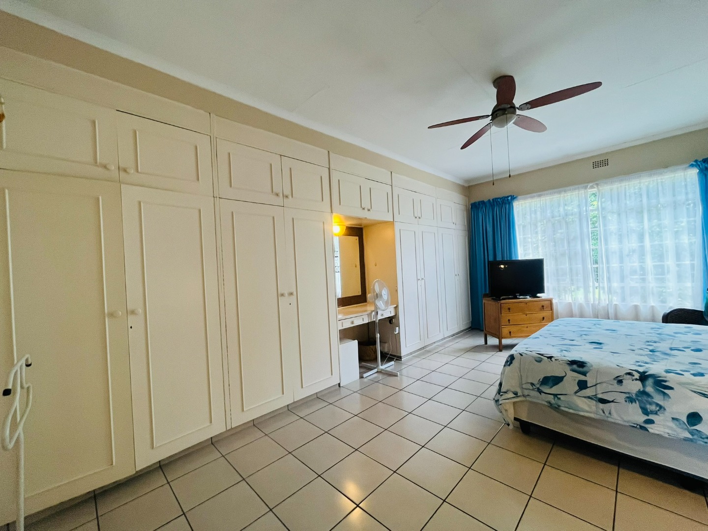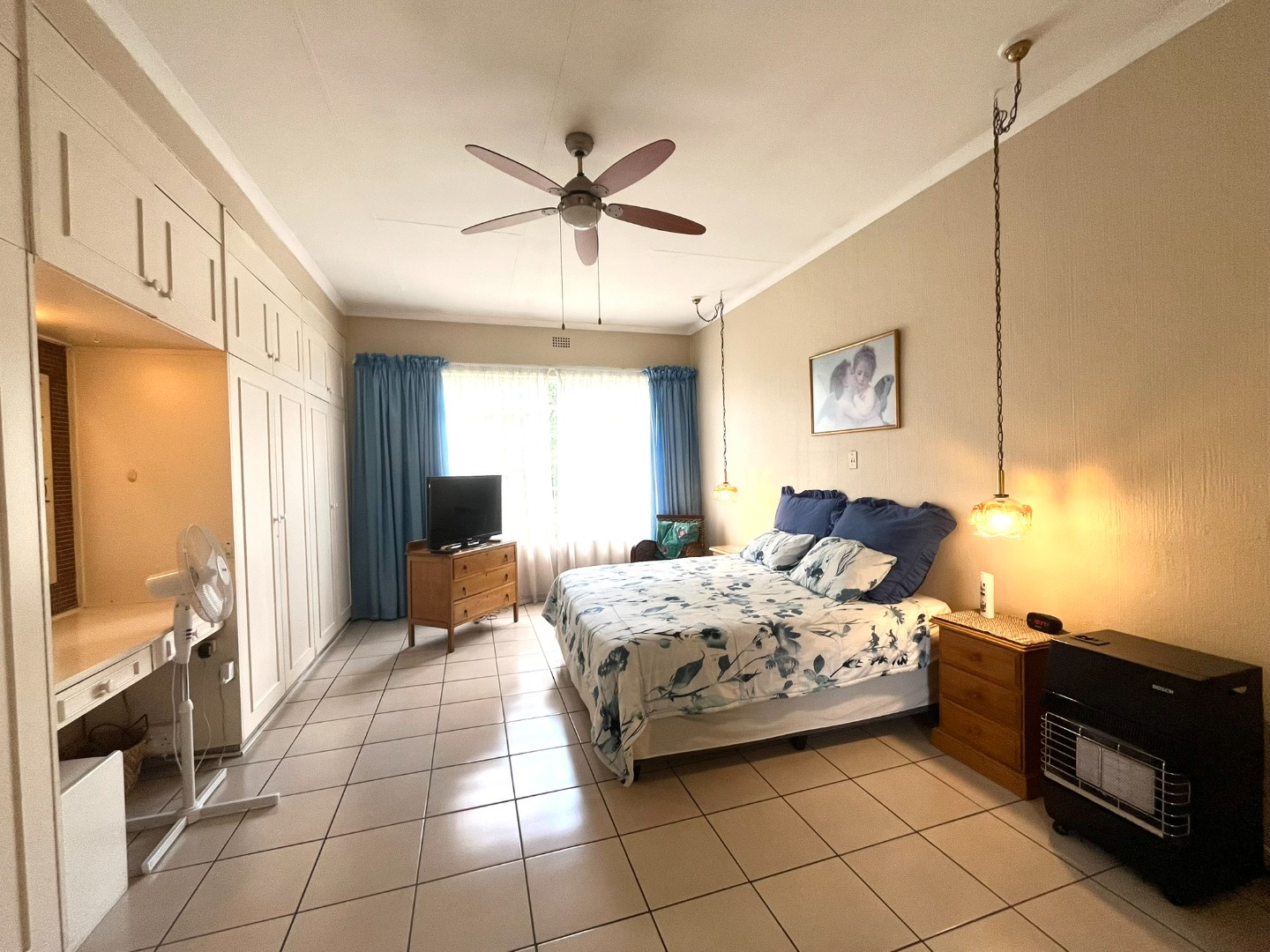 Main bedroom: Tiled, with built-in cupboards, ceiling fan, blinds, and a full en-suite bathroom