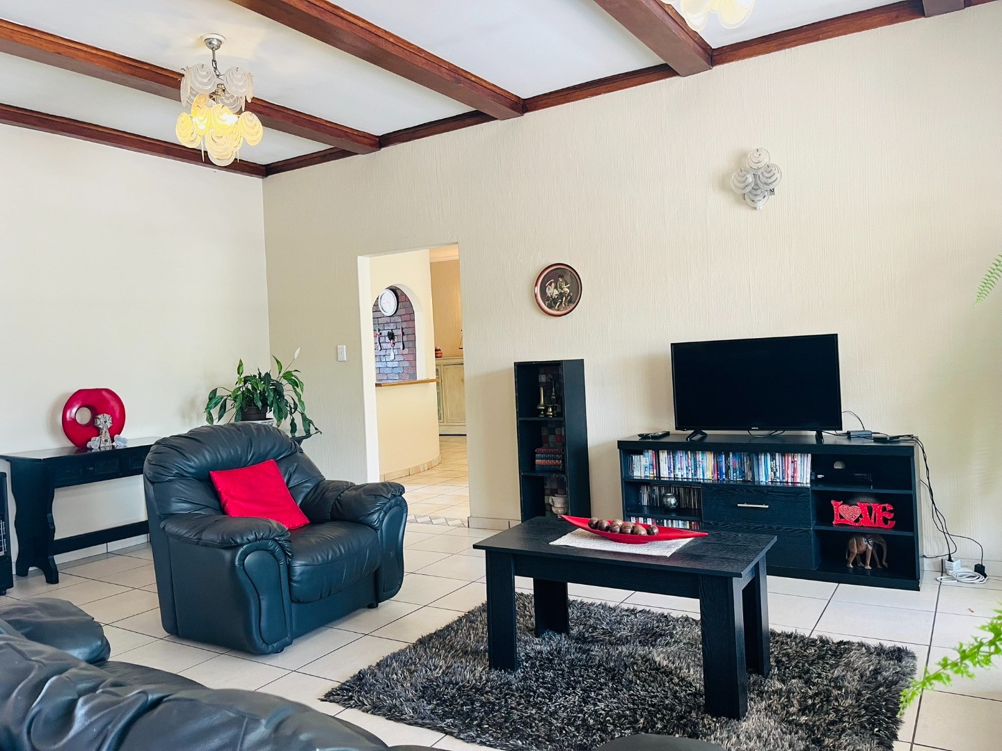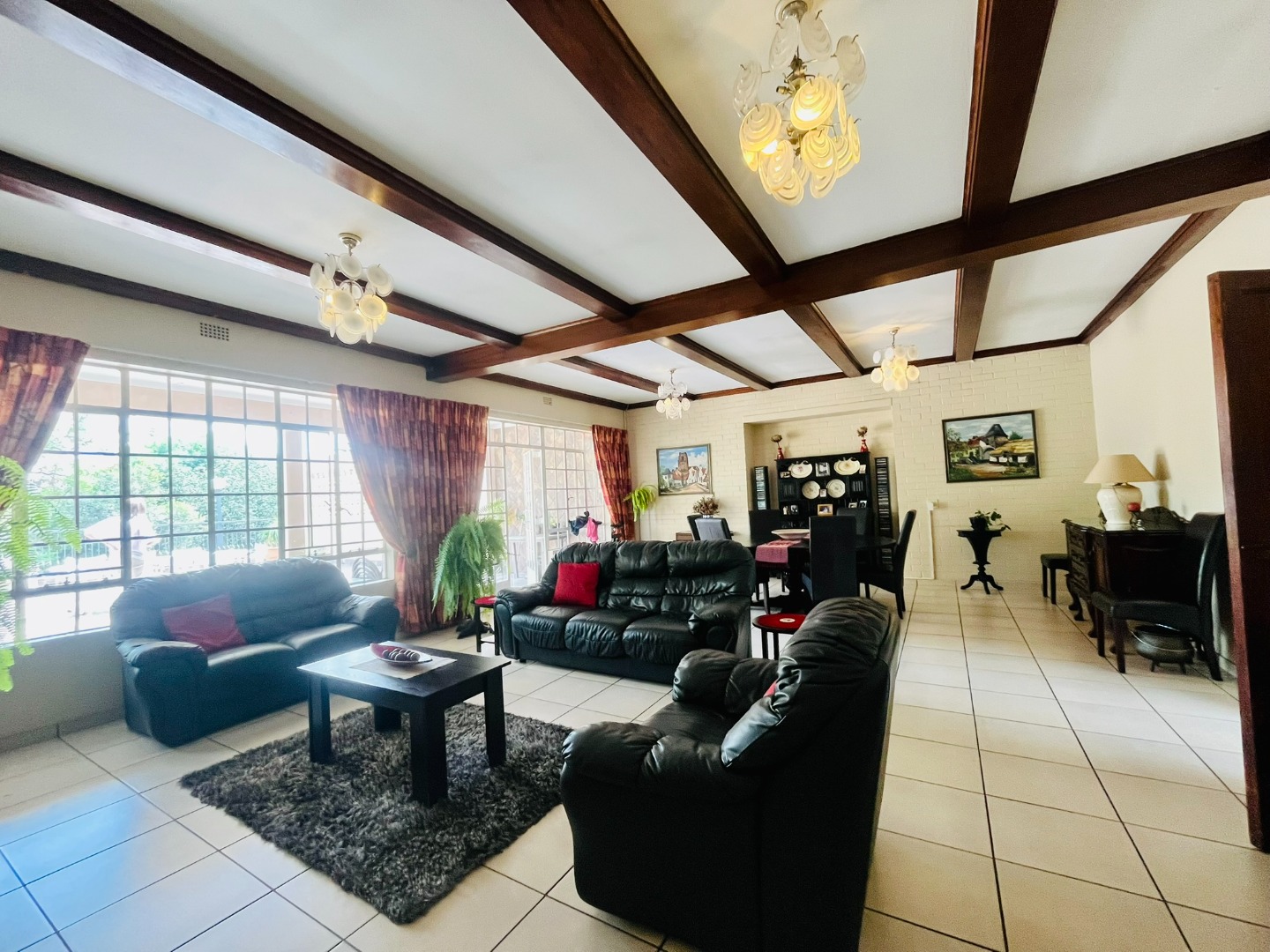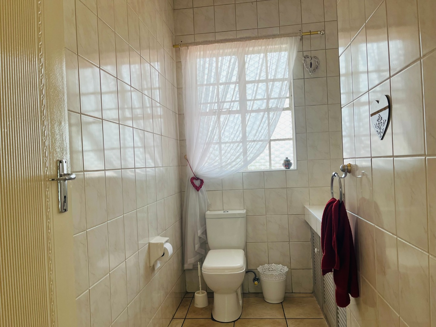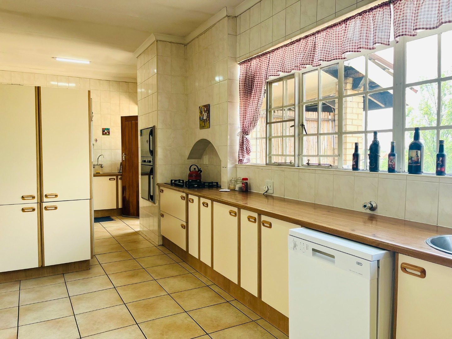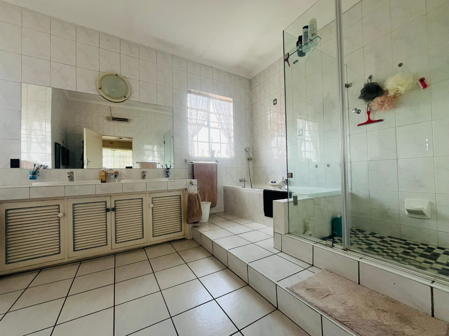 Step through grand double doors into an inviting foyer that sets the tone for the spacious interiors that follow. The main lounge opens through French doors onto a huge patio—perfect for hosting guests or enjoying relaxed alfresco evenings. A second lounge flows seamlessly into the open-plan dining area, also fitted with French doors and blinds, creating a bright and cohesive living space. A cosy pajama lounge offers the ideal spot for quiet family time. A conveniently located guest toilet with a basin completes the ground-floor living amenities.