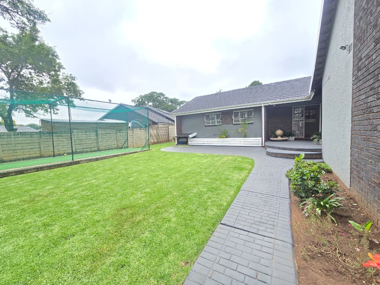 Welcome to a beautifully presented family home that combines space, modern comfort and exceptional outdoor living. Set on a generous, manicured stand, this home immediately impresses with its neat paving, fresh exterior finishes and inviting garden areas. Families will love the expansive lawn, where children have ample room to play freely, while the added bonus of a professional-style cricket net makes this property truly unique for active households.