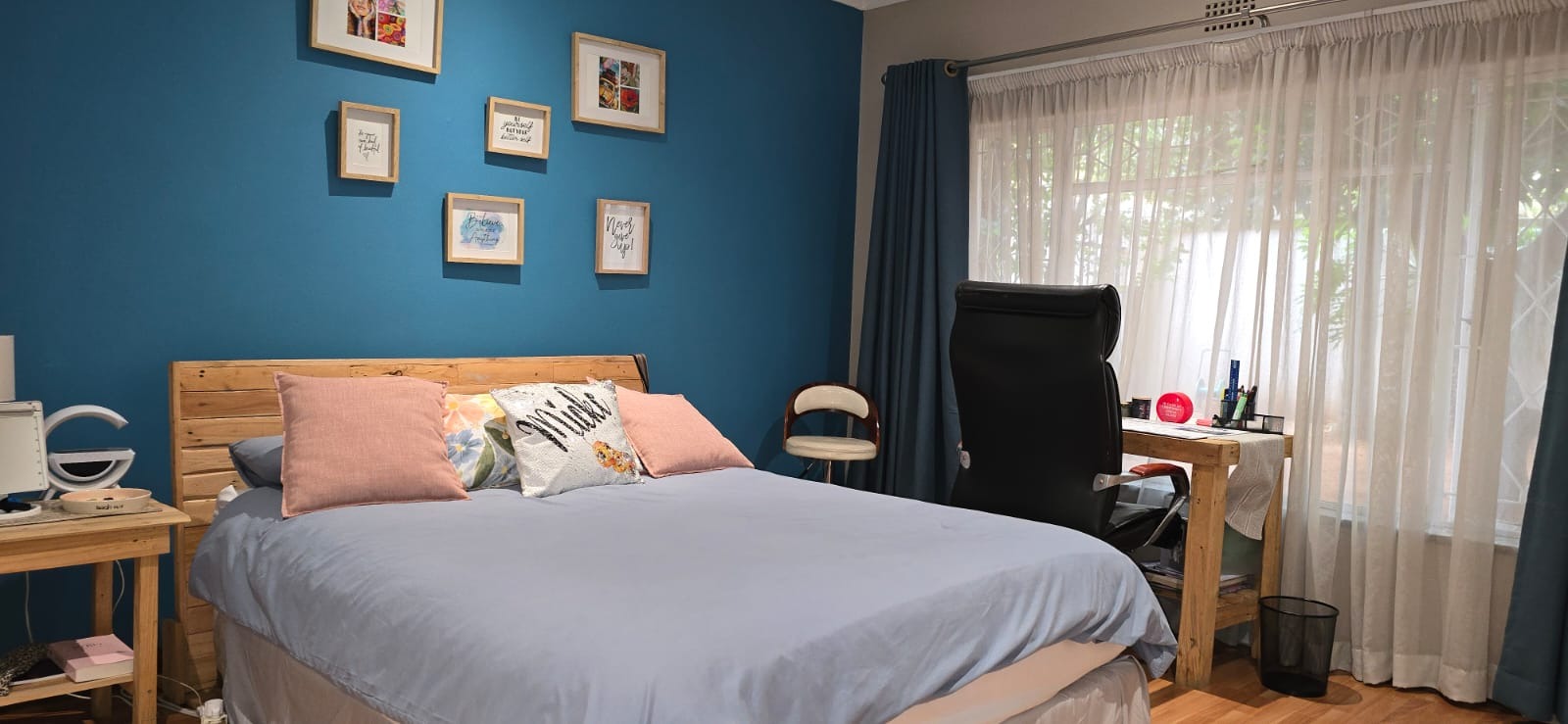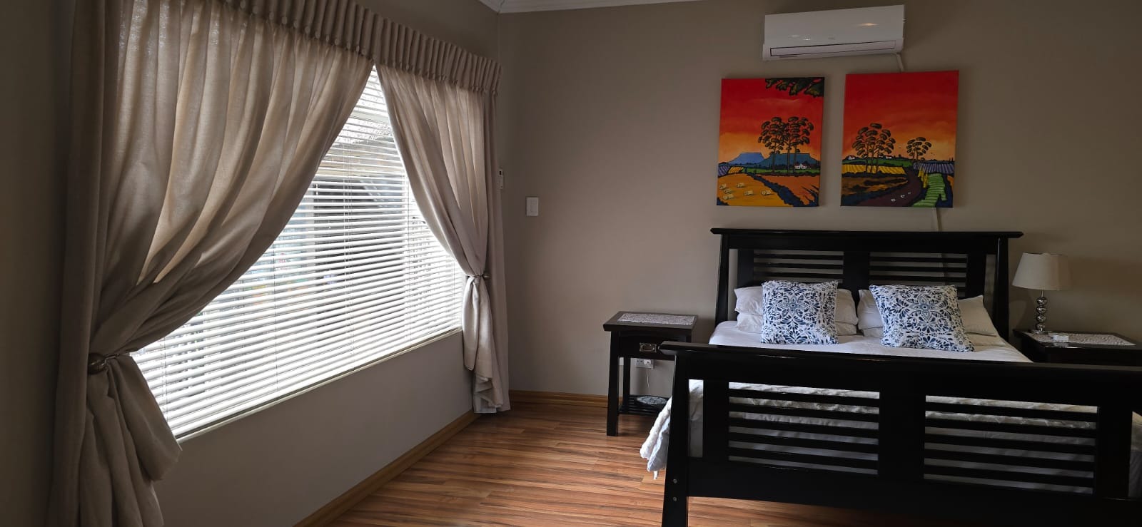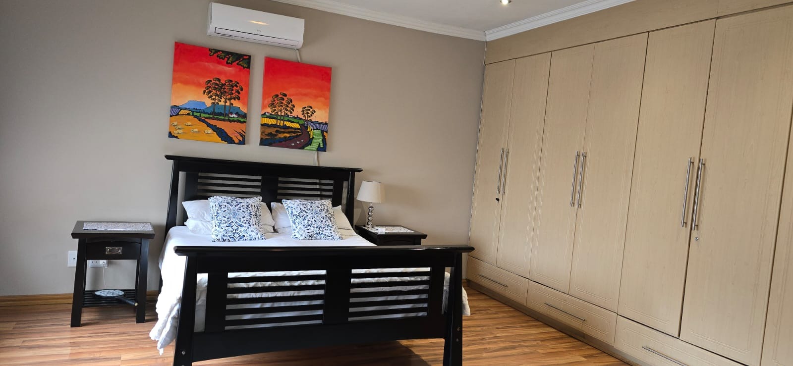 The property features three well sized bedrooms with built in cupboards and laminate floors, with the main bedroom boasting air conditioning and a modern ensuite.