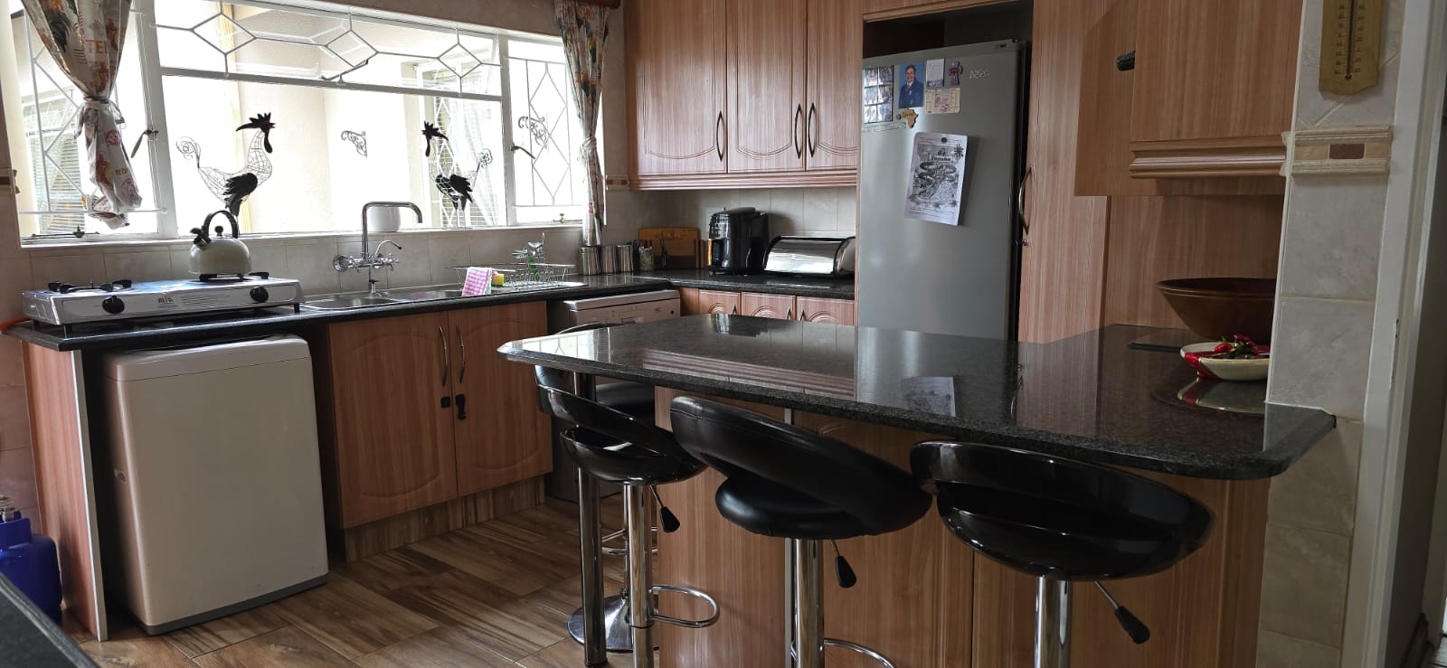 For entertaining, the home offers a spacious enclosed Lapa with a built-in bar, braai, and guest toilet.