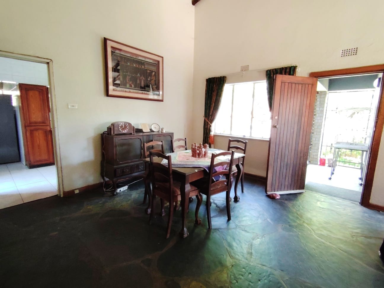 The open-plan lounge and dining area create a warm and welcoming atmosphere, ideal for both everyday living and entertaining guests. The kitchen is well laid out with plenty of cupboard and counter space, making meal preparation a pleasure.