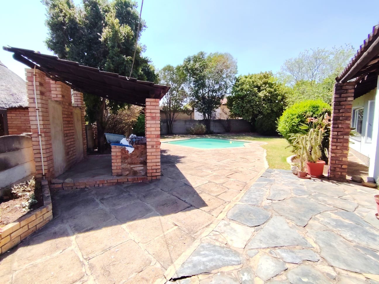 Large, pet-friendly garden with outdoor entertainment potential