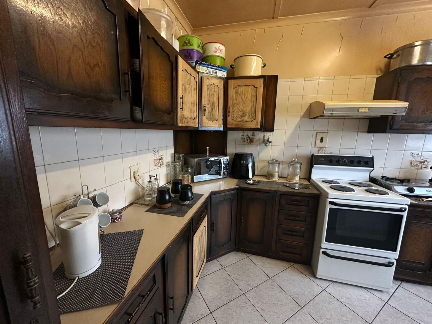 The second lounge, with its warm natural lighting, is perfect as an additional TV room, sunroom, or even a home office. The kitchen, though older in style, is generously sized and ready for personal modernization to suit your lifestyle.