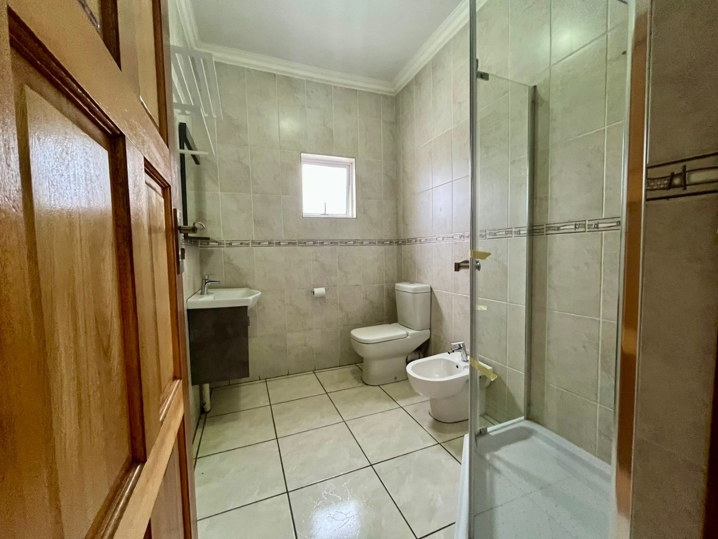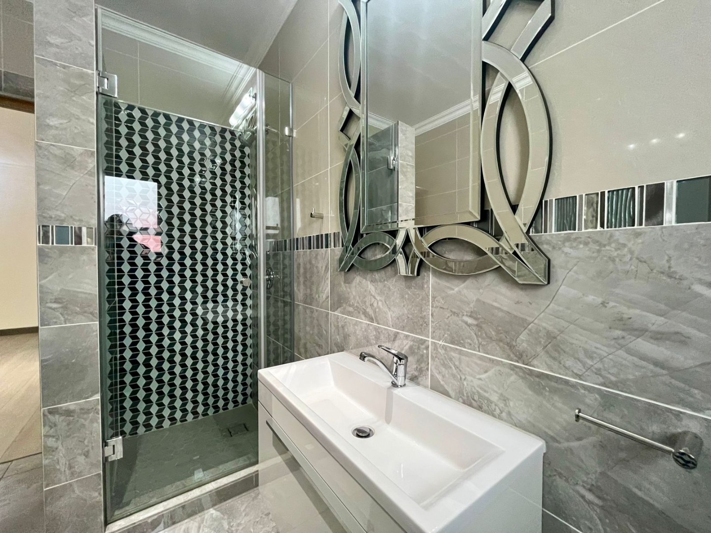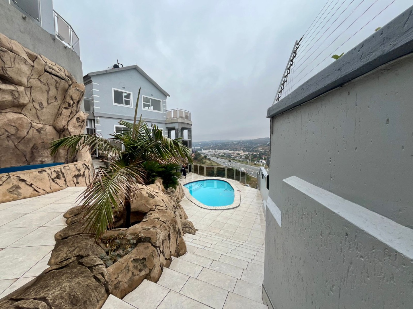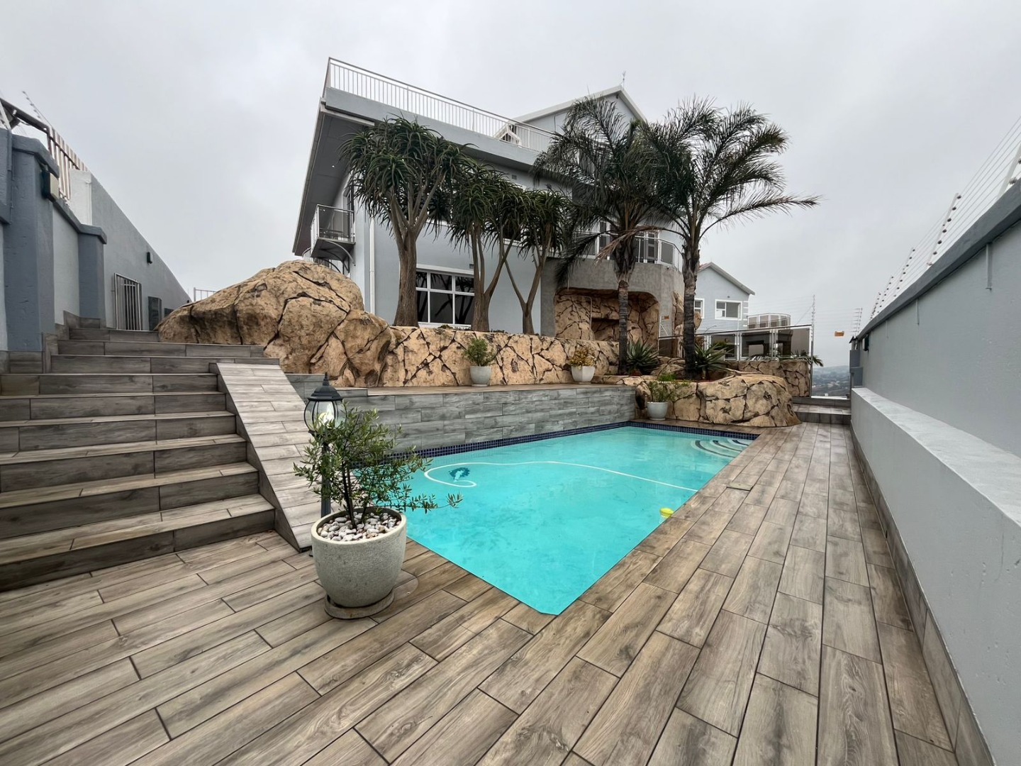 The main house welcomes you with elegance and warmth. It features eight spacious bedrooms, each with its own ensuite bathroom, offering absolute privacy and comfort. The home flows beautifully from the double lounge and dining area into a well-designed kitchen, ideal for both family living and entertaining. Every detail has been thoughtfully considered — from the gamazine-finished walls and the two 300-liter solar geysers to the double automated garage with extra parking for up to ten vehicles. Step outside and take in the magnificent wrap-around balcony that captures sweeping views of the city, while a sparkling swimming pool completes the picture of refined outdoor living.