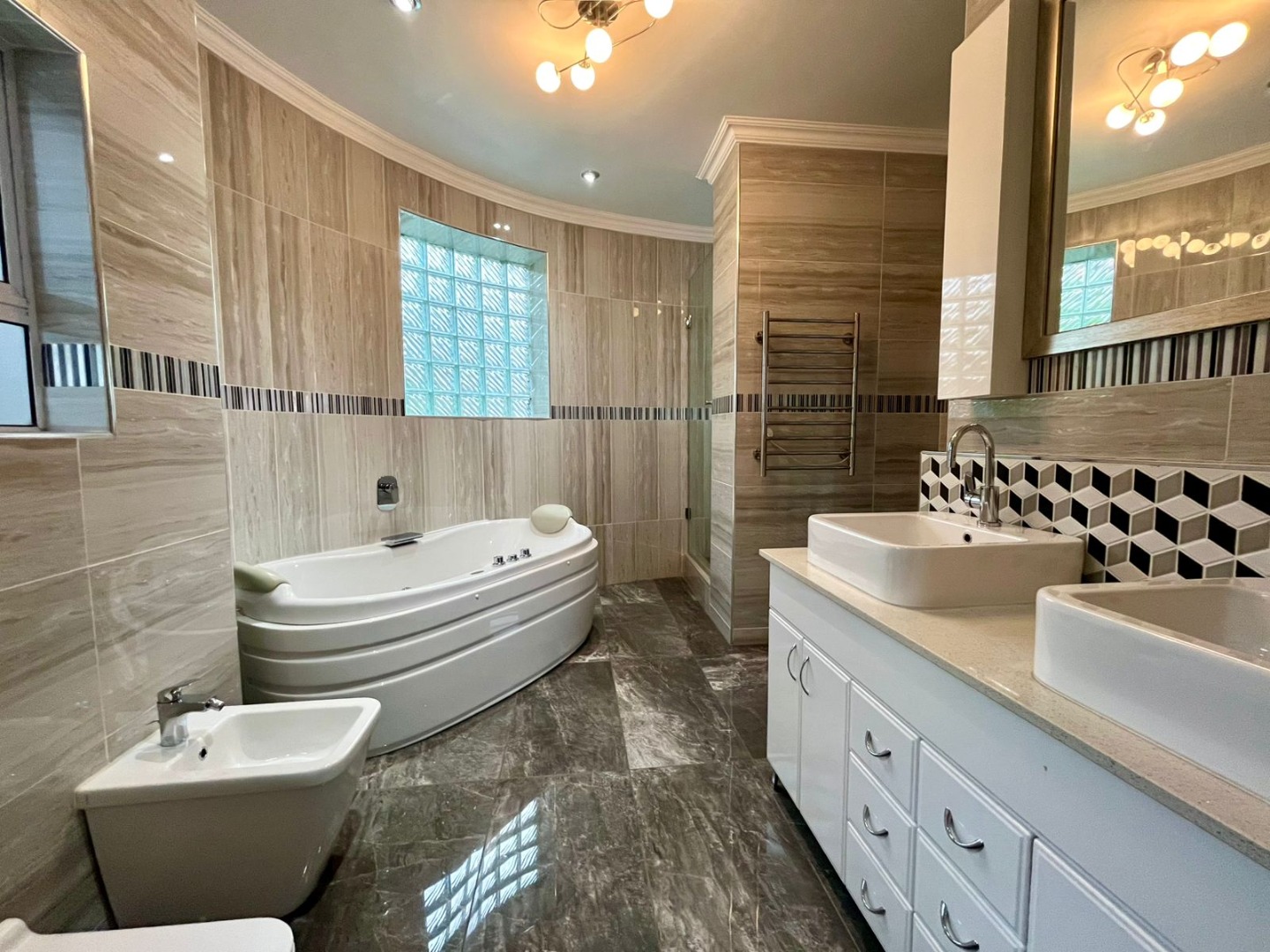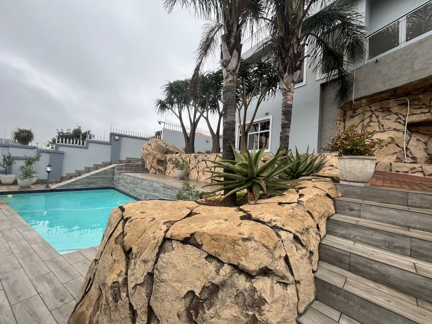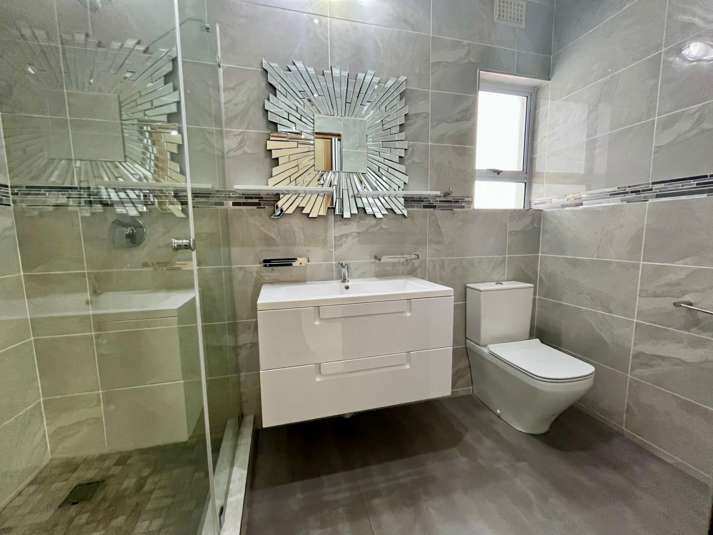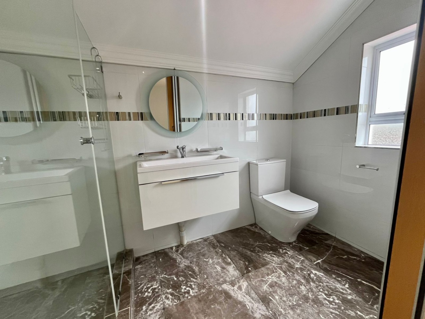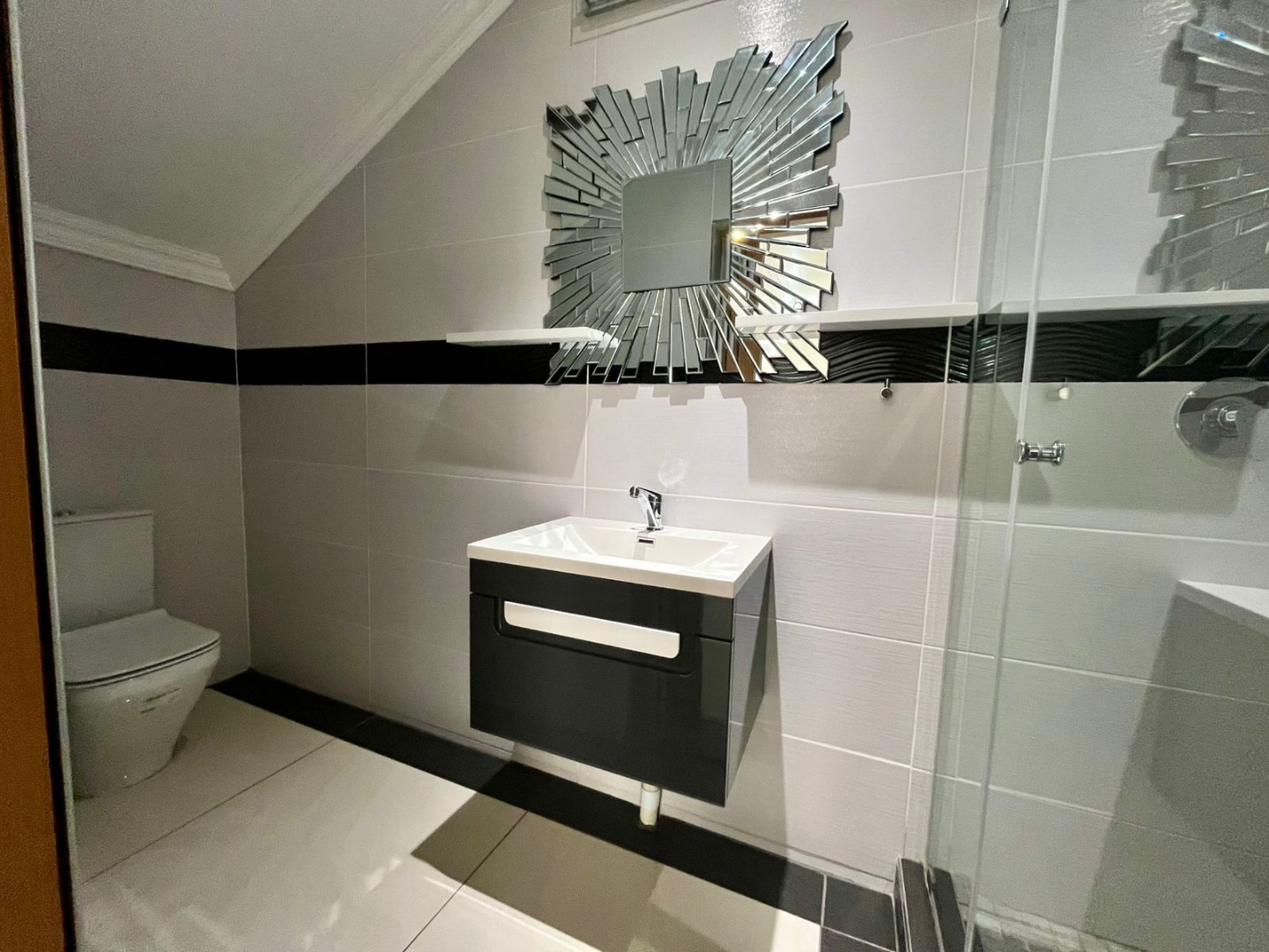 The main house welcomes you with elegance and warmth. It features eight spacious bedrooms, each with its own ensuite bathroom, offering absolute privacy and comfort. The home flows beautifully from the double lounge and dining area into a well-designed kitchen, ideal for both family living and entertaining. Every detail has been thoughtfully considered — from the gamazine-finished walls and the two 300-liter solar geysers to the double automated garage with extra parking for up to ten vehicles. Step outside and take in the magnificent wrap-around balcony that captures sweeping views of the city, while a sparkling swimming pool completes the picture of refined outdoor living.