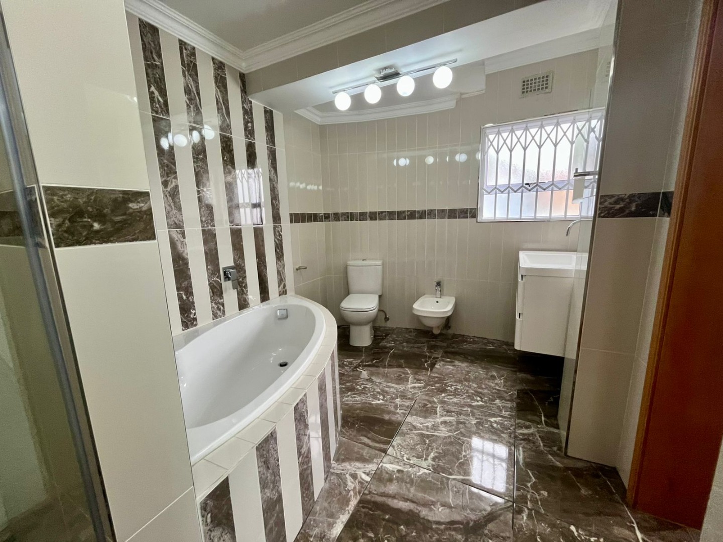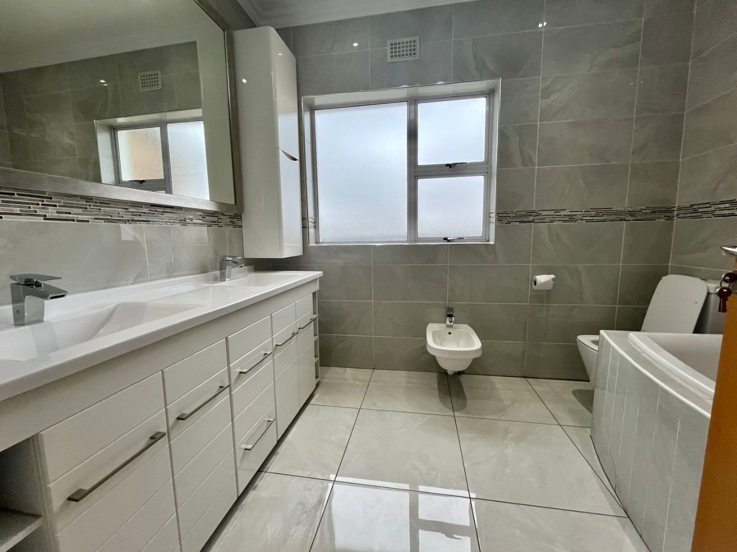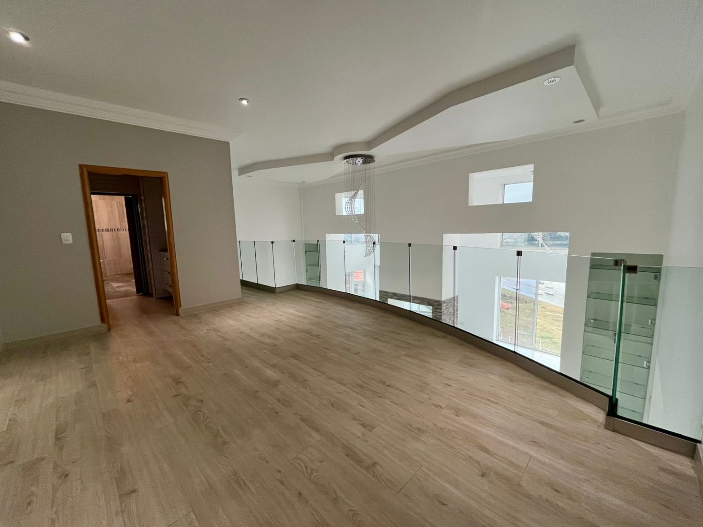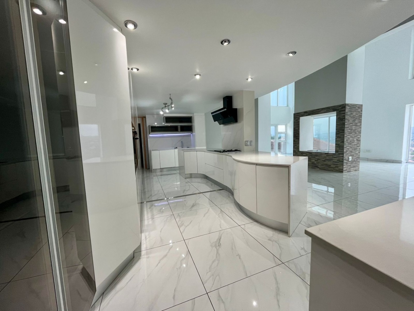 The main house welcomes you with elegance and warmth. It features eight spacious bedrooms, each with its own ensuite bathroom, offering absolute privacy and comfort. The home flows beautifully from the double lounge and dining area into a well-designed kitchen, ideal for both family living and entertaining. Every detail has been thoughtfully considered — from the gamazine-finished walls and the two 300-liter solar geysers to the double automated garage with extra parking for up to ten vehicles. Step outside and take in the magnificent wrap-around balcony that captures sweeping views of the city, while a sparkling swimming pool completes the picture of refined outdoor living.