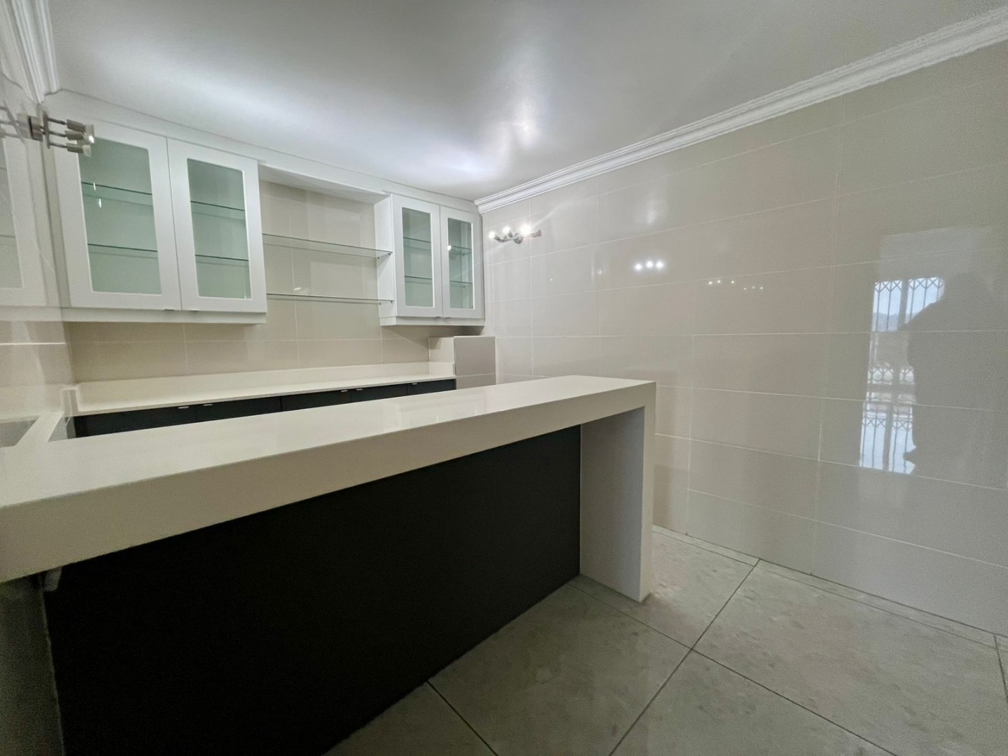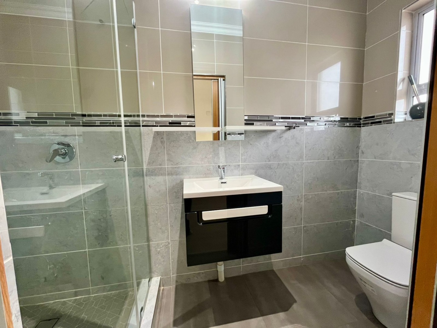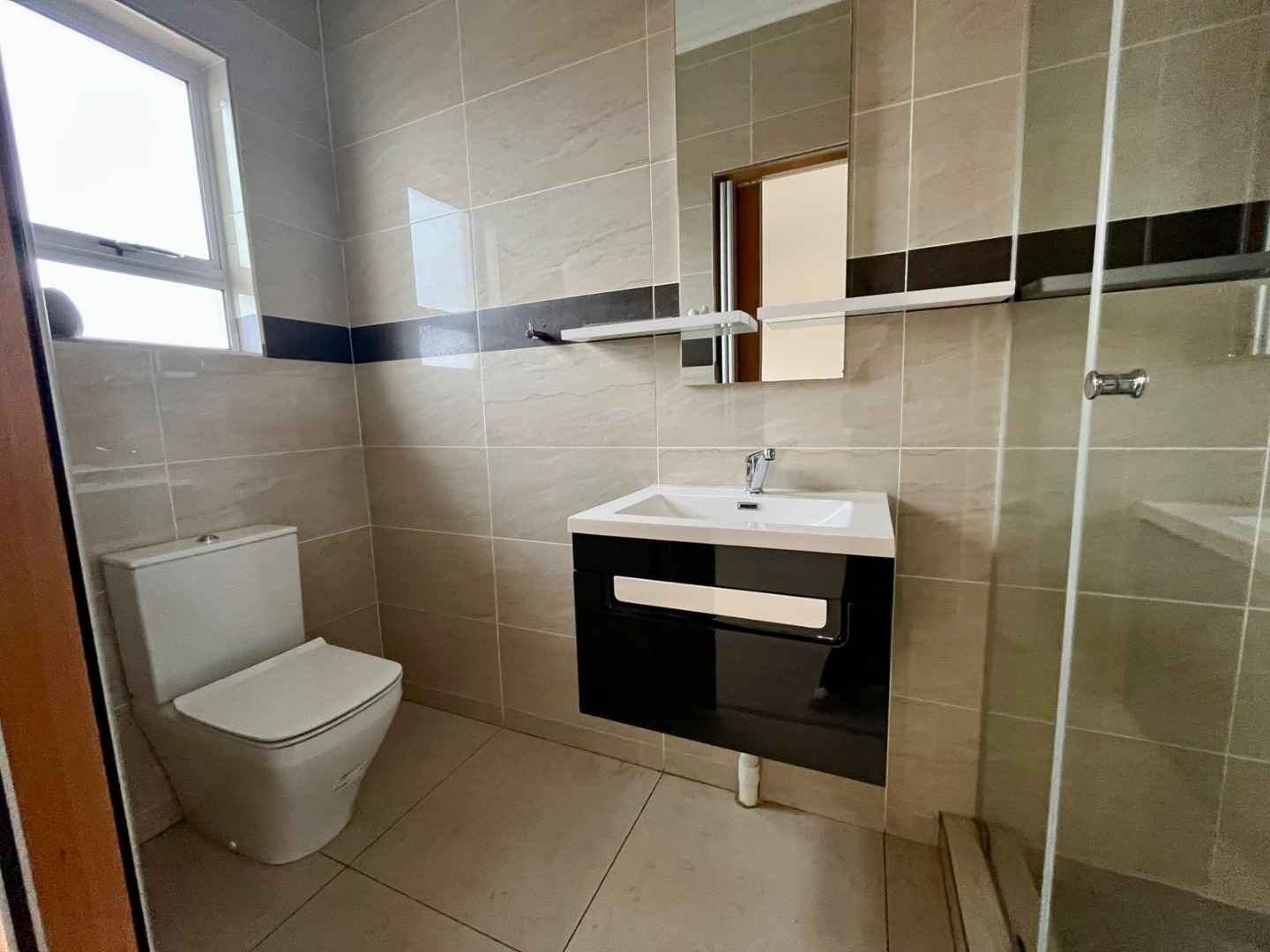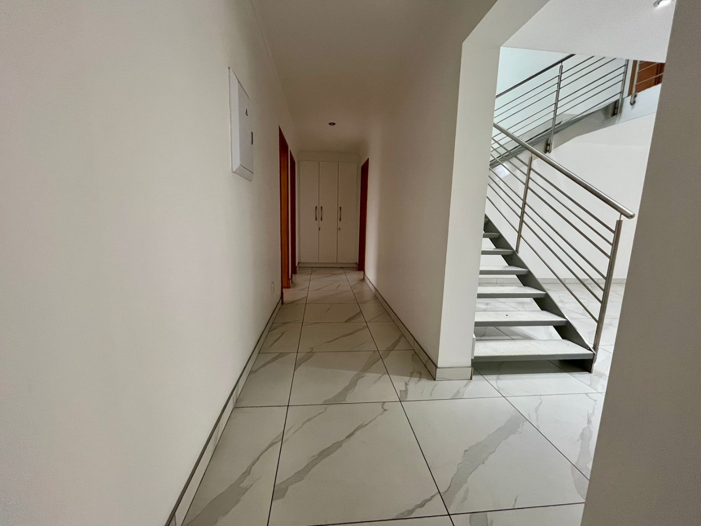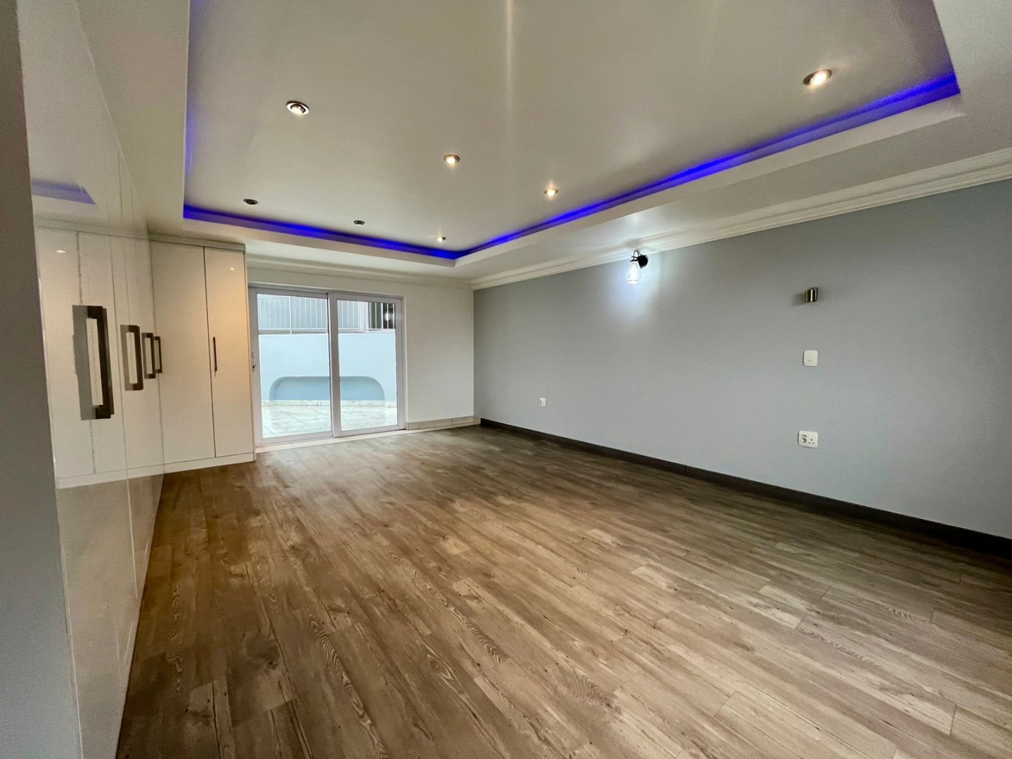 The main house welcomes you with elegance and warmth. It features eight spacious bedrooms, each with its own ensuite bathroom, offering absolute privacy and comfort. The home flows beautifully from the double lounge and dining area into a well-designed kitchen, ideal for both family living and entertaining. Every detail has been thoughtfully considered — from the gamazine-finished walls and the two 300-liter solar geysers to the double automated garage with extra parking for up to ten vehicles. Step outside and take in the magnificent wrap-around balcony that captures sweeping views of the city, while a sparkling swimming pool completes the picture of refined outdoor living.