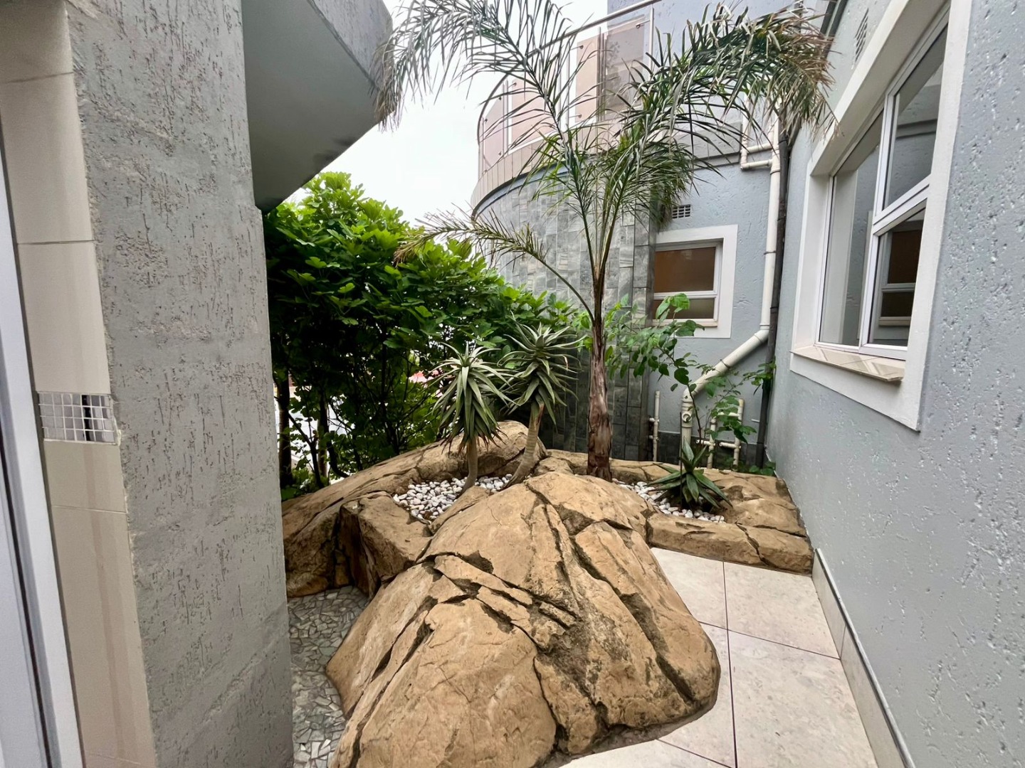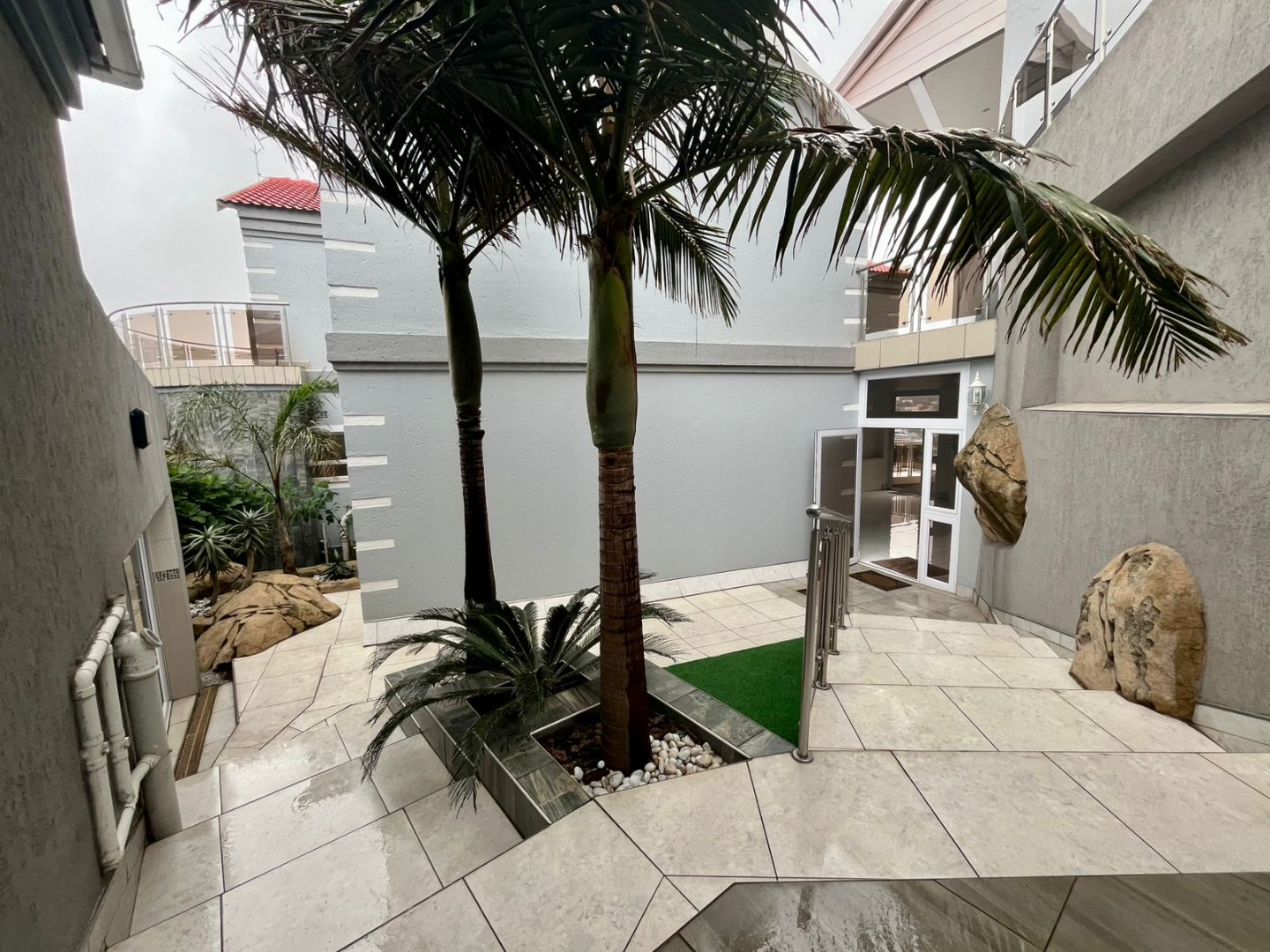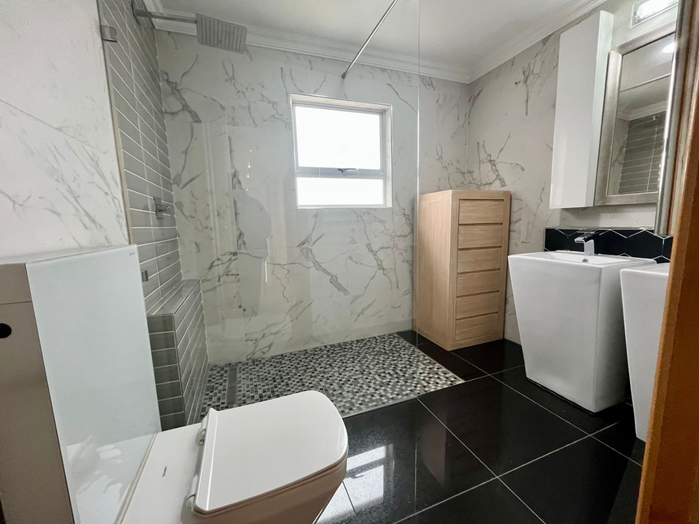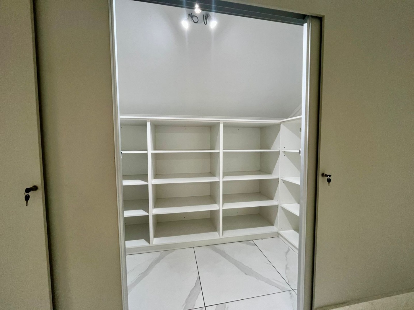The main house welcomes you with elegance and warmth. It features eight spacious bedrooms, each with its own ensuite bathroom, offering absolute privacy and comfort. The home flows beautifully from the double lounge and dining area into a well-designed kitchen, ideal for both family living and entertaining. Every detail has been thoughtfully considered — from the gamazine-finished walls and the two 300-liter solar geysers to the double automated garage with extra parking for up to ten vehicles. Step outside and take in the magnificent wrap-around balcony that captures sweeping views of the city, while a sparkling swimming pool completes the picture of refined outdoor living.