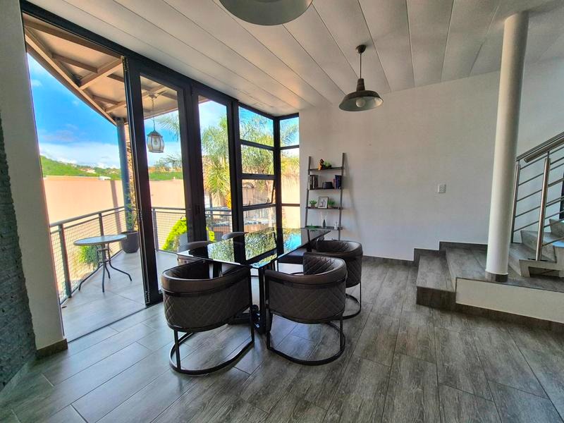 Multiple outdoor zones, including private view balconies and a paved entertainment terrace with built-in braai, make hosting easy.