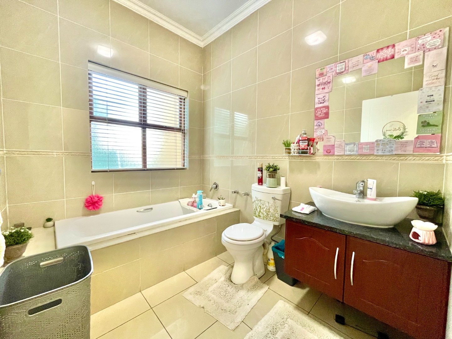 Check out this lovely home in a friendly complex in Bassonia, Johannesburg! It's got that charming Mediterranean vibe with its warm exterior and individual garages, giving you a nice sense of privacy. The paved driveway leads you right up to your door, making coming home super easy, and you'll even get to enjoy a scenic view from your new place. Step inside and you'll find a bright and open-plan living area, perfect for relaxing or having friends over. The tiled floors are practical and easy to keep clean, and there's plenty of natural light streaming in through the windows. You'll also find a dedicated desk or TV area, making it a versatile space for all your needs, flowing nicely into the dining area. The kitchen is functional with light wood cabinets, dark countertops, and integrated appliances like an oven and hob. It's got good storage and even space for your washing machine. Upstairs, you'll find two comfy bedrooms, both with tiled floors and plenty of natural light. With 2.5 bathrooms, including two ensuites, everyone gets their own space and convenience. Outside, you've got a lovely garden area, perfect for enjoying the South African sunshine. And guess what? Pets are allowed, so your furry friends are welcome too! Plus, with two garages and an additional parking spot, there's ample space for your vehicles. This home offers a comfortable 108 sqm of living space on a generous 1023 sqm erf. Bassonia is a well-established suburb in Johannesburg, offering a convenient lifestyle with easy access to amenities. It's a great spot for those looking for a comfortable home in a vibrant community. Key Features: * 2 Bedrooms * 2.5 Bathrooms (2 Ensuites) * 2 Garages & 1 Parking * Open-Plan Living & Dining * Pet-Friendly * Scenic View * Garden & Paved Driveway * Complex Living