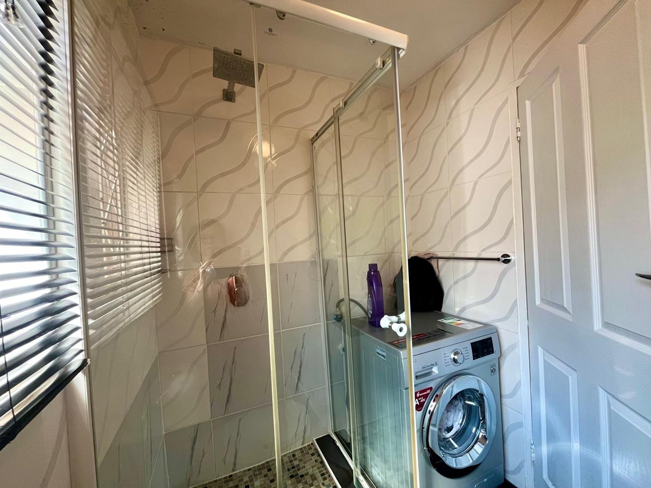 The home offers three well-proportioned bedrooms, all fitted with built-in cupboards. Two bedrooms are located downstairs, serviced by a stylish bathroom with modern finishes which features a basin, shower and toilet. Upstairs, the main bedroom provides a private retreat with laminate flooring, ample cupboard space and a modern en-suite bathroom with shower, basin and toilet. The upstairs loft adds valuable versatility, perfectly suited as a home office, study or pyjama lounge just off the main bedroom.