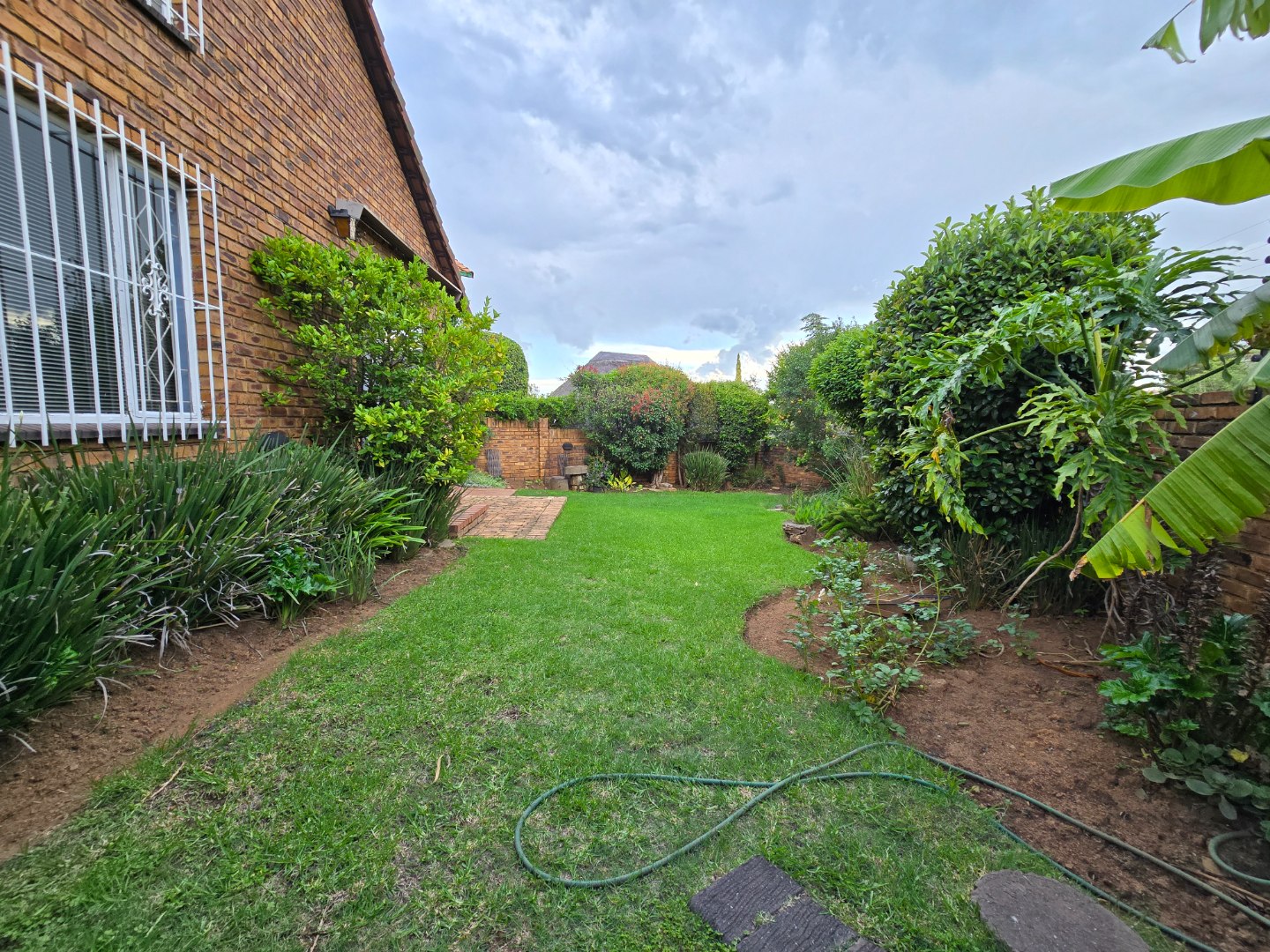 Step inside this inviting Bassonia residence, where an open-plan layout seamlessly connects the living, dining, and kitchen areas. High vaulted ceilings enhance the sense of space, complemented by clean white tiled flooring throughout. The functional kitchen boasts warm wood-look cabinetry, dark countertops, a built-in oven, gas hob, and a double sink, all illuminated by natural light from a window. An integrated wine rack adds a touch of convenience, making this space ideal for both everyday living and entertaining. The home features three comfortable bedrooms, providing ample accommodation for a family. Two well-appointed bathrooms include one ensuite, ensuring privacy and convenience for residents. Outside, discover a private oasis designed for relaxation and enjoyment. A lush, well-maintained garden with mature plantings and a spacious green lawn offers a serene escape. The expansive brick patio is perfect for outdoor entertaining, while the inviting pool provides a refreshing retreat on warm days. The property also includes a single garage and allows pets, catering to a comfortable lifestyle. This property is situated within a secure complex, offering peace of mind with an access gate and a totally walled perimeter. The traditional brick exterior presents a classic kerb appeal, while large sliding doors invite natural light indoors and provide easy access to the garden. Paved areas and a driveway complete the exterior, ensuring practicality and neatness. Located in the desirable suburban area of Bassonia, Johannesburg, this home offers convenient access to local amenities and a tranquil living environment. Key Features: * 3 Bedrooms, 2 Bathrooms (1 Ensuite) * Open-plan living with vaulted ceilings * Functional kitchen with built-in oven & gas hob * Lush, private garden and spacious brick patio * Inviting swimming pool * Single garage and driveway * Located in a secure complex with access gate * Pets allowed * Erf Size: 113 sqm