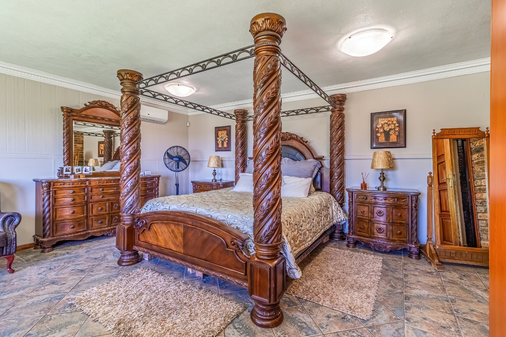 Accommodation comprises six generously proportioned bedrooms, ensuring privacy and comfort for all occupants. The property features three and a half meticulously maintained bathrooms, including a private en-suite facility, offering convenience and luxury. Practical considerations are addressed with the inclusion of dedicated staff quarters and additional outside toilets, enhancing the property's overall functionality.