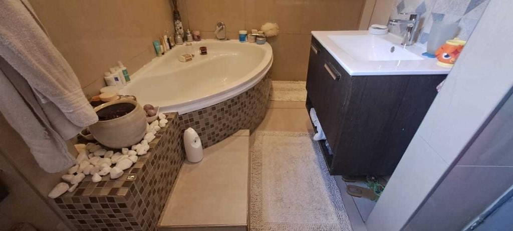 The kitchen is practical and functional, opening easily to the dining area, creating a flow that complements everyday living. Each of the three bedrooms offers comfort and space, with the main bedroom being especially bright and inviting. The bathroom is tastefully updated, featuring a modern basin, elegant tiling, and a feature corner bathtub that adds a touch of luxury.