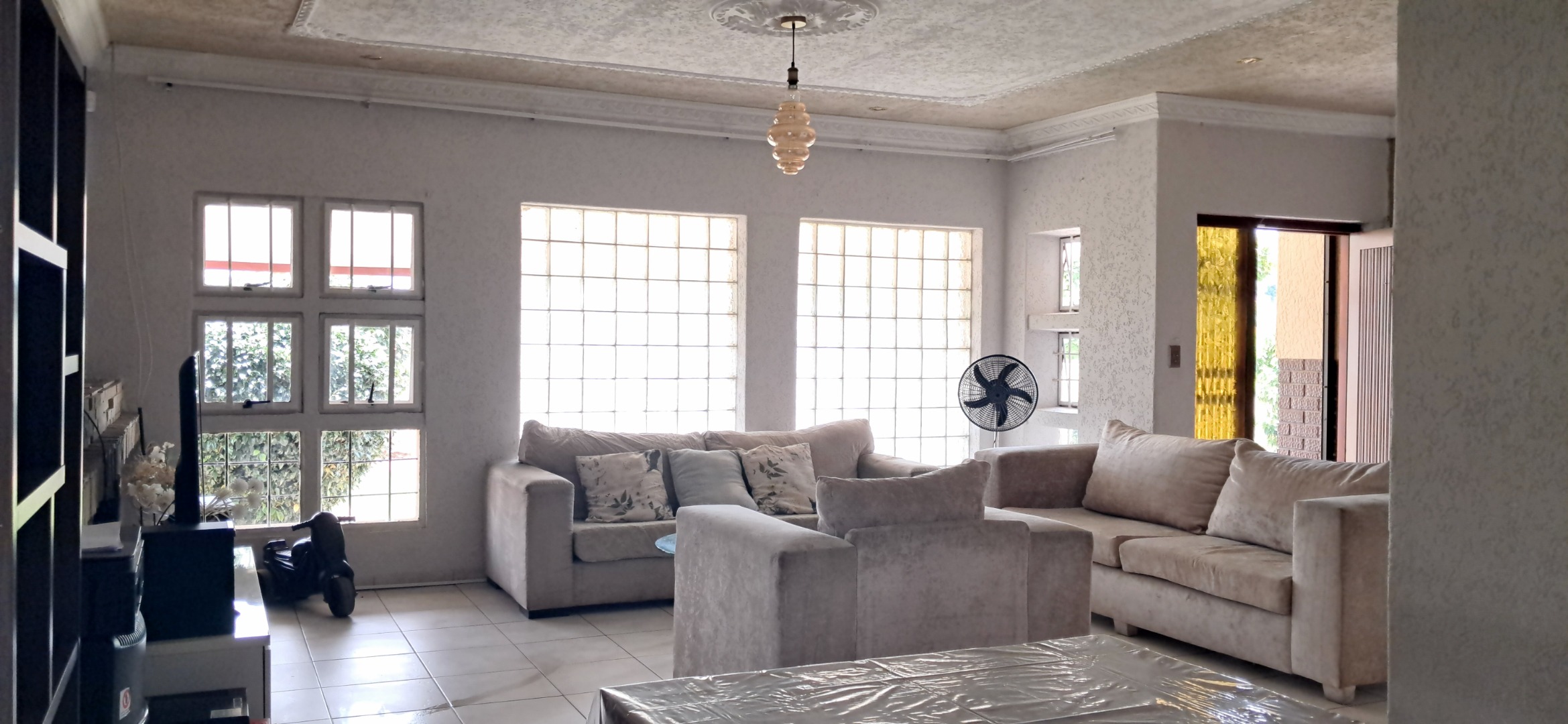 This substantial 392 sqm residence, set on a generous 991 sqm erf in a quiet cul-de-sac in Glenanda, Johannesburg, offers an ideal family lifestyle. The two-story home presents a welcoming facade with an established garden and mature landscaping, hinting at the spacious living within.