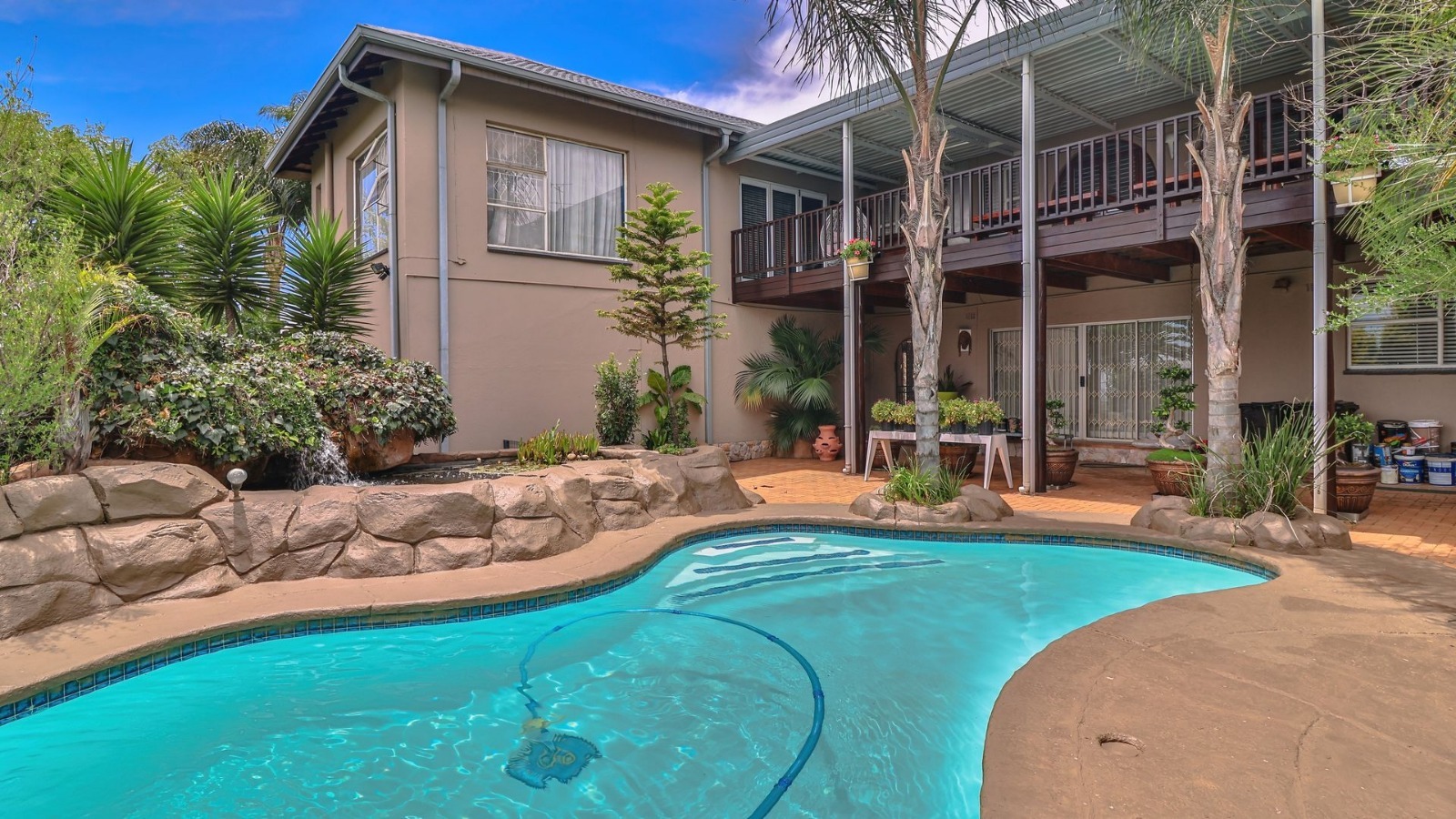 Accommodation is generous, with well-proportioned bedrooms that offer comfort, privacy, and style. The main bedroom stands out as a true retreat, boasting ample space and elegant finishes. Outdoor living is equally impressive, with an elevated entertainment area overlooking the manicured garden and sparkling swimming pool — perfect for hosting guests or enjoying relaxed family time.