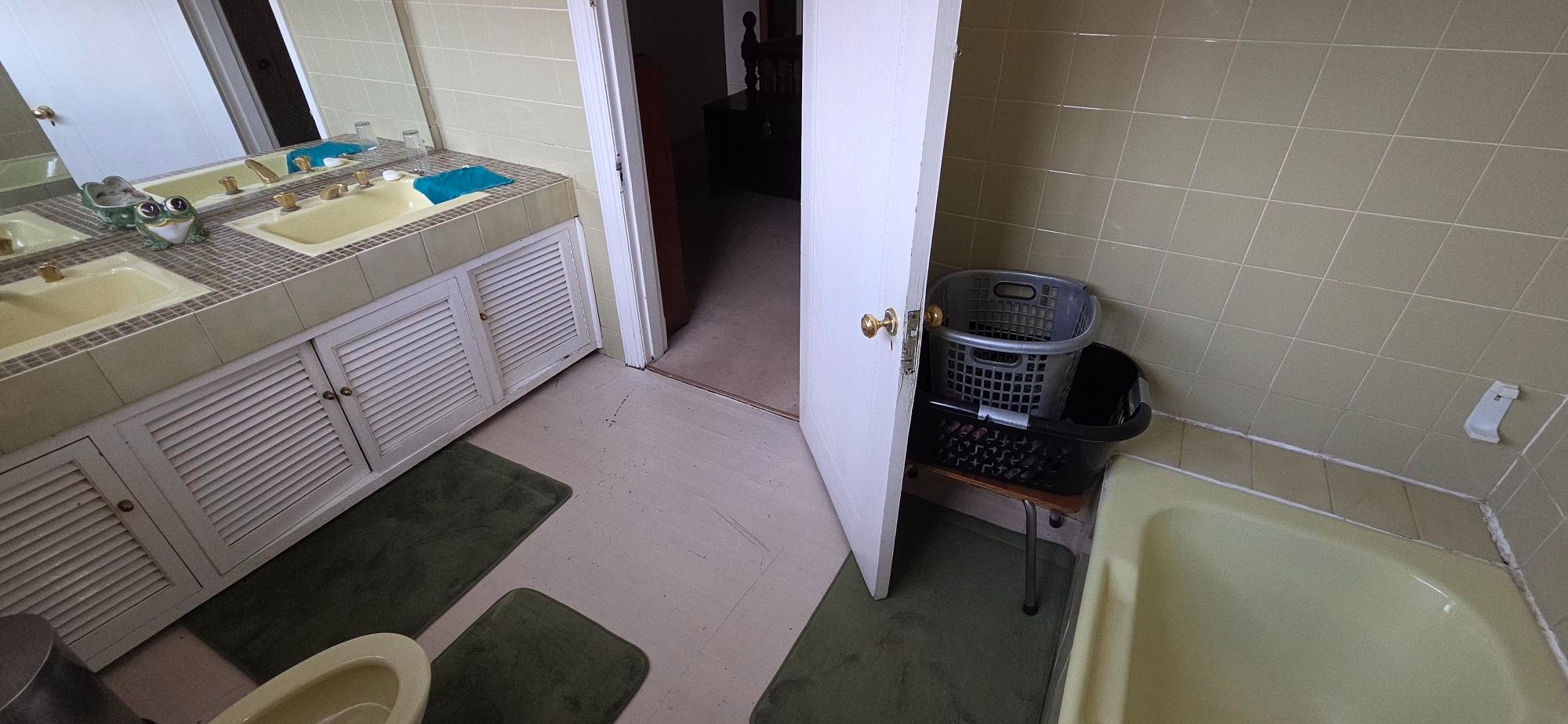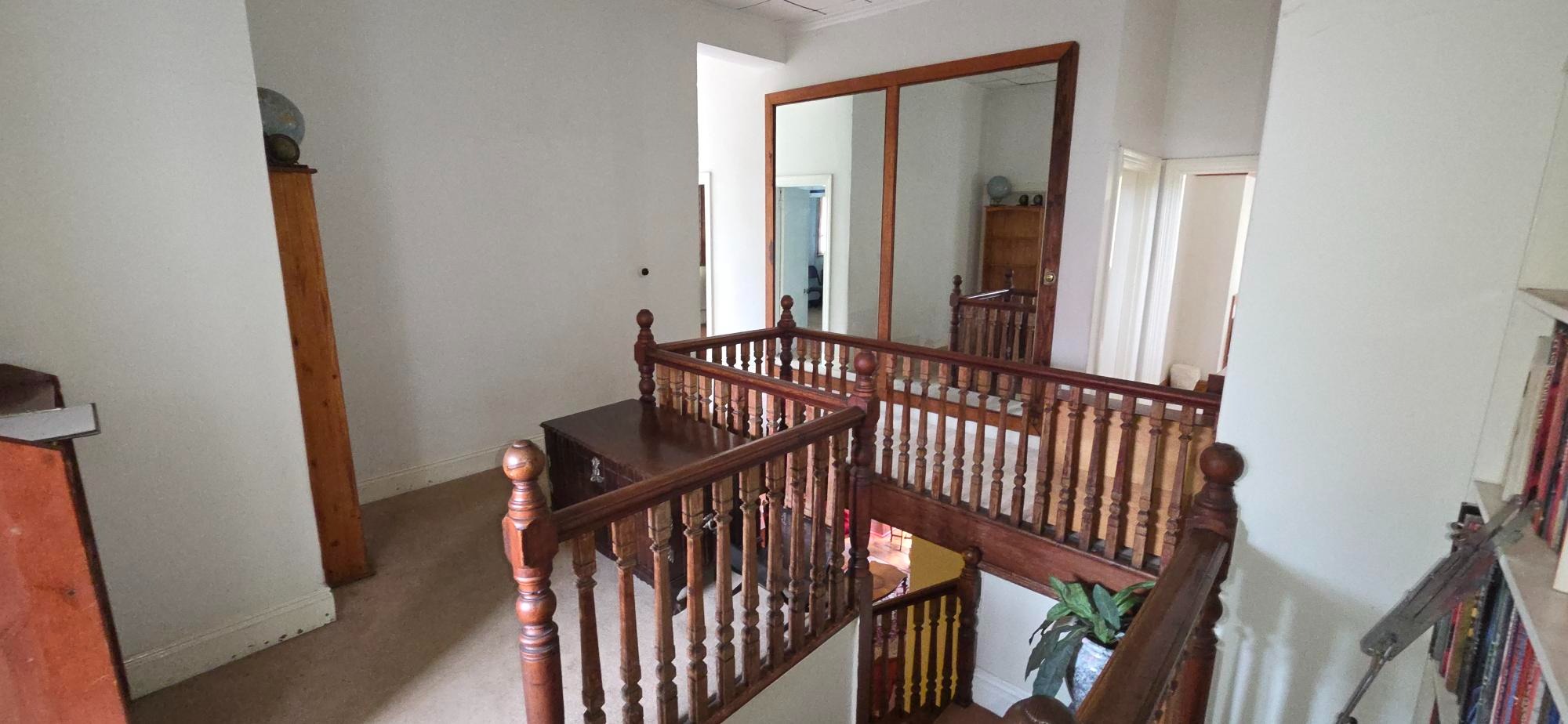 The lovely wooden staircase leads onto the spacious lobby area leading to a full bathroom , 2 huge bedrooms each with 2 entrance doors ( could be converted into 4 separate rooms ) , plus 3 additional rooms and a lovely balcony with beautiful views . All the rooms in the main house total 11 rooms .