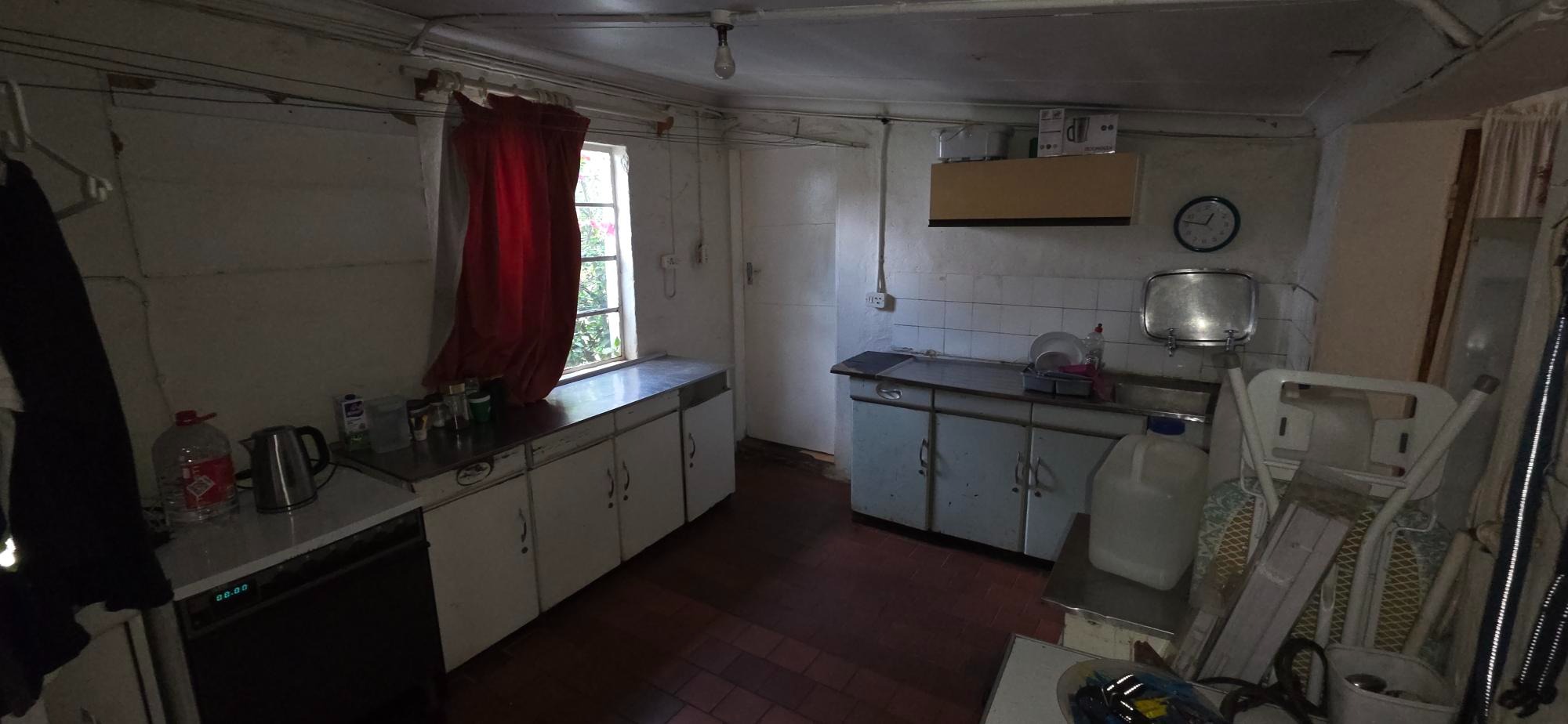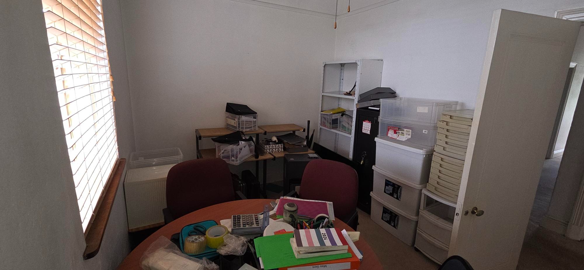 The house consists of an entrance hall , 2 huge downstairs lounges (could be converted into 4 rooms ) , a dining room , storage room , large fitted kitchen and a full bathroom .