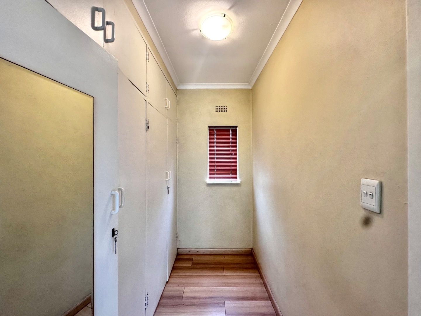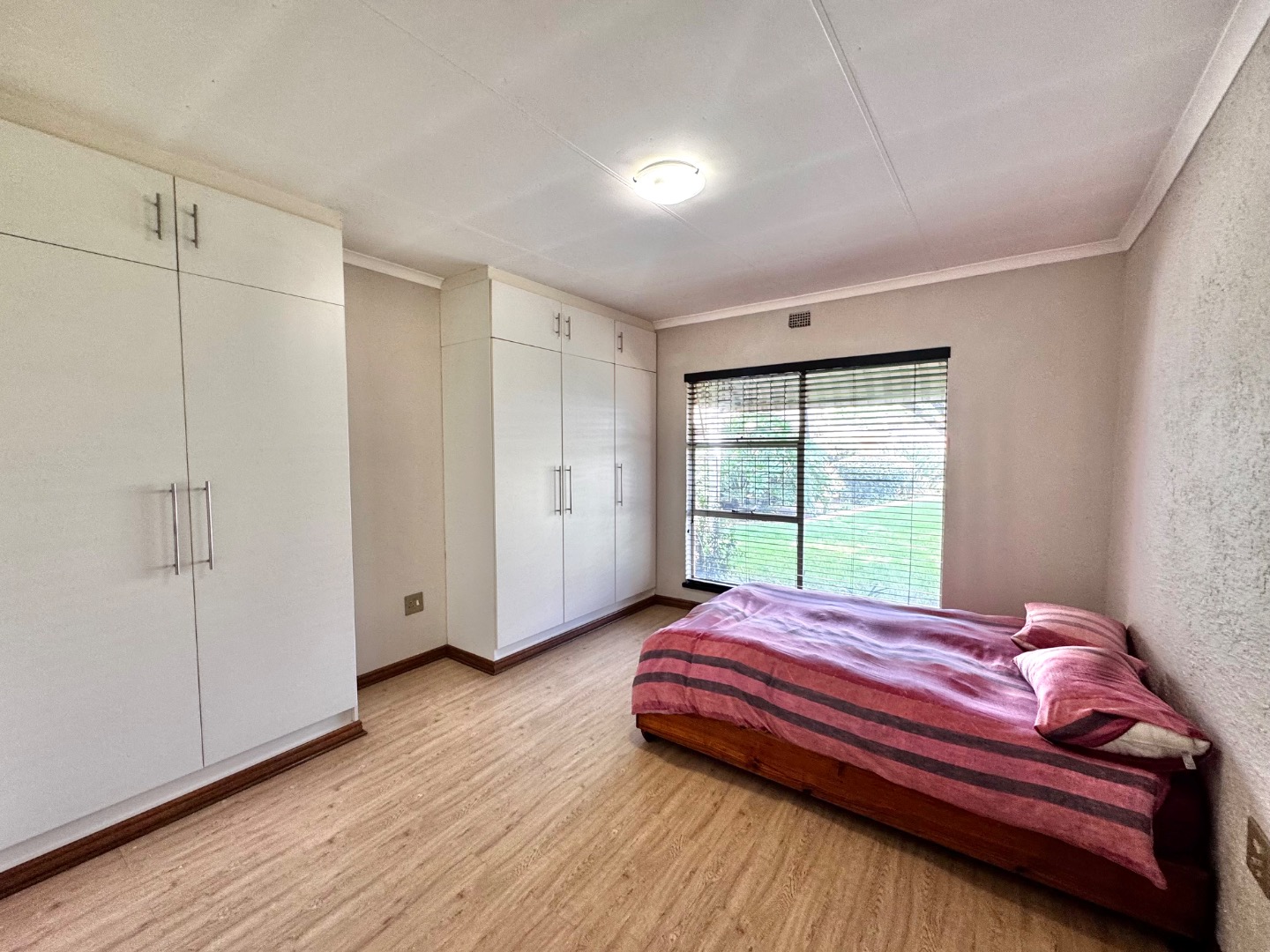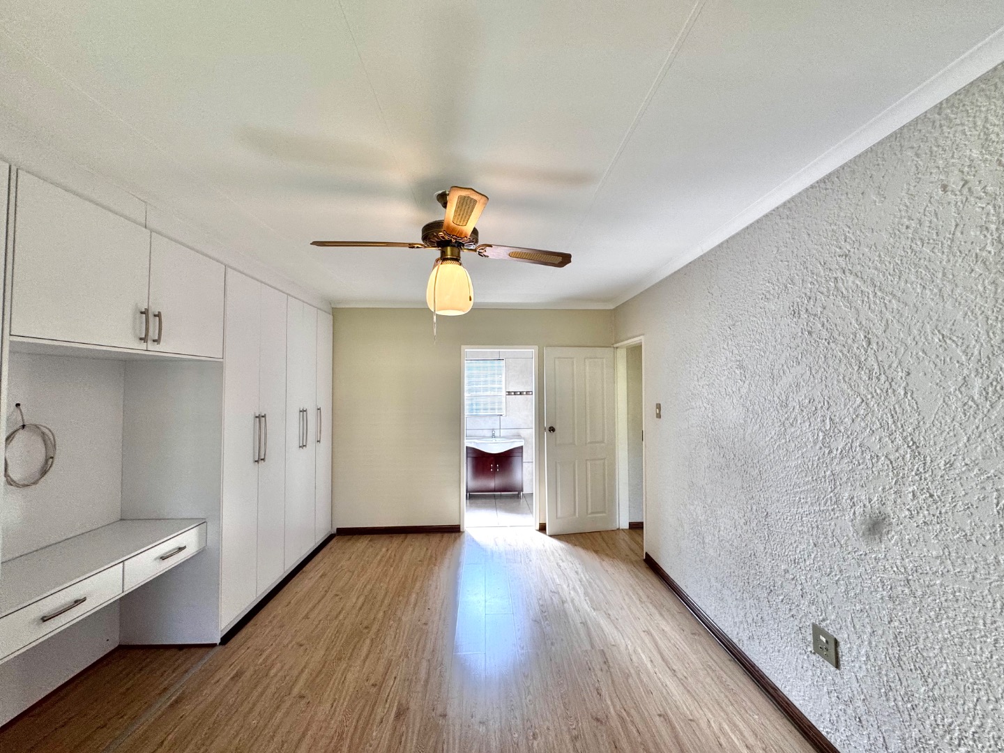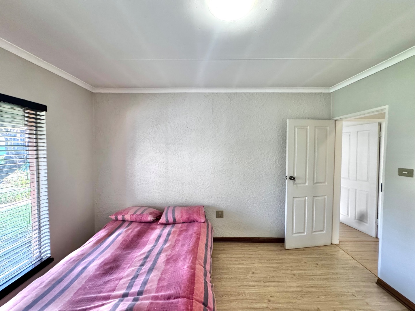 The apartment features a well-sized open-plan living area that flows effortlessly into the kitchen, making it perfect for both relaxing and entertaining. The kitchen is functional and neatly finished, offering ample cupboard space for everyday convenience. Both bedrooms are generously sized, with built-in cupboards, while the bathroom is clean and modern, designed for easy living.