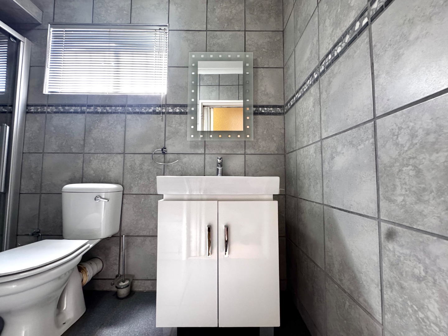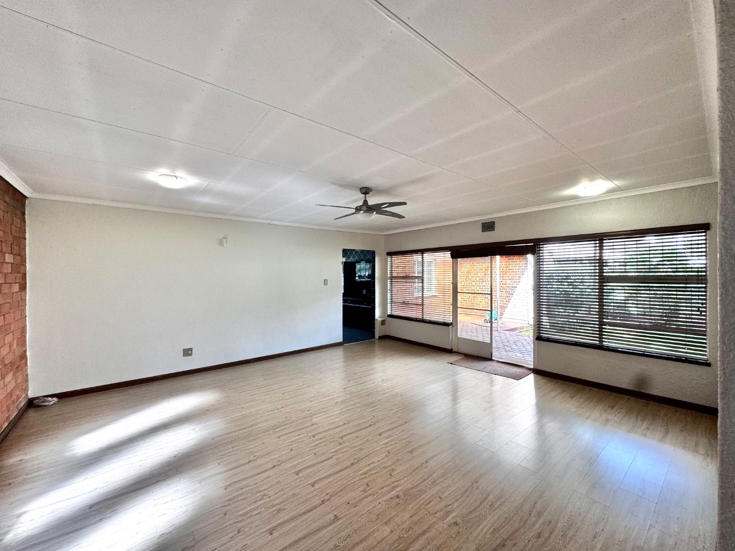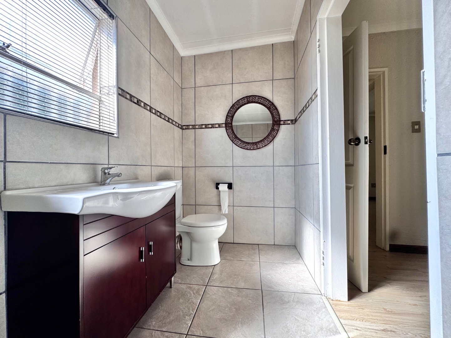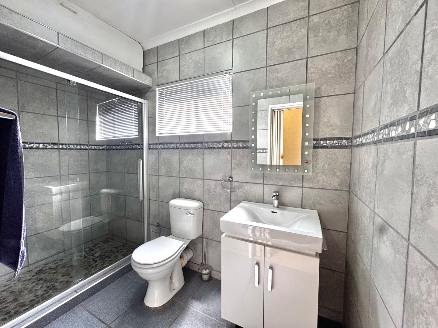 The apartment features a well-sized open-plan living area that flows effortlessly into the kitchen, making it perfect for both relaxing and entertaining. The kitchen is functional and neatly finished, offering ample cupboard space for everyday convenience. Both bedrooms are generously sized, with built-in cupboards, while the bathroom is clean and modern, designed for easy living.