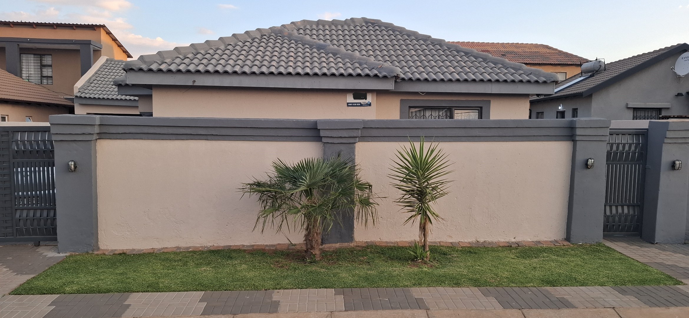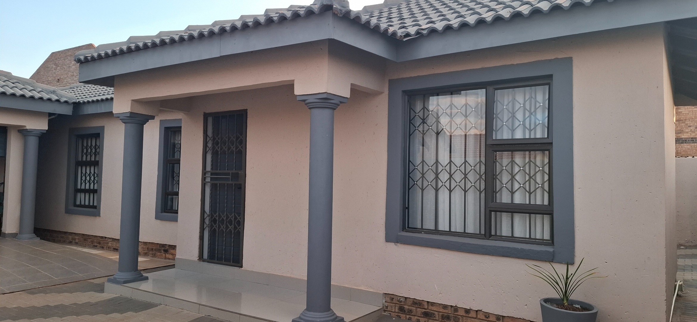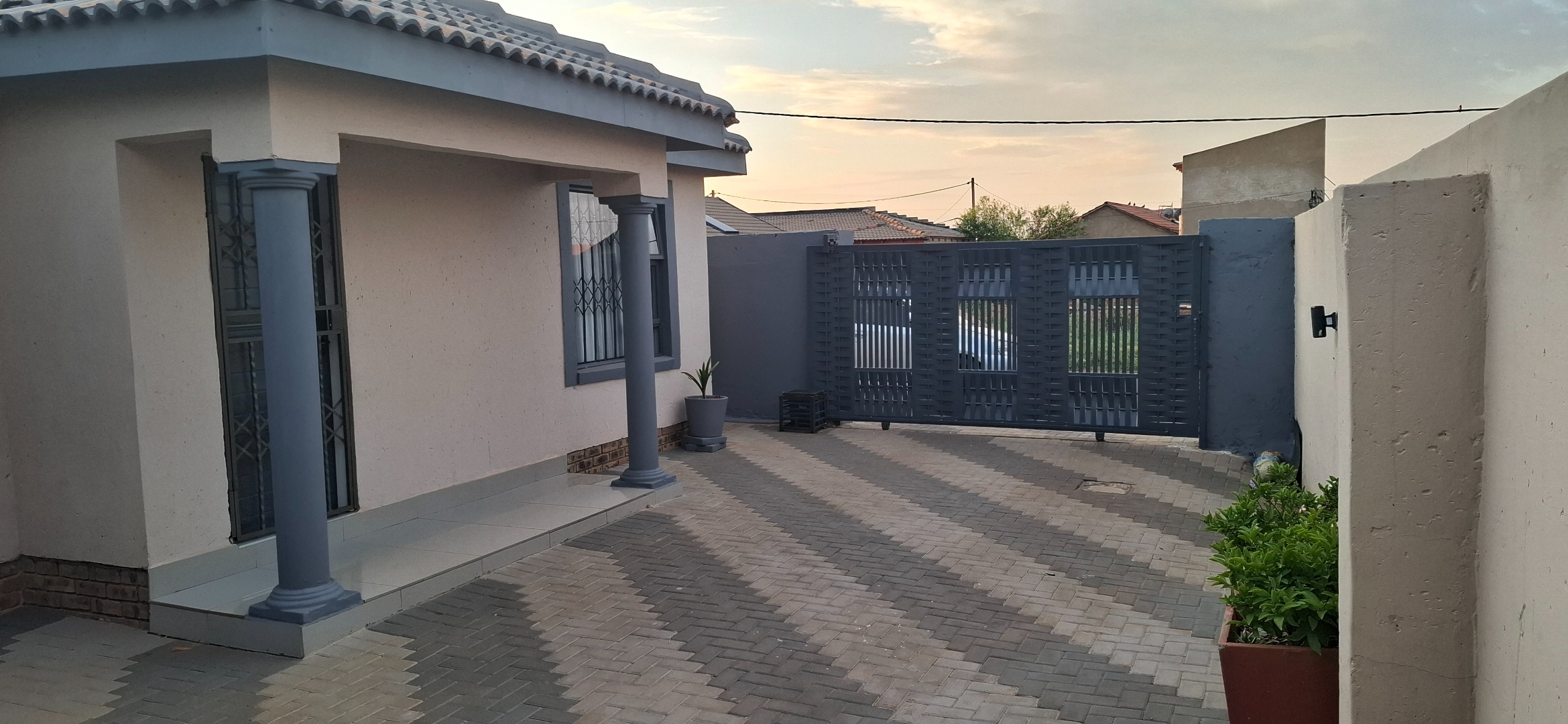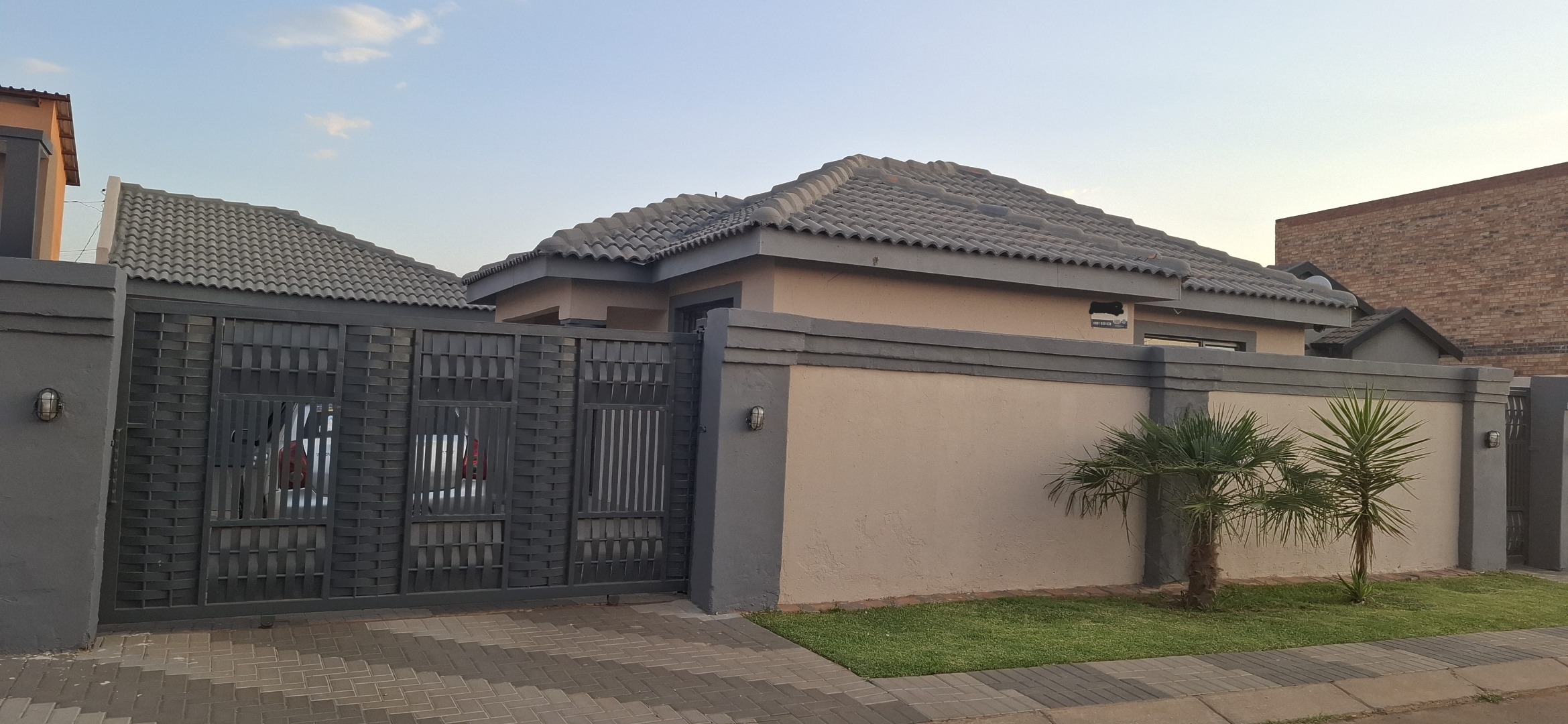 Welcome to this lovely and spacious house, perfect for a growing family. The house features generously sized three bedrooms, laminated floors, with B.I.C Two modern bathrooms of which one is an en-suite and walk-in closet, a spacious lounge area, a dining room and a fully fitted open plan kitchen. That offers a plenty cupboard space, stove, oven and a hob in a good working condition. Porcelain tiles aluminum window frames with burglar bars and doors and two CCTV cameras for extra security