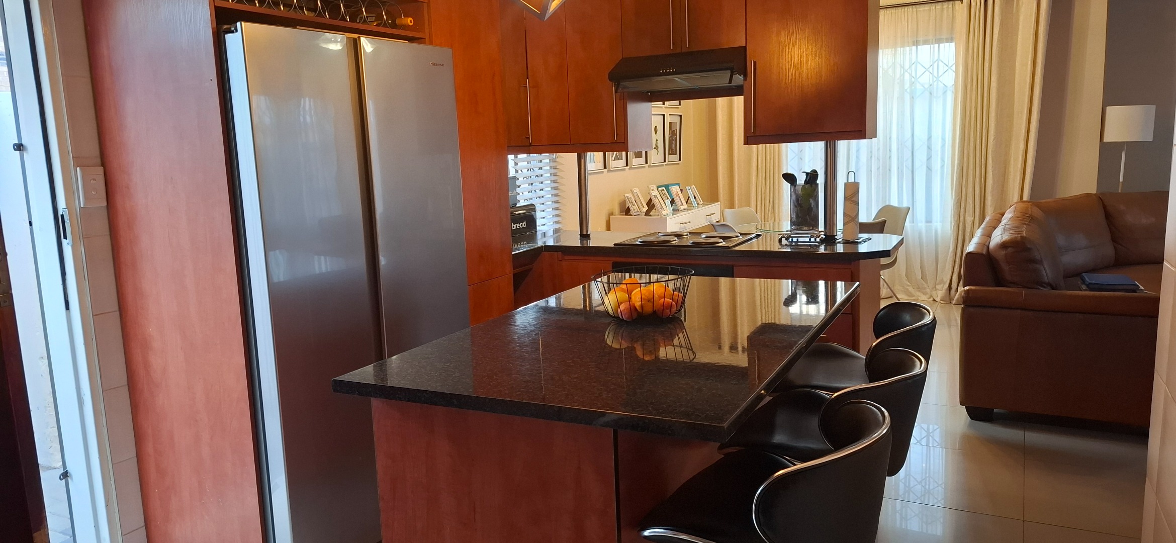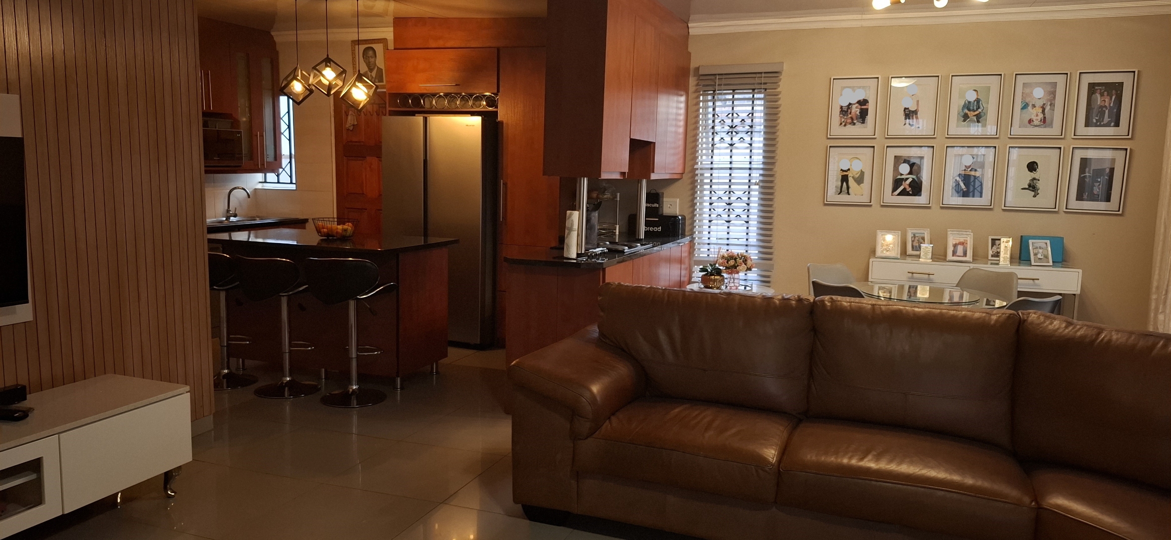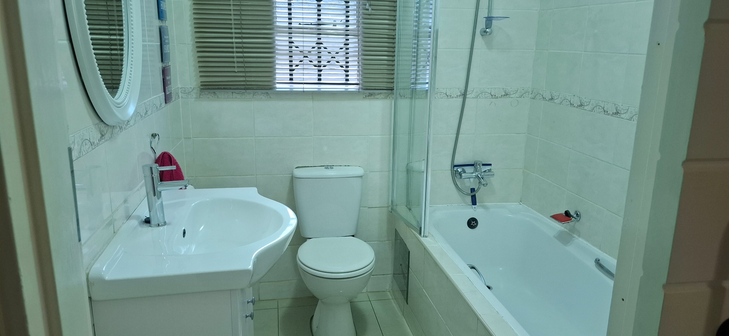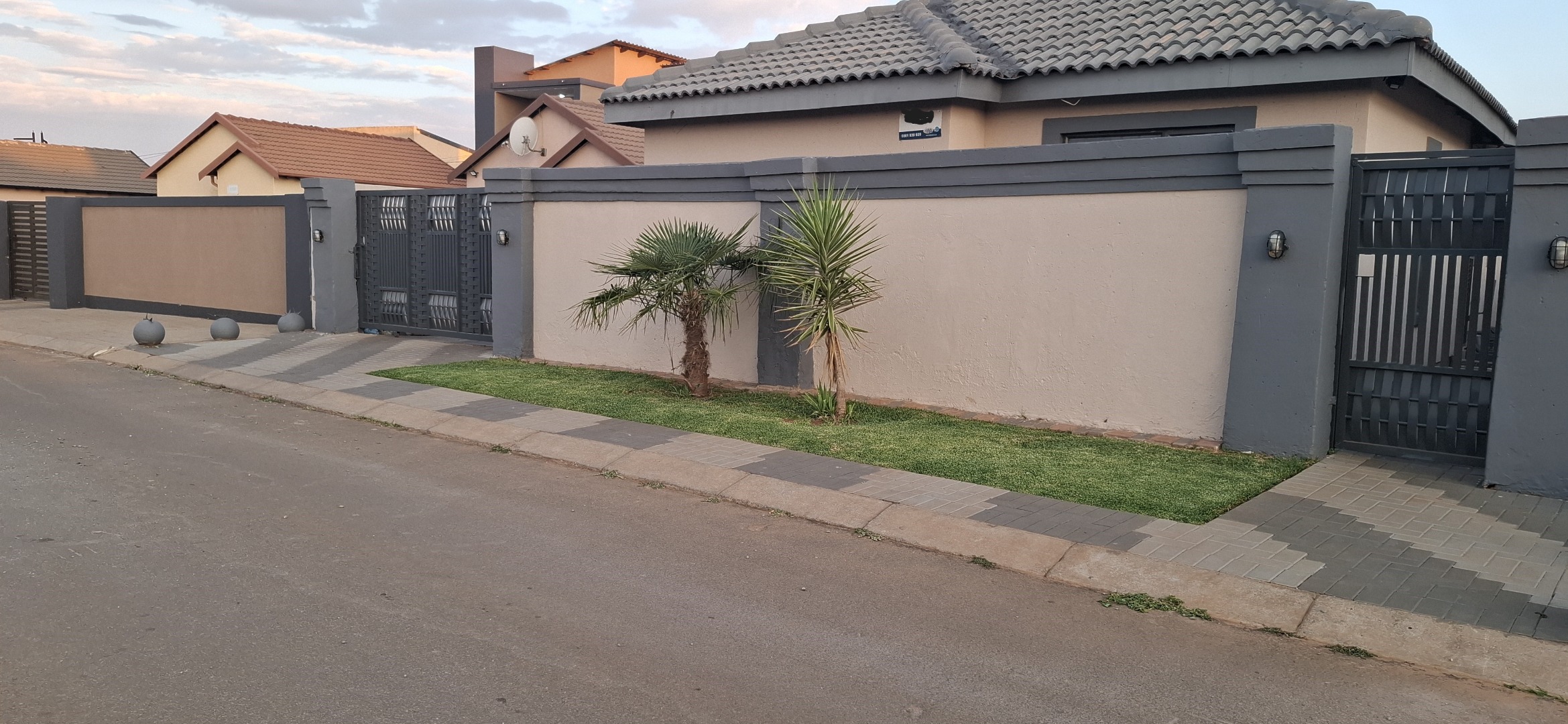 Welcome to this lovely and spacious house, perfect for a growing family. The house features generously sized three bedrooms, laminated floors, with B.I.C Two modern bathrooms of which one is an en-suite and walk-in closet, a spacious lounge area, a dining room and a fully fitted open plan kitchen. That offers a plenty cupboard space, stove, oven and a hob in a good working condition. Porcelain tiles aluminum window frames with burglar bars and doors and two CCTV cameras for extra security