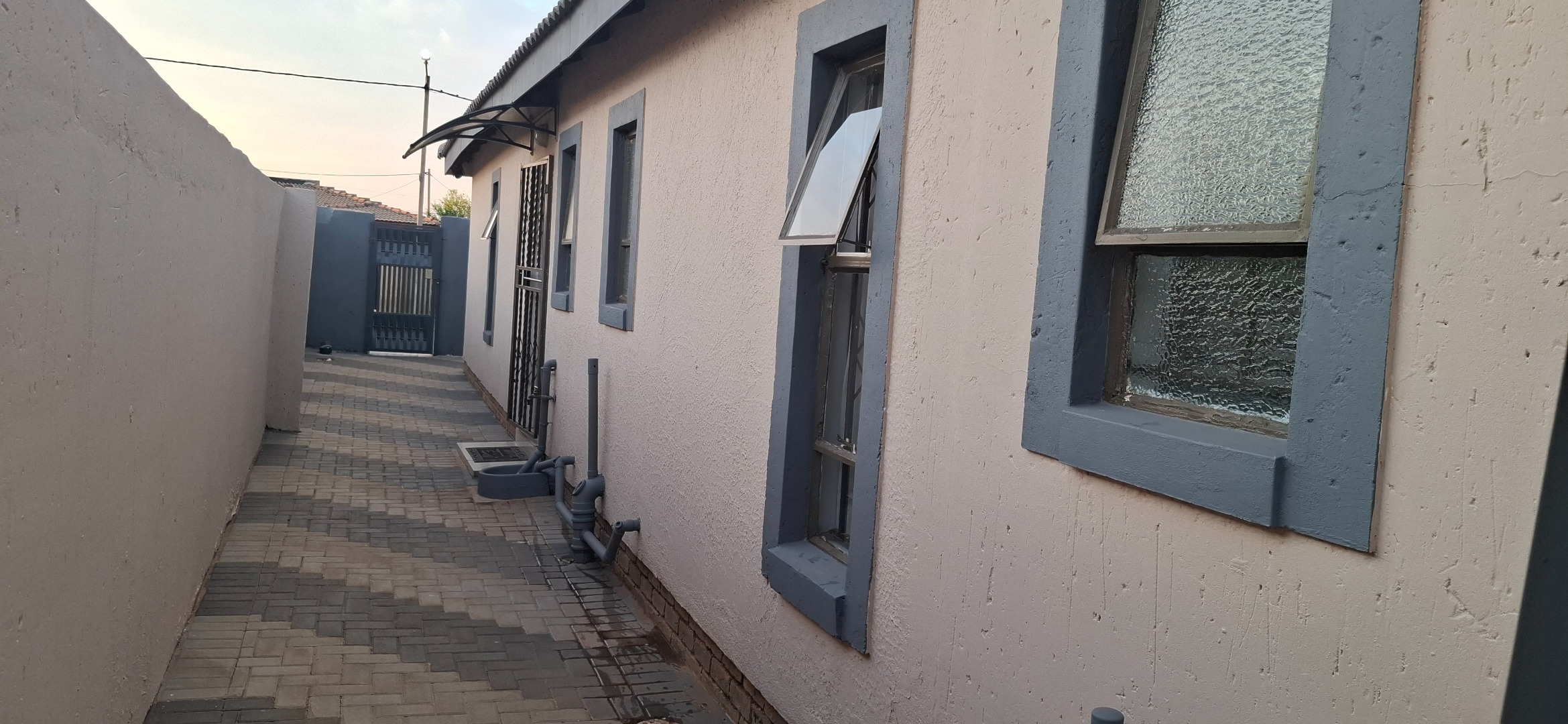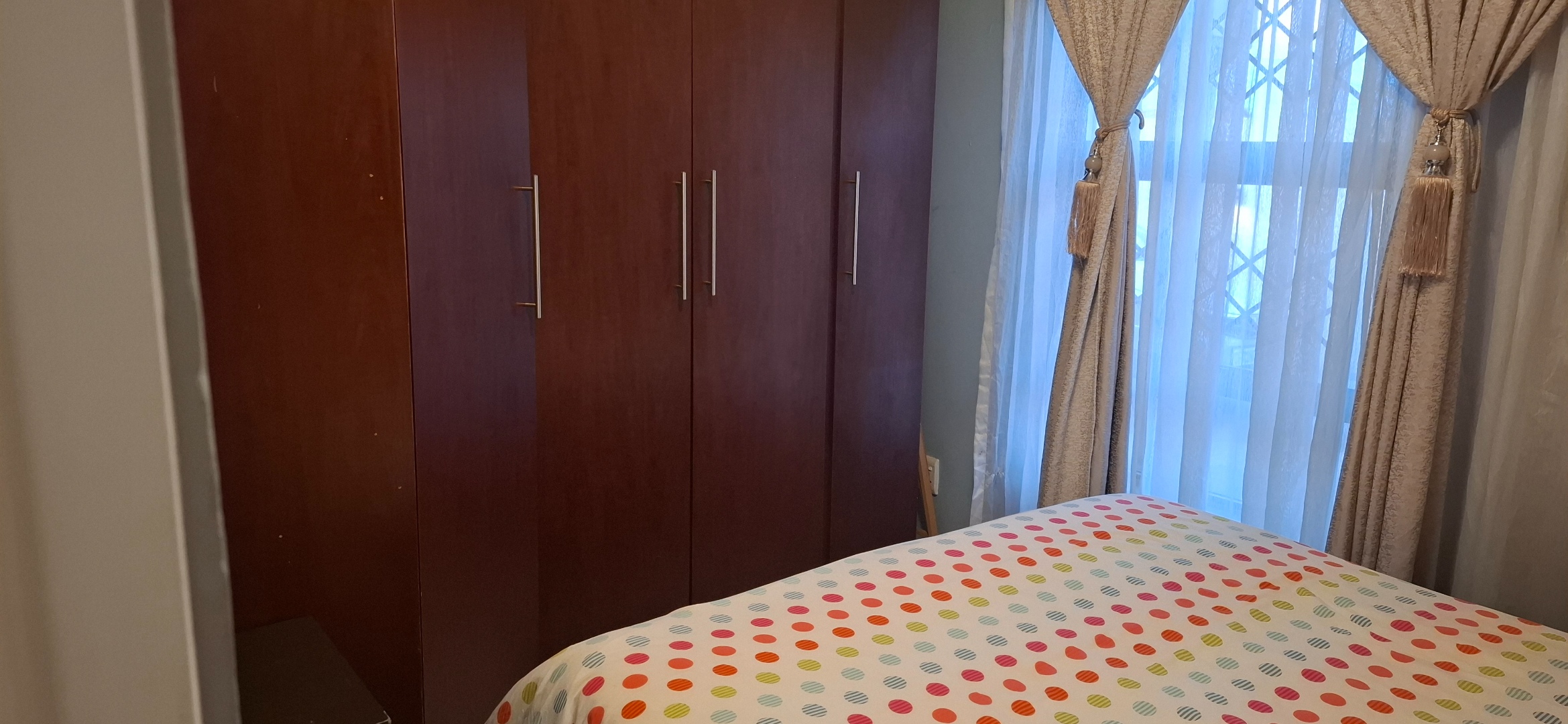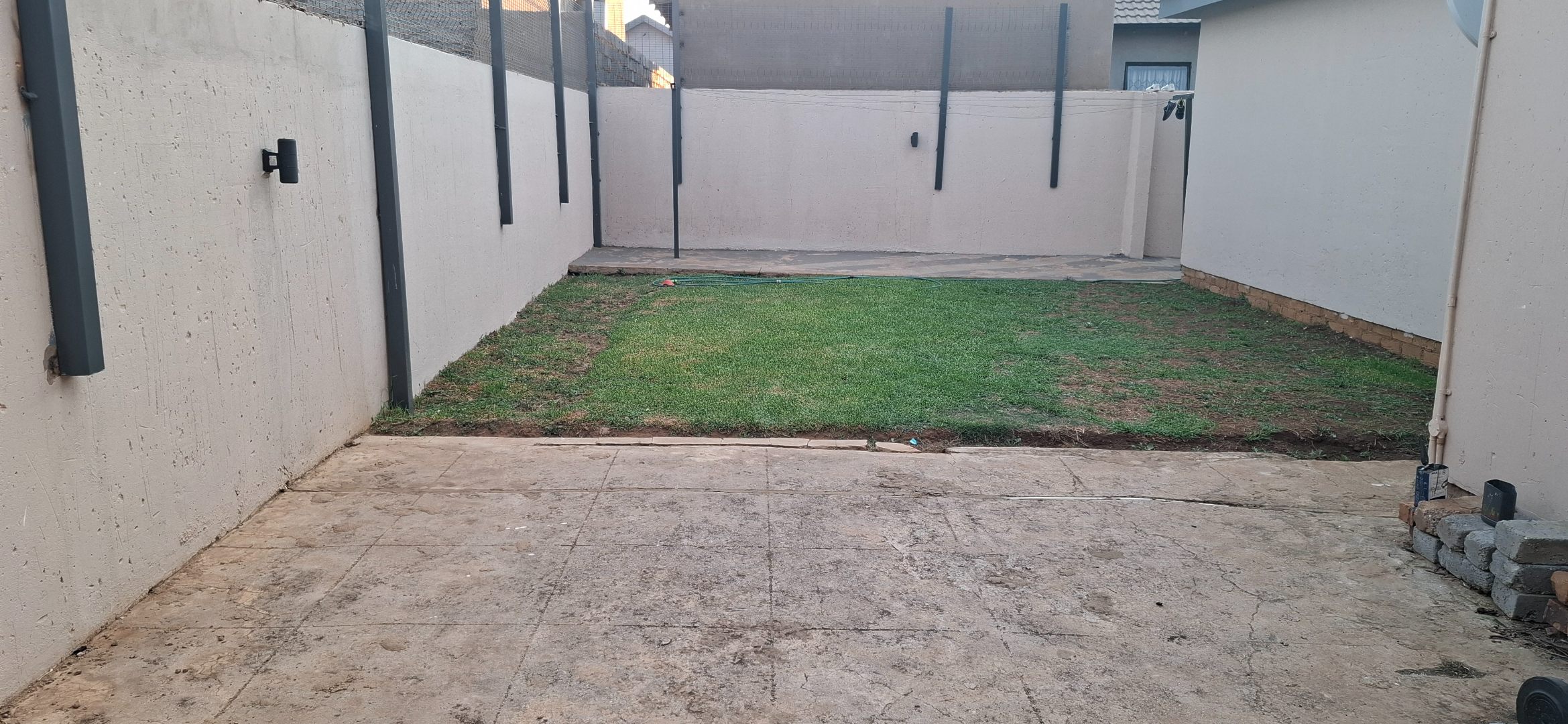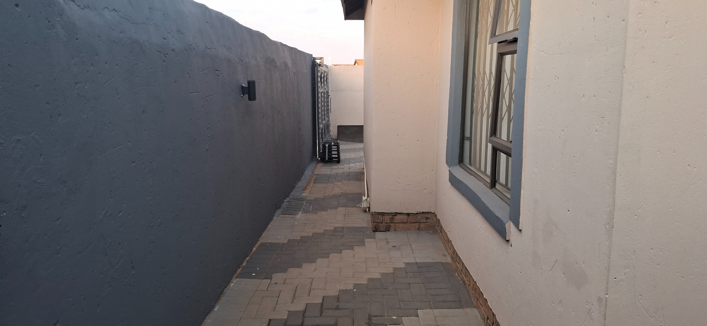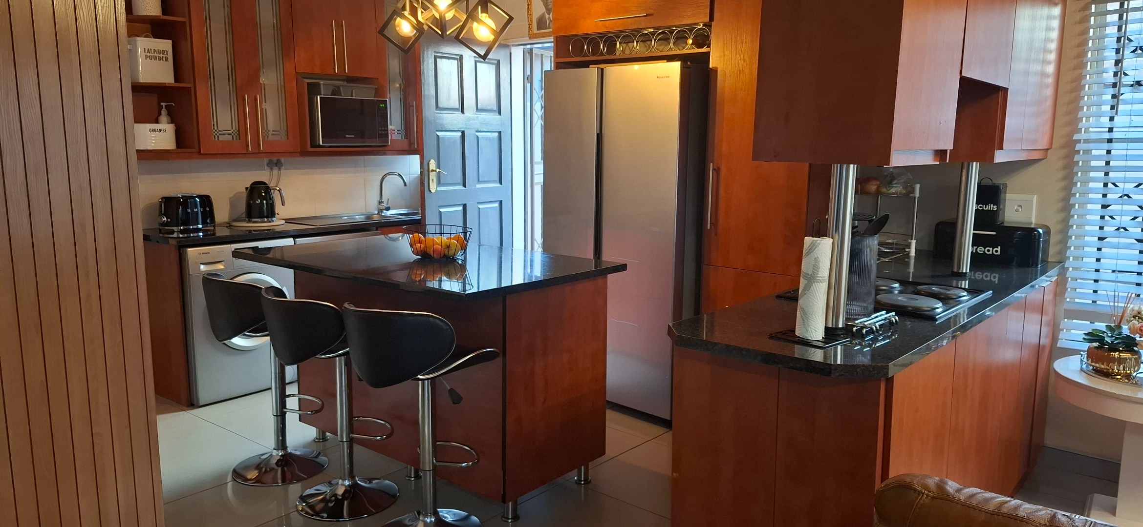Welcome to this lovely and spacious house, perfect for a growing family. The house features generously sized three bedrooms, laminated floors, with B.I.C Two modern bathrooms of which one is an en-suite and walk-in closet, a spacious lounge area, a dining room and a fully fitted open plan kitchen. That offers a plenty cupboard space, stove, oven and a hob in a good working condition. Porcelain tiles aluminum window frames with burglar bars and doors and two CCTV cameras for extra security