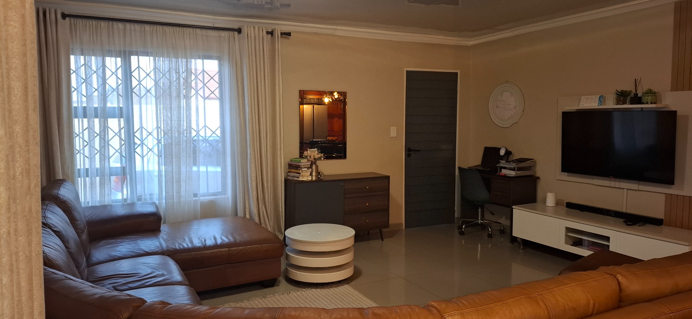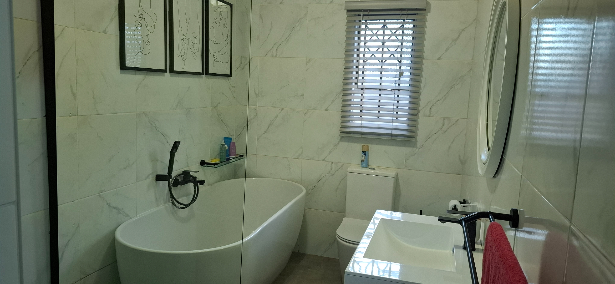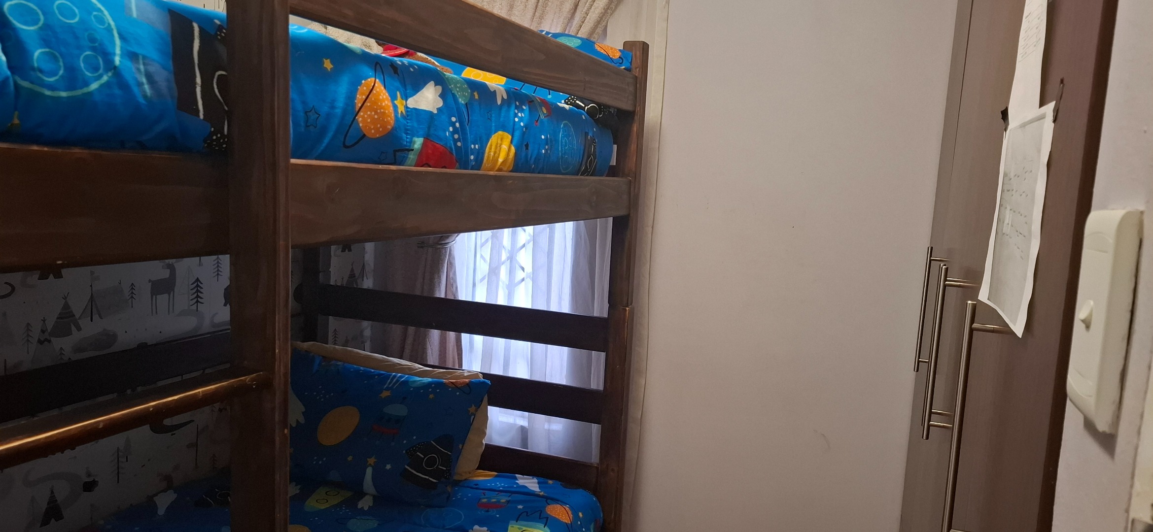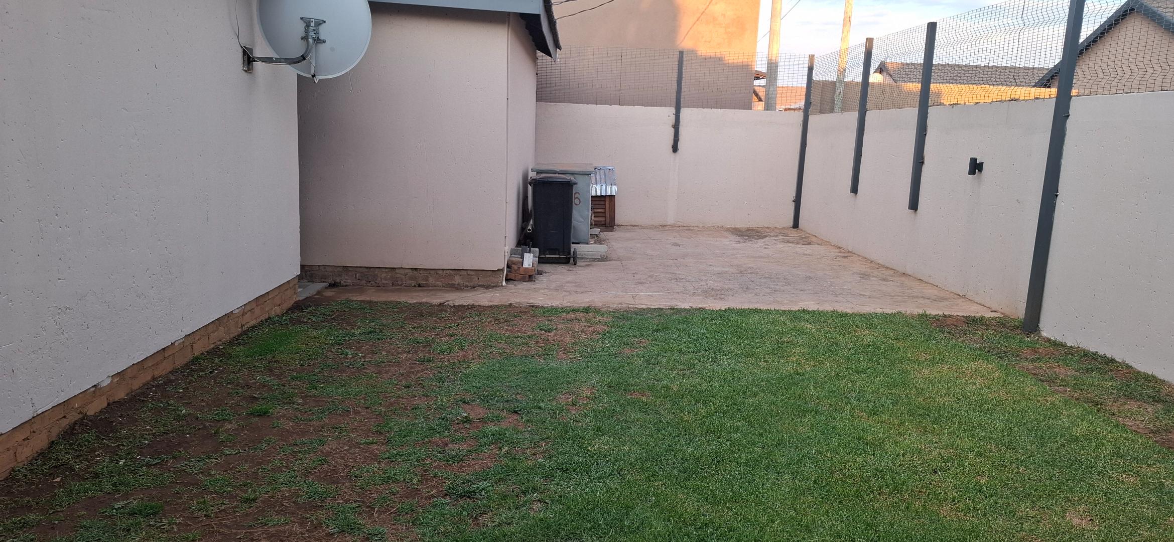 Welcome to this lovely and spacious house, perfect for a growing family. The house features generously sized three bedrooms, laminated floors, with B.I.C Two modern bathrooms of which one is an en-suite and walk-in closet, a spacious lounge area, a dining room and a fully fitted open plan kitchen. That offers a plenty cupboard space, stove, oven and a hob in a good working condition. Porcelain tiles aluminum window frames with burglar bars and doors and two CCTV cameras for extra security