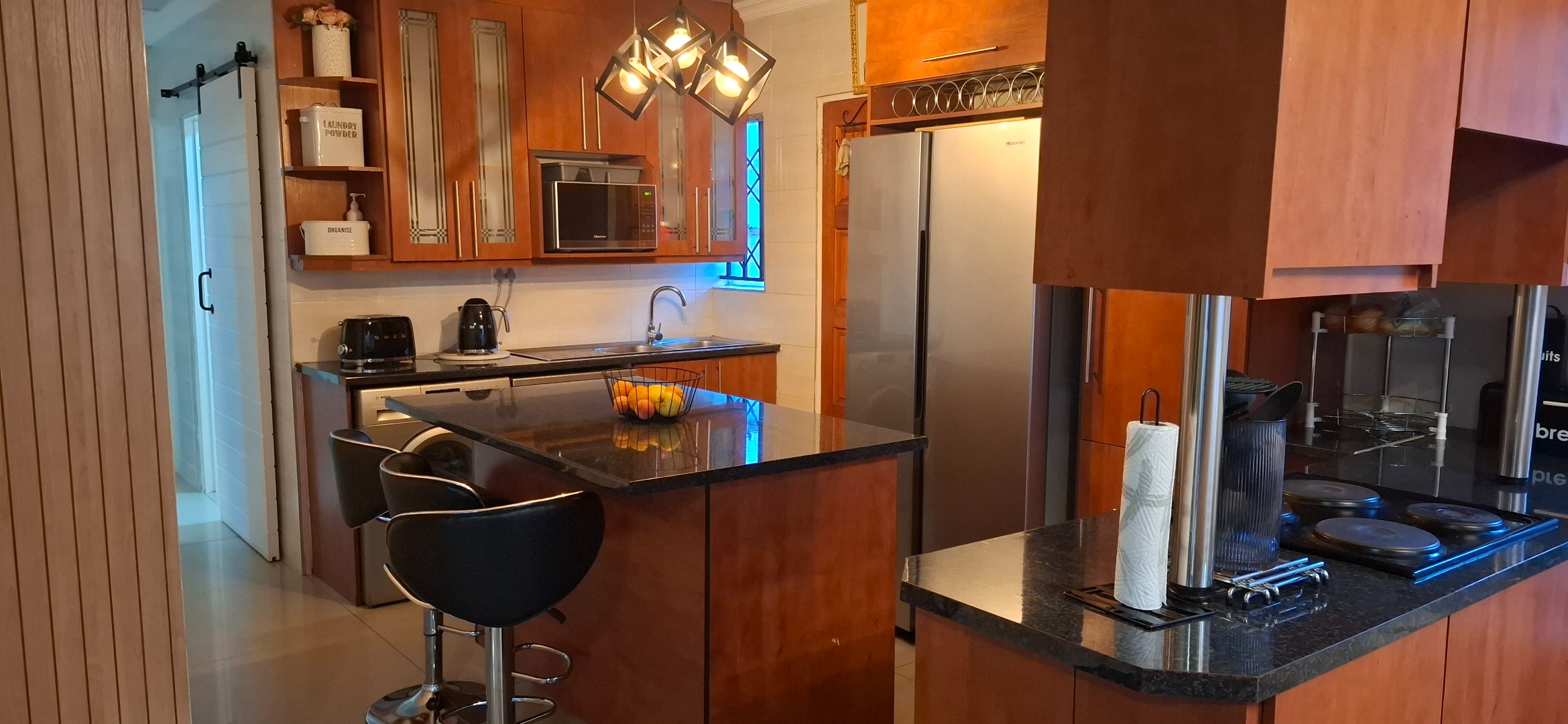 Two geysers one electrical, the other one a solar. Pre paid water and electricity, well maintained garden. Double garage with auto door well sized yard, secured with surrounding wall, paved and remote auto gate. This property is located in a gated community with controlled and neighborhood watch patrollers. It is close to many amenities, easy access to main roads and public transport. Malls, hospitals, clinics, schools, police station, filling stations are nearby.