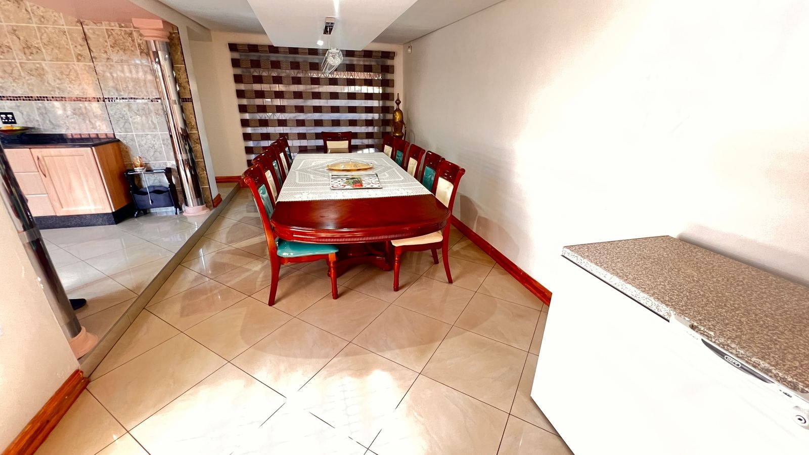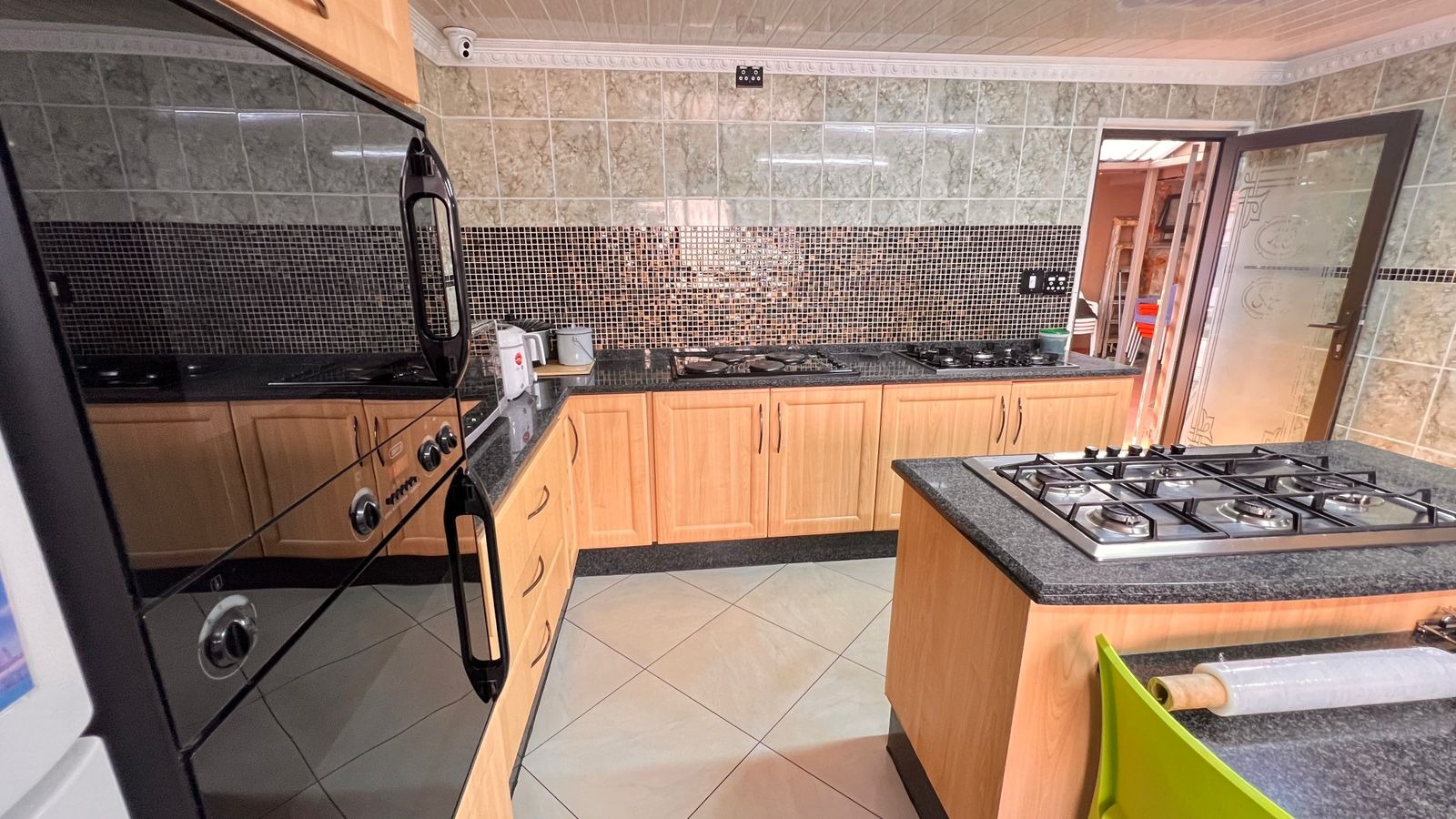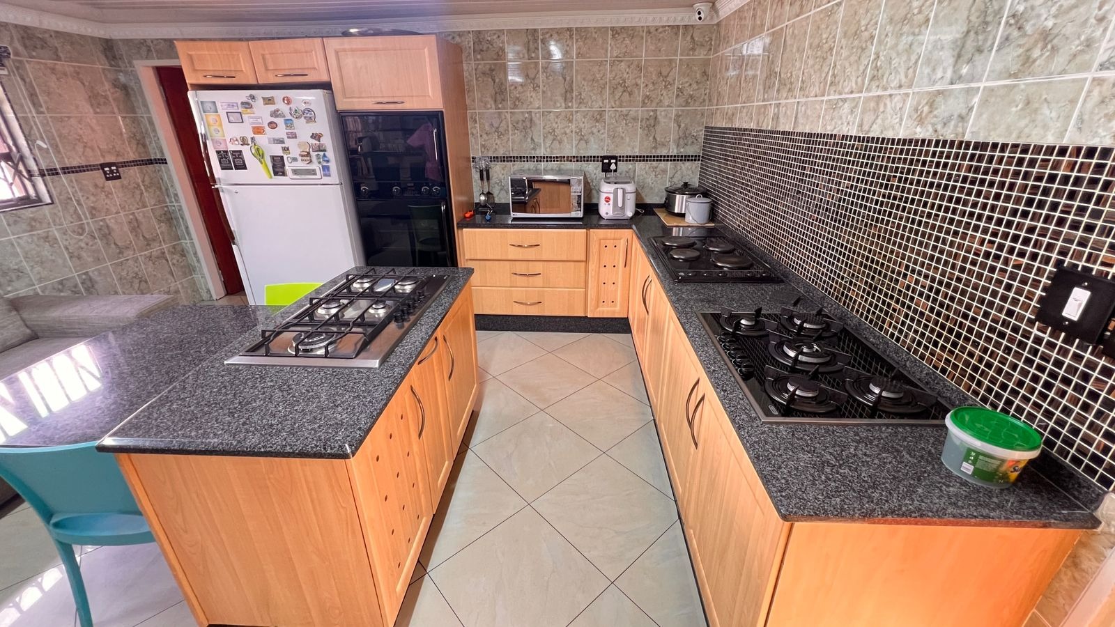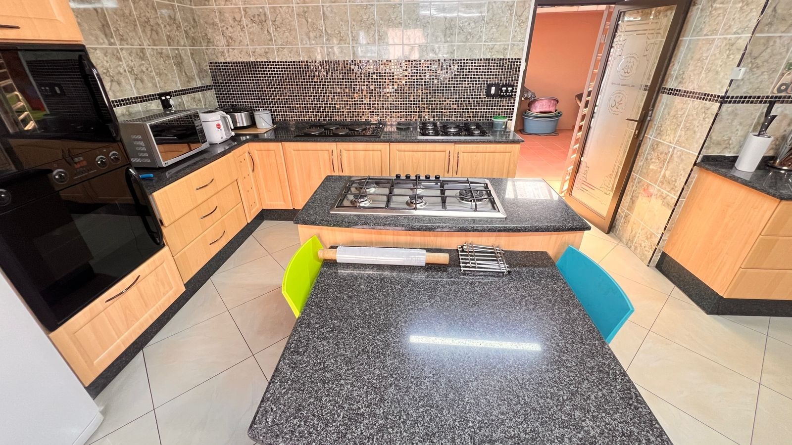 The kitchen is exceptionally spacious and thoughtfully designed, truly the heart of the home. It features ample cupboard space, a built-in breakfast table, and both gas and electric stove units to accommodate all your cooking needs. This impressive culinary space is further complemented by a separate laundry area and a dedicated pantry, providing additional storage and convenience.