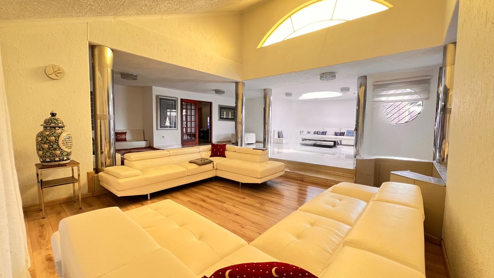 Upon entrance, you are welcomed by three distinct living areas that create a seamless flow throughout the home. The first formal lounge leads into a second, larger lounge area, ideal for entertaining guests or hosting family gatherings. A separate TV room offers a more private and relaxed setting and flows effortlessly into the dining area and kitchen, ensuring practical day-to-day living.