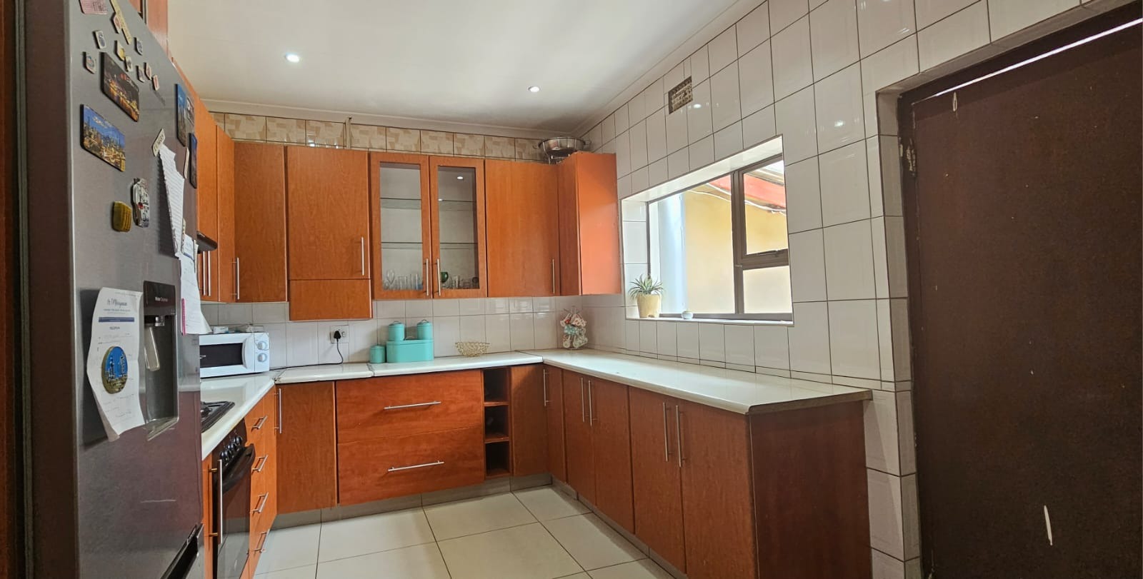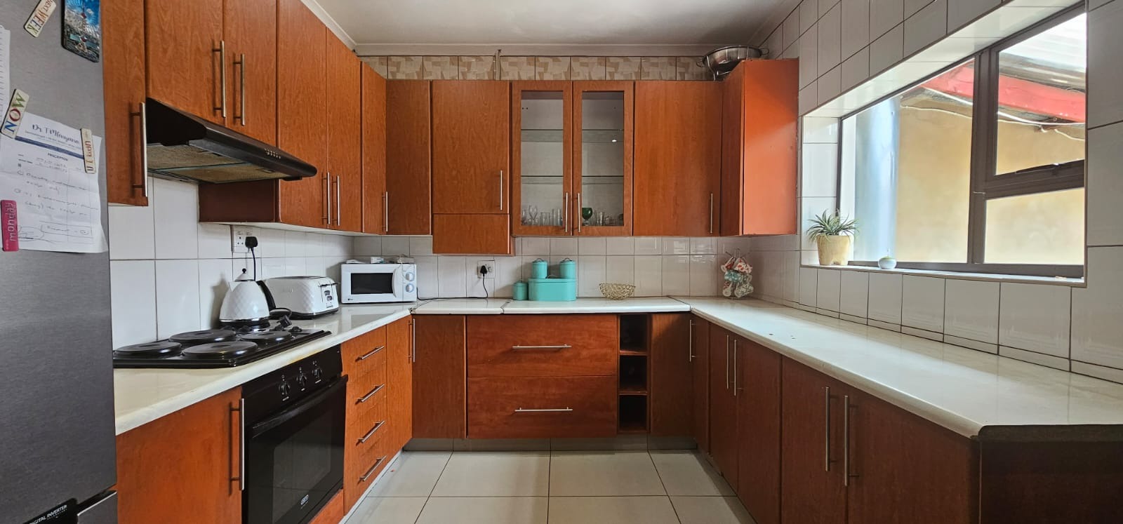 Security is well covered with an alarm system, electric fence, and automated gates. The property also offers a double garage plus an impressive 15 open parking spaces, making it perfect for large families or visitors.