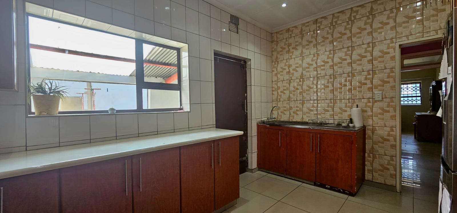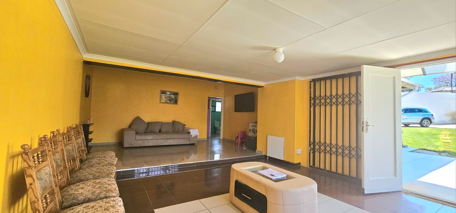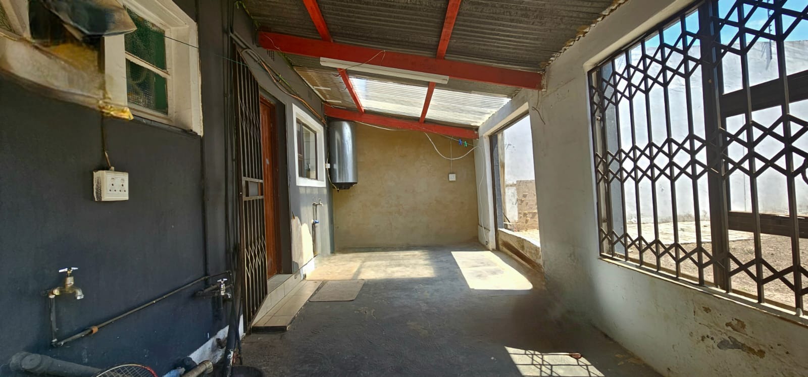Additional features include staff quarters with a toilet and shower, a patio for outdoor enjoyment, and aluminium window frames fitted with burglar bars for added peace of mind.