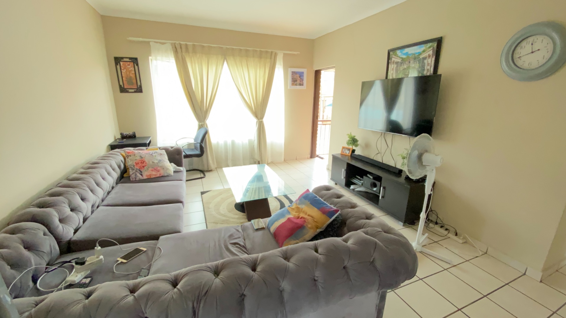 - Large sleekly tiled lounge area