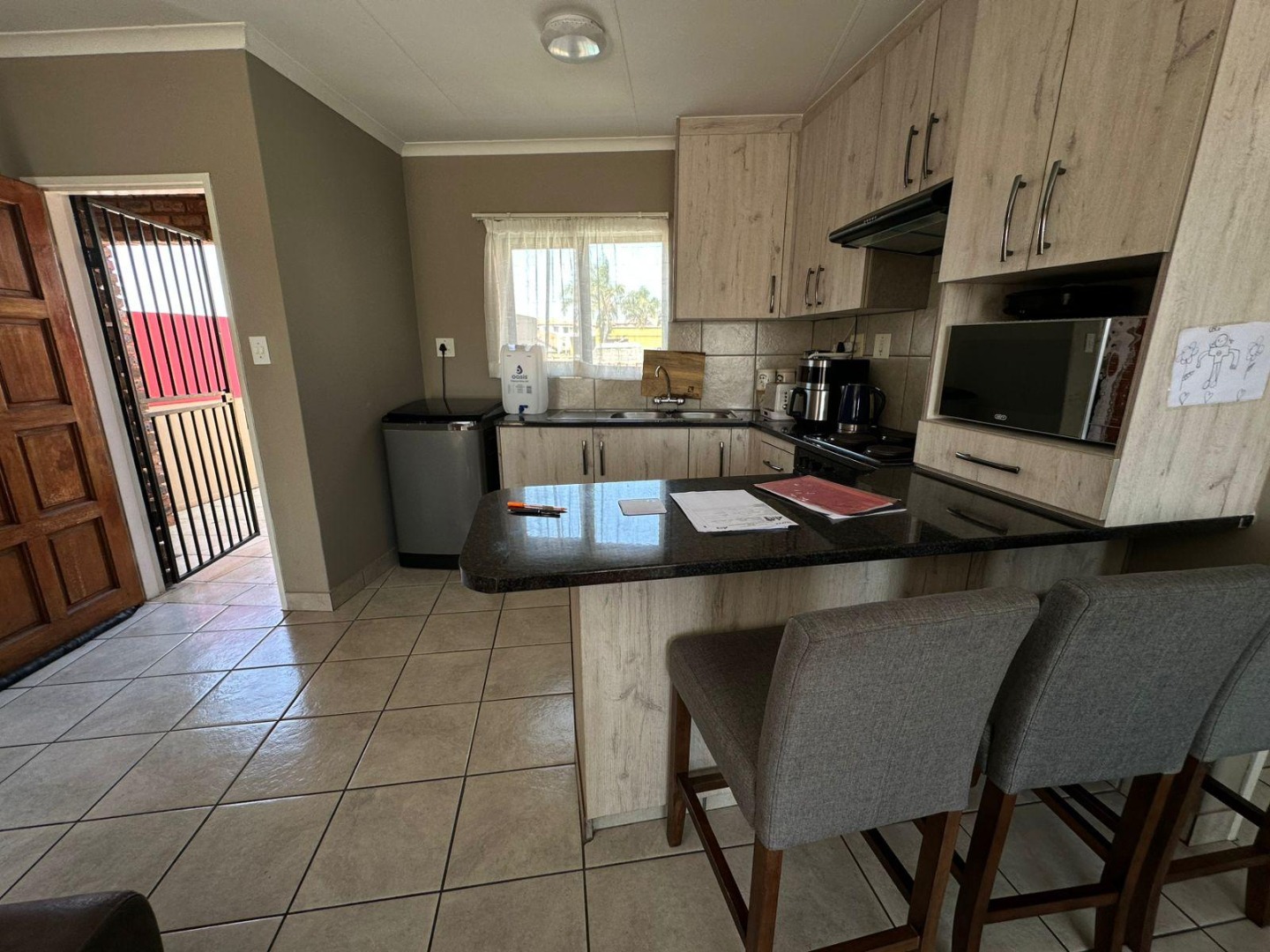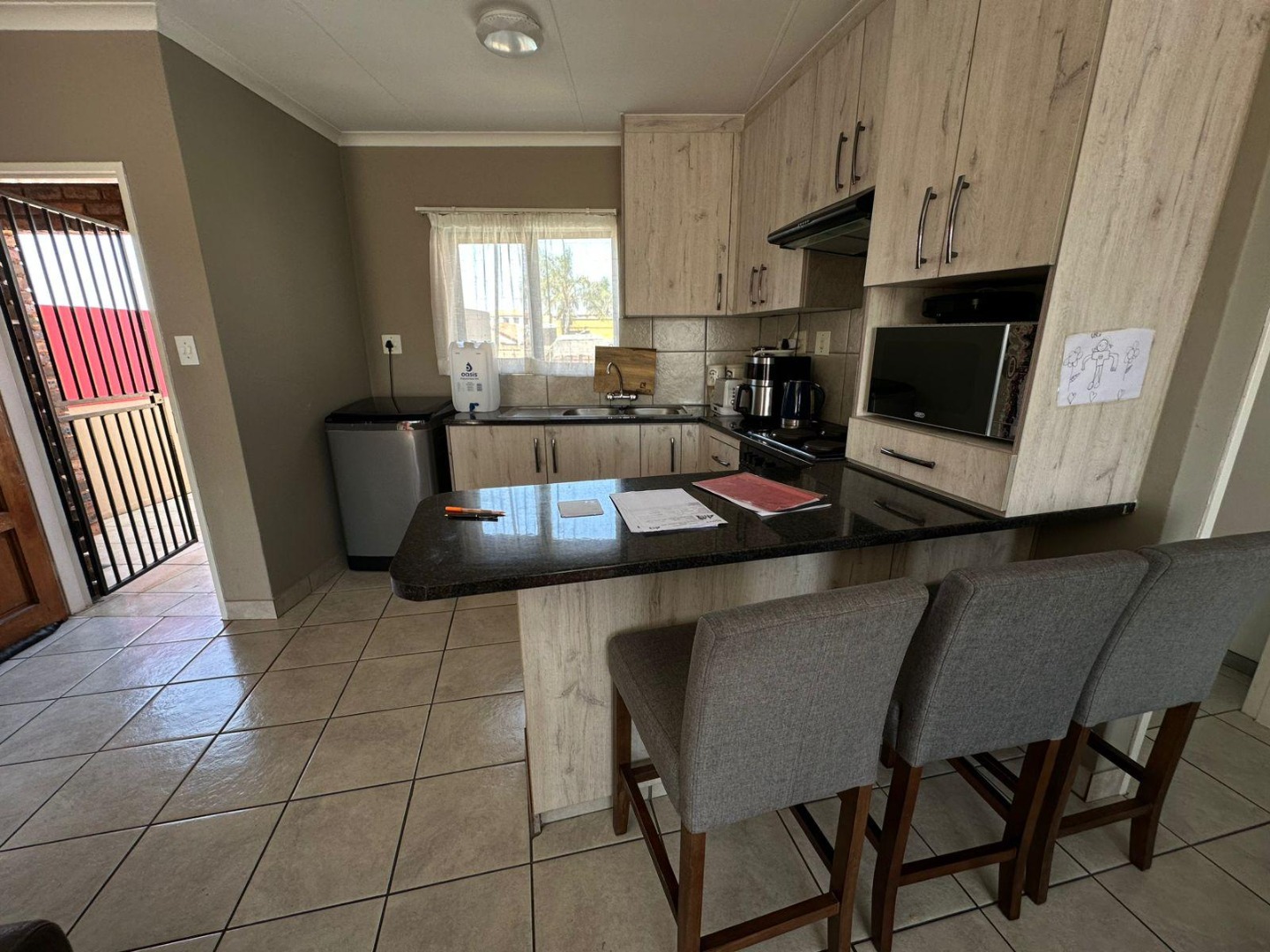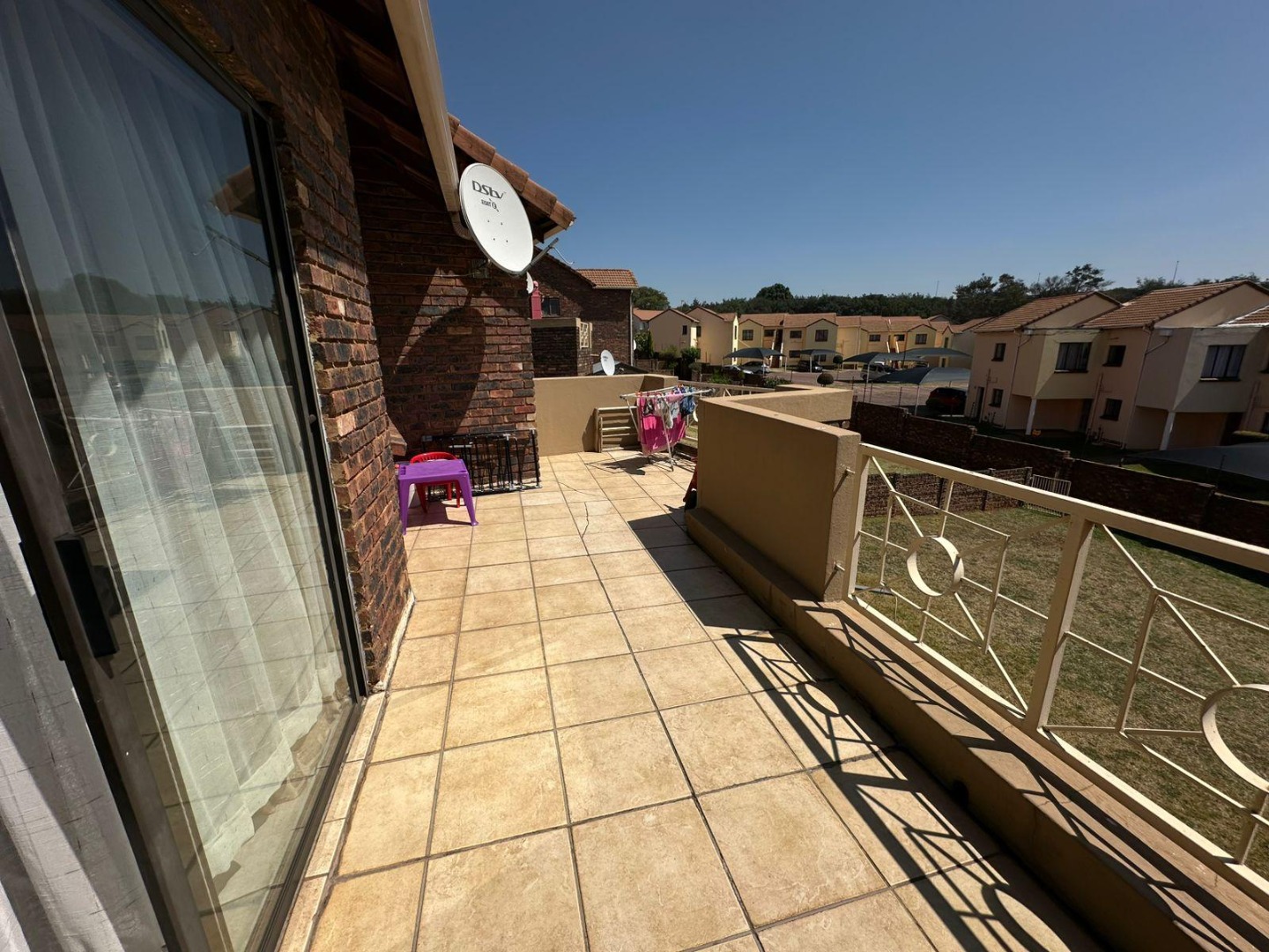 The home features a spacious open-plan lounge and dining area that flows seamlessly onto a private balcony with views over the complex – a great spot to relax after a long day. The kitchen is neat and functional, fitted with plenty of cupboard space and room for essential appliances.