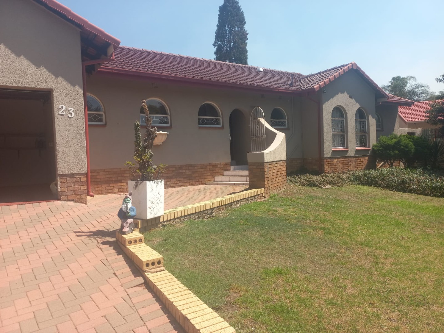 Discover this charming residential property nestled in the established suburban area of Mulbarton, Johannesburg. This home presents a distinctive kerb appeal with its well-maintained tiled roof, a tasteful combination of plastered walls, and exposed brick accents. Arched windows add architectural character, while a paved driveway leads to an integrated double garage, ensuring ample parking. The front entrance is secured with a security gate, enhancing peace of mind.