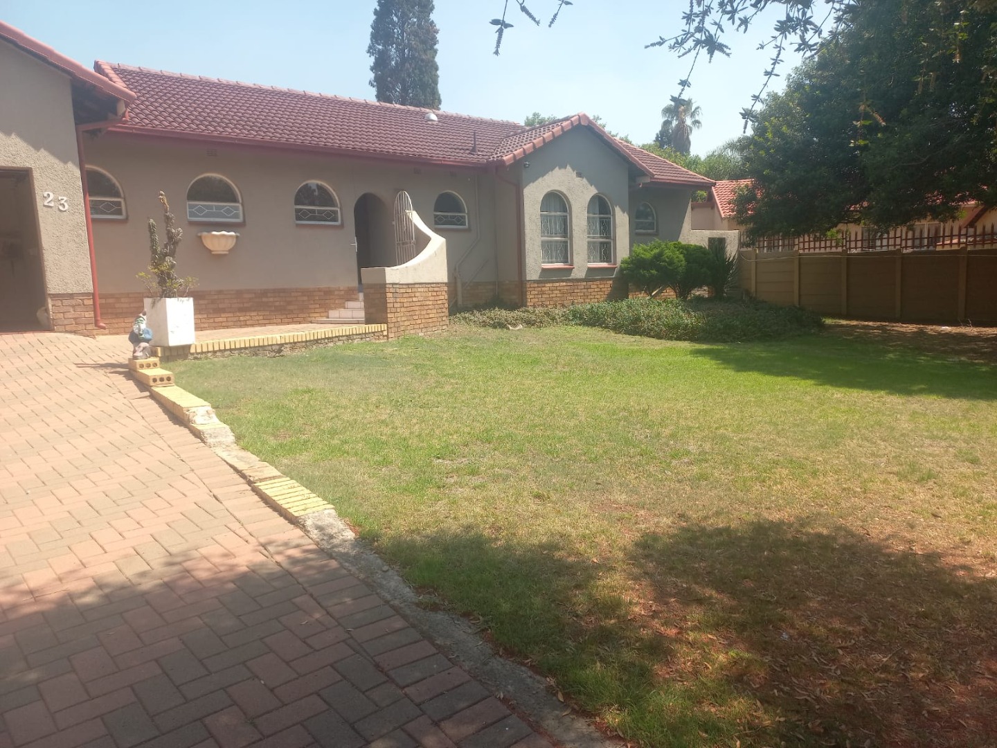 Discover this charming residential property nestled in the established suburban area of Mulbarton, Johannesburg. This home presents a distinctive kerb appeal with its well-maintained tiled roof, a tasteful combination of plastered walls, and exposed brick accents. Arched windows add architectural character, while a paved driveway leads to an integrated double garage, ensuring ample parking. The front entrance is secured with a security gate, enhancing peace of mind.