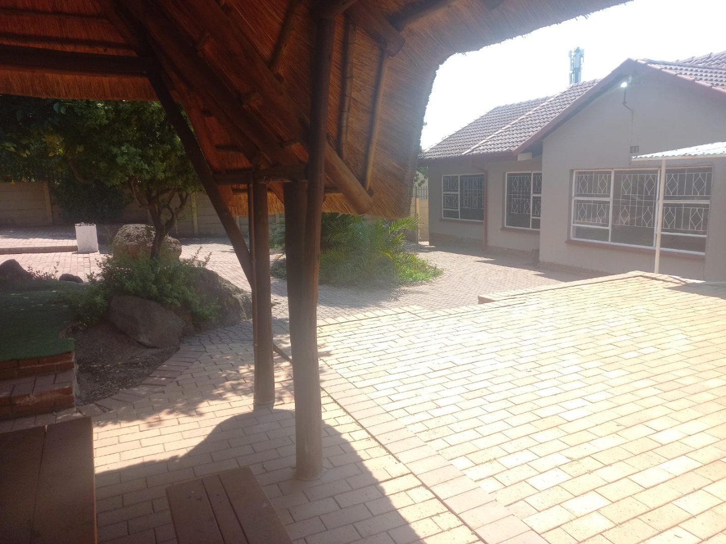 Set on a generous 1078 sqm erf, the outdoor spaces are designed for enjoyment and relaxation. The property boasts a large garden, a refreshing swimming pool, and a lapa complete with a built-in braai, perfect for entertaining guests or enjoying family time outdoors. Additional practical features include staff quarters, outside toilets, and electric fencing for enhanced security. Pets are permitted, making this an ideal home for animal lovers.