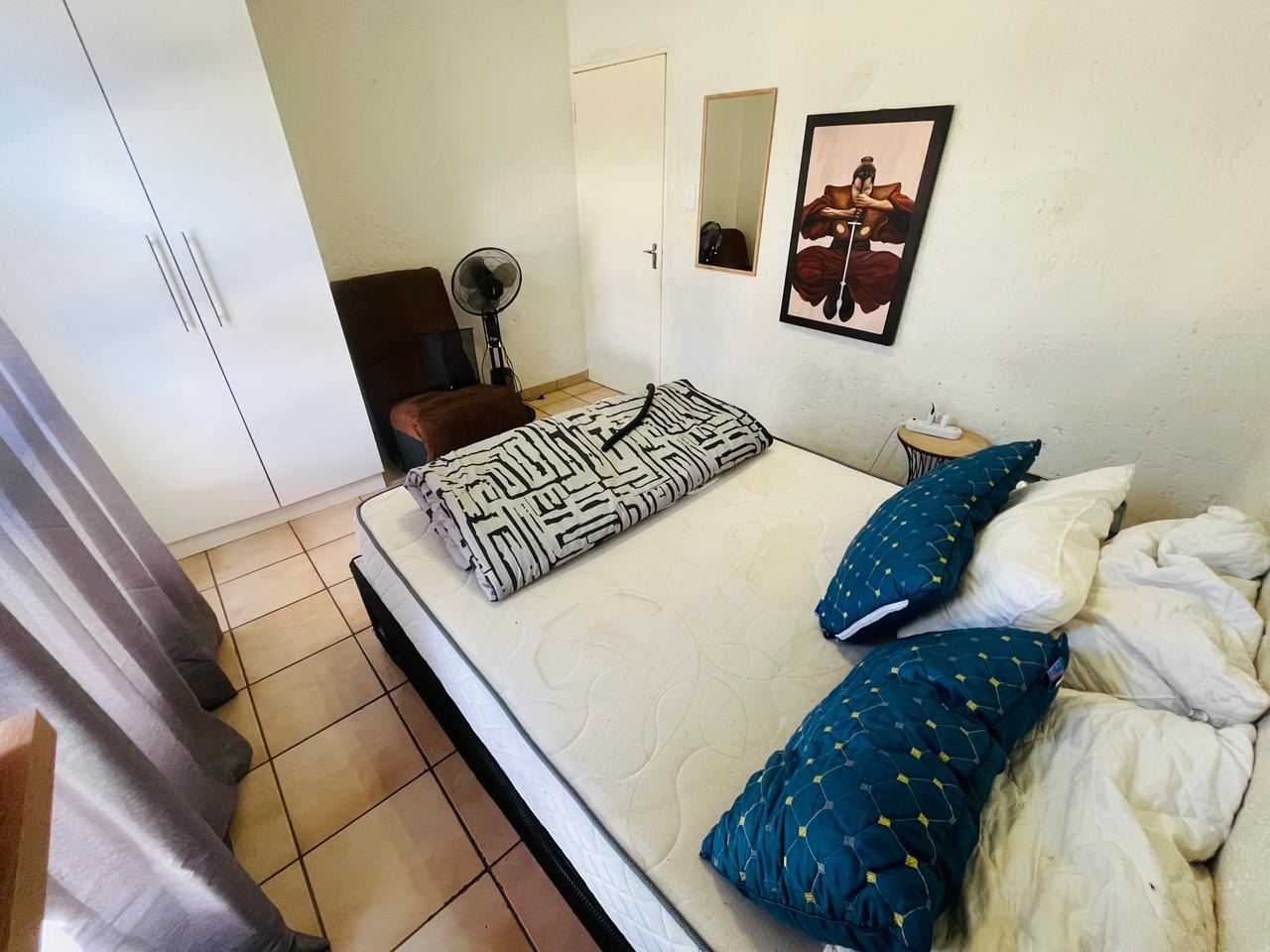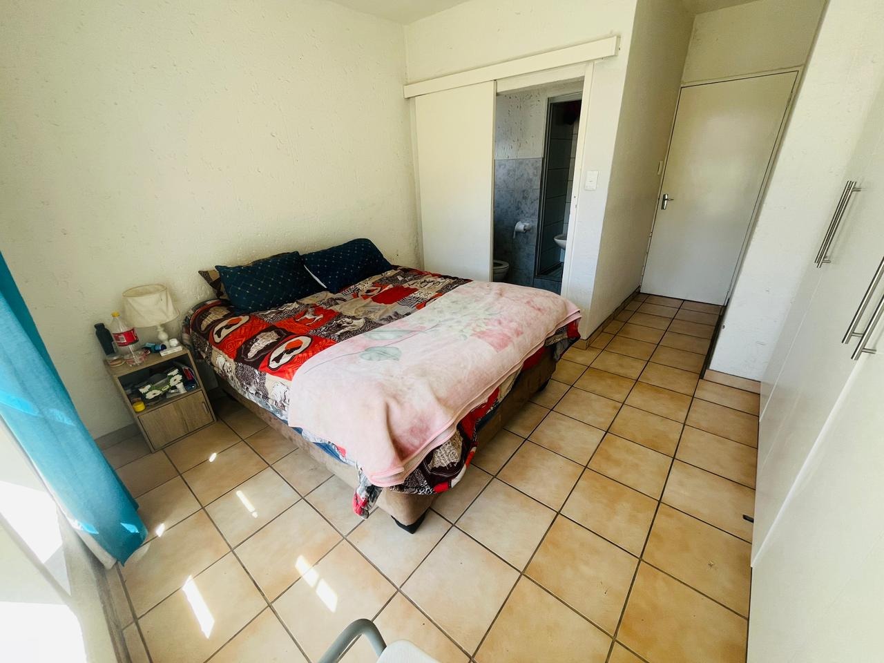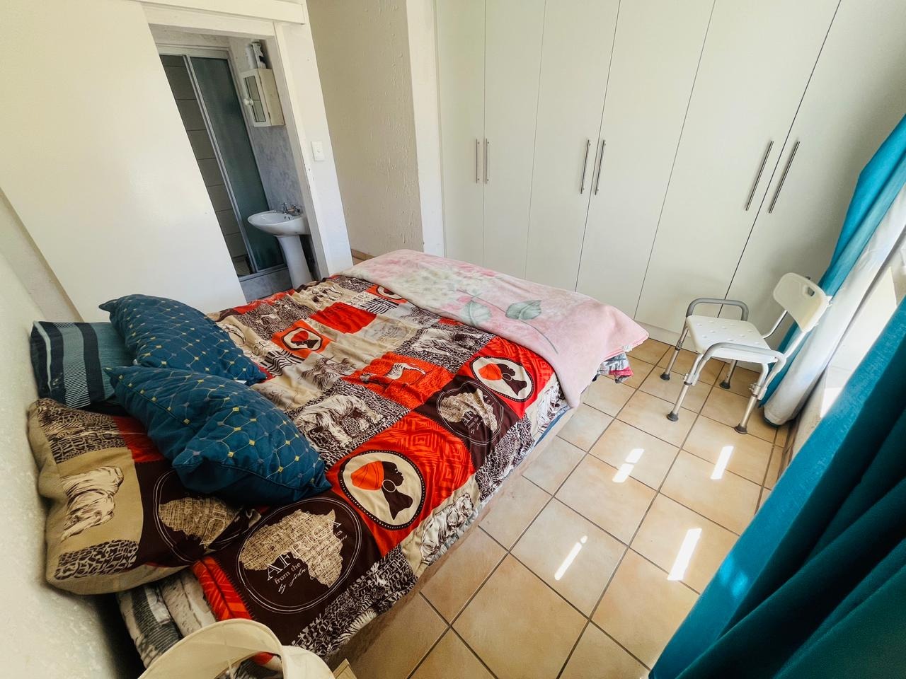 The bedroom is generously sized and fitted with built-in cupboards, providing comfortable accommodation with sufficient storage. The unit further benefits from two bathrooms, adding valuable convenience and flexibility to the home.