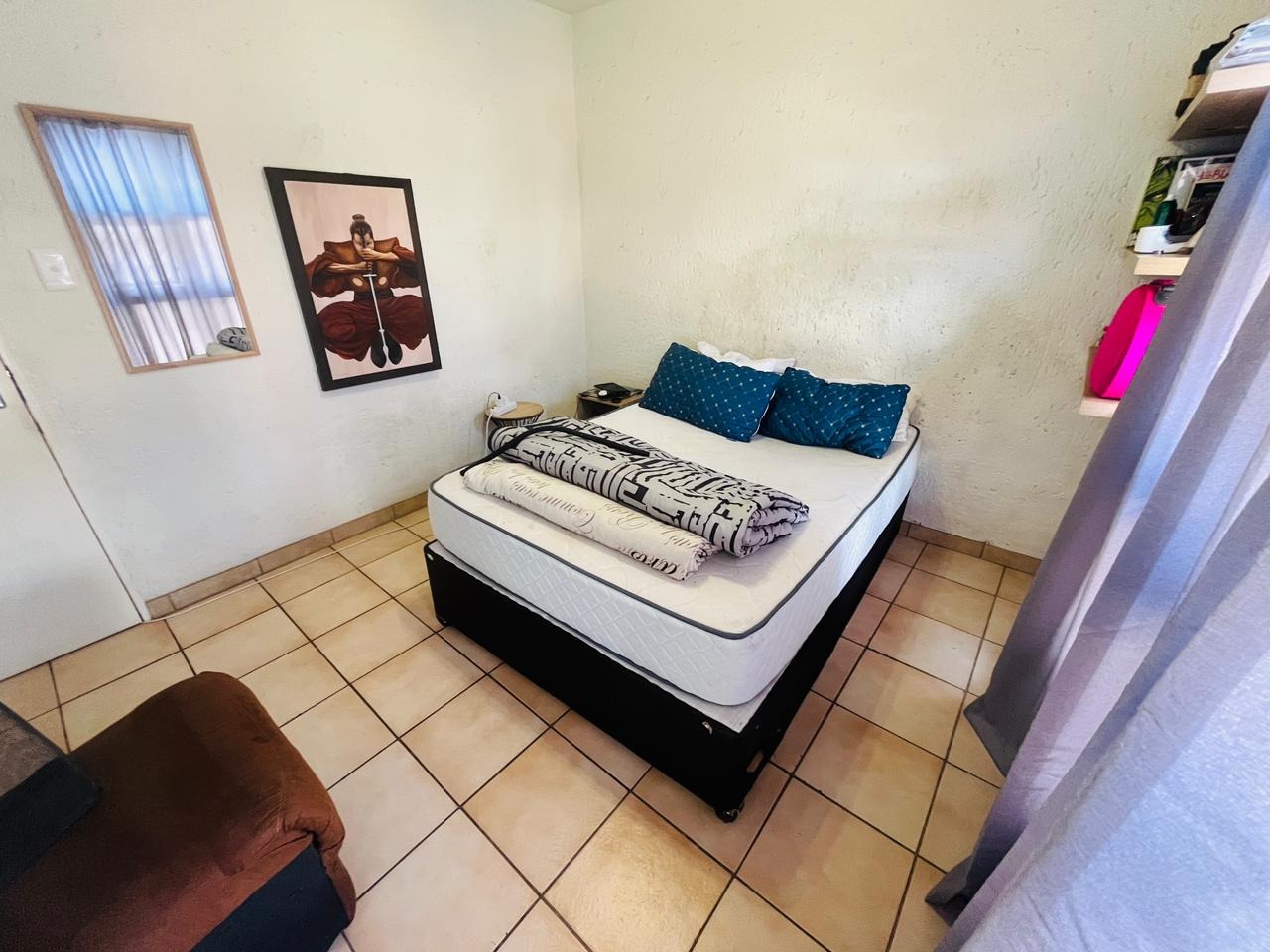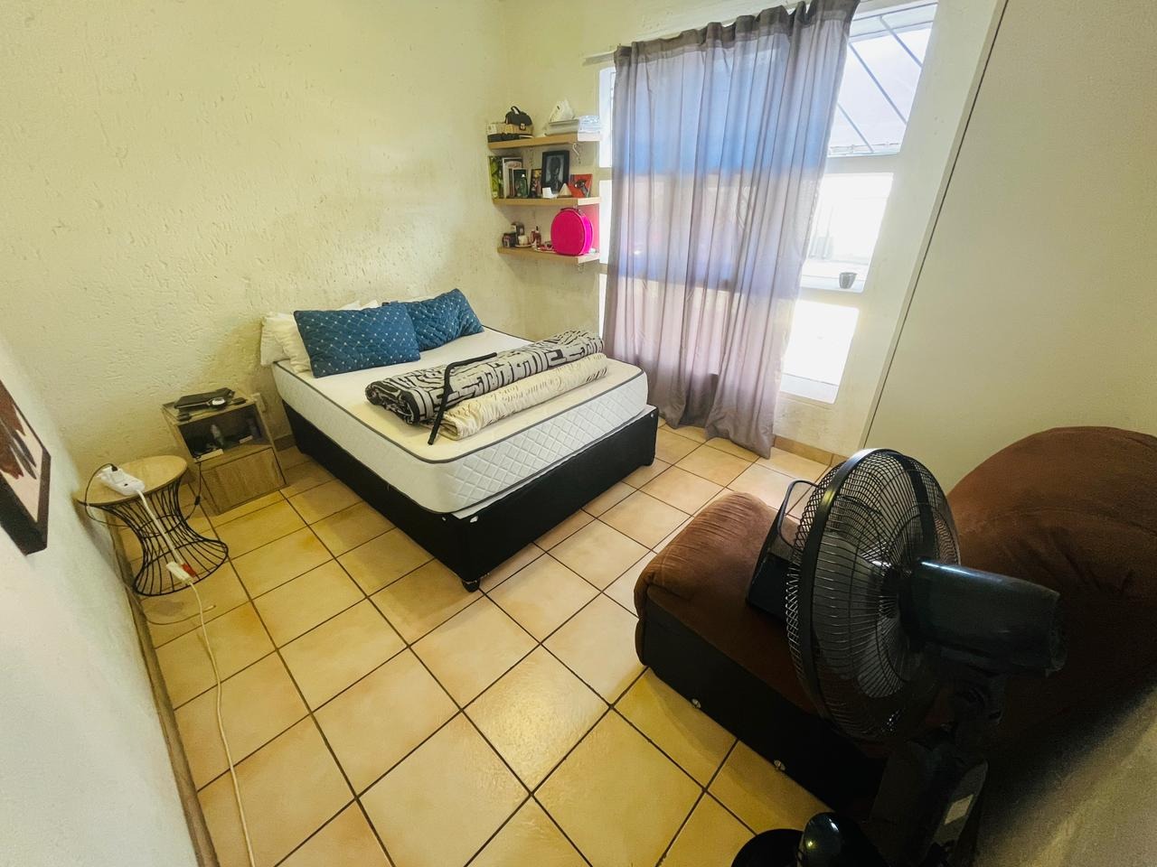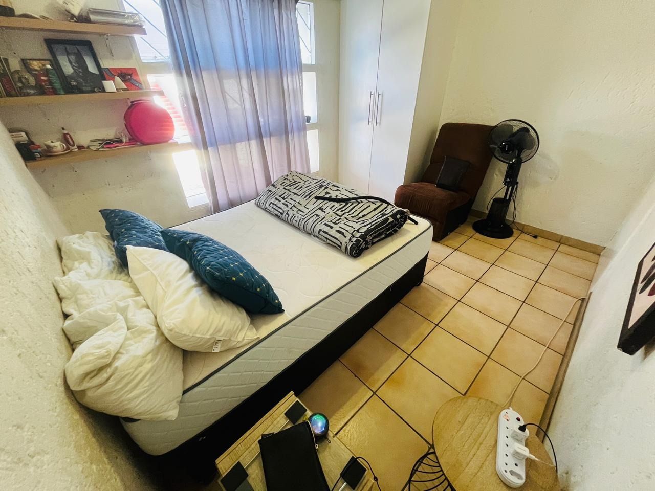 The bedroom is generously sized and fitted with built-in cupboards, providing comfortable accommodation with sufficient storage. The unit further benefits from two bathrooms, adding valuable convenience and flexibility to the home.