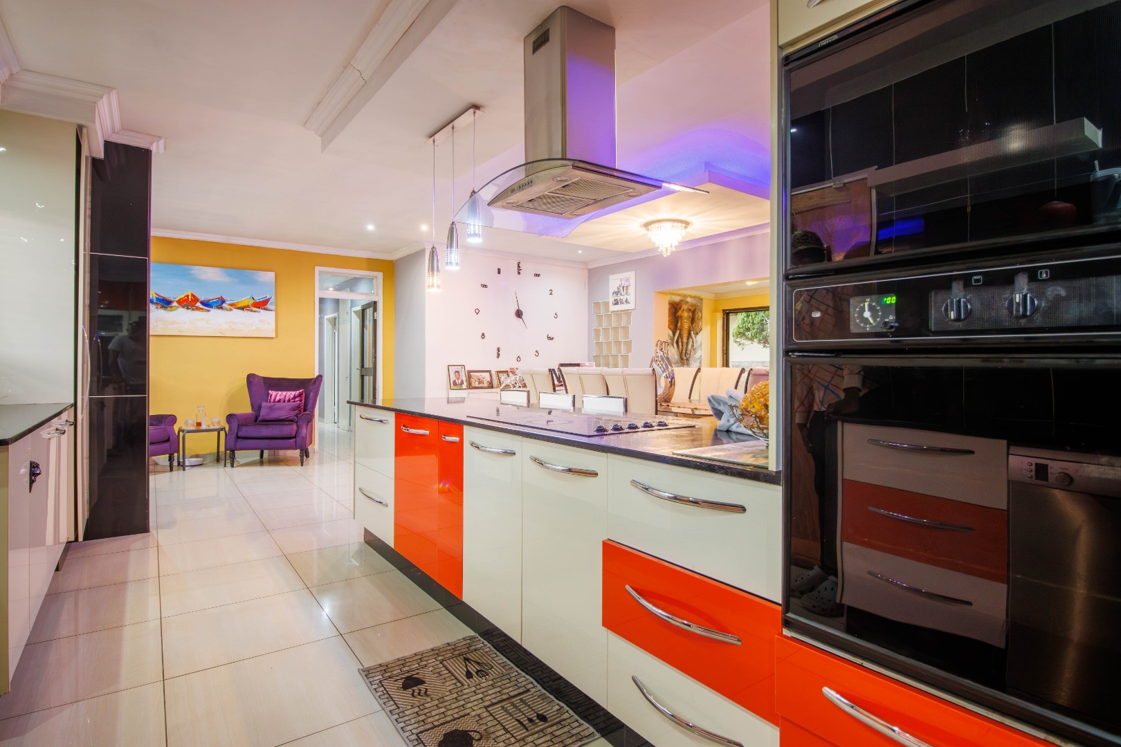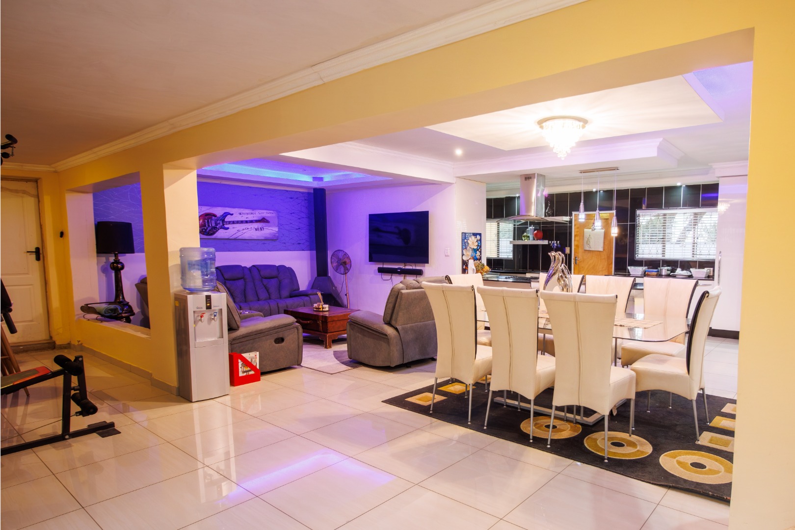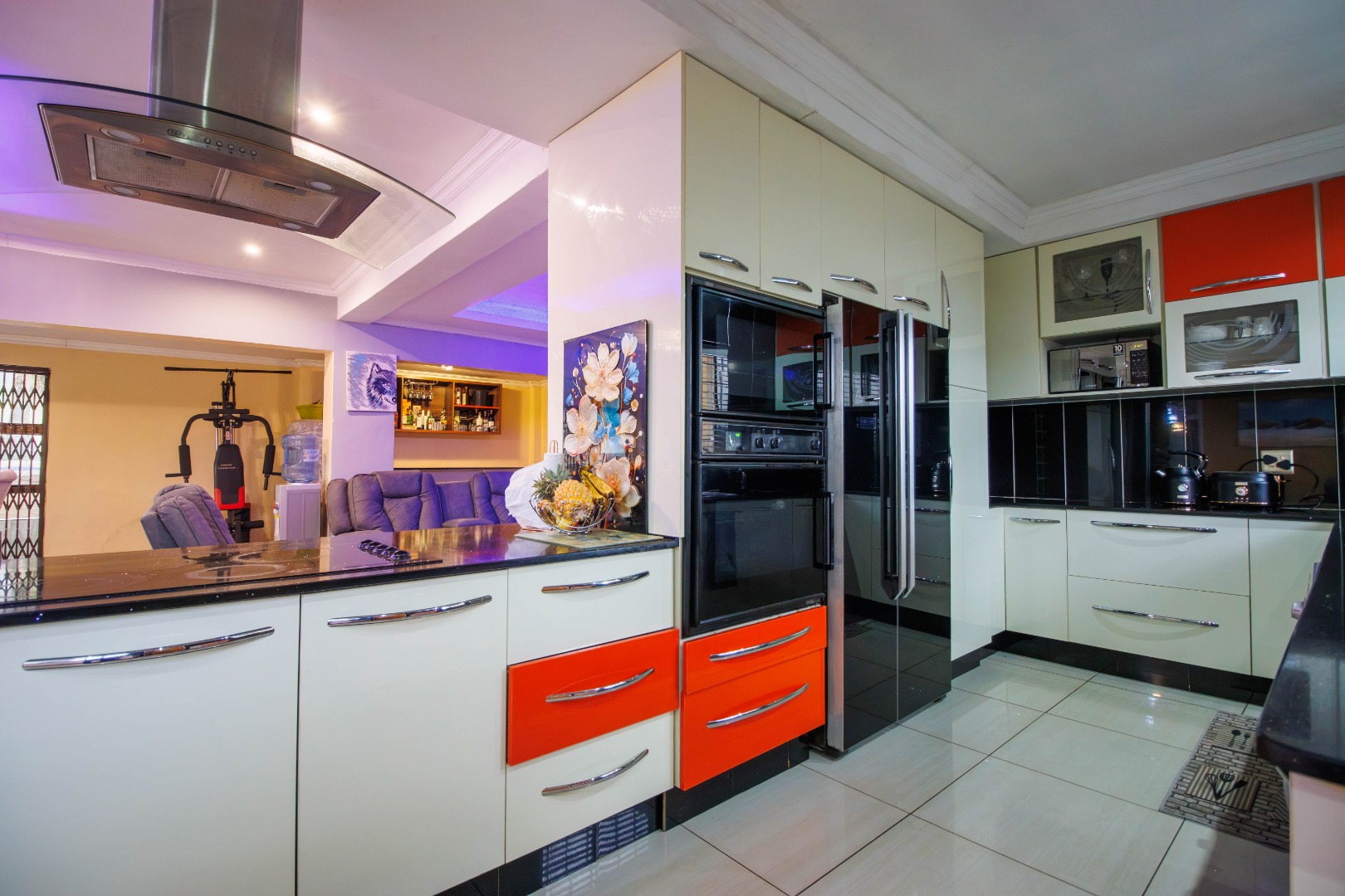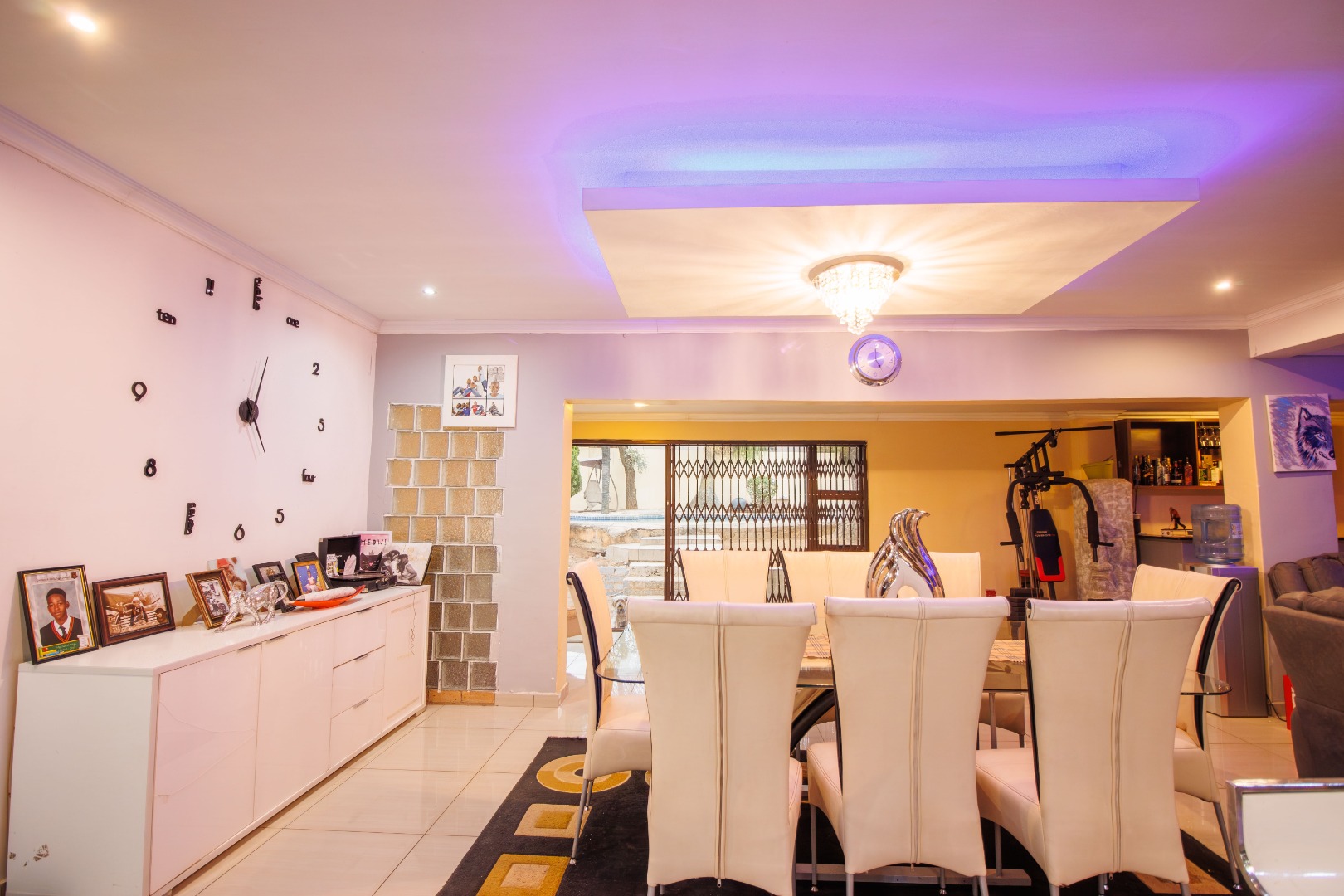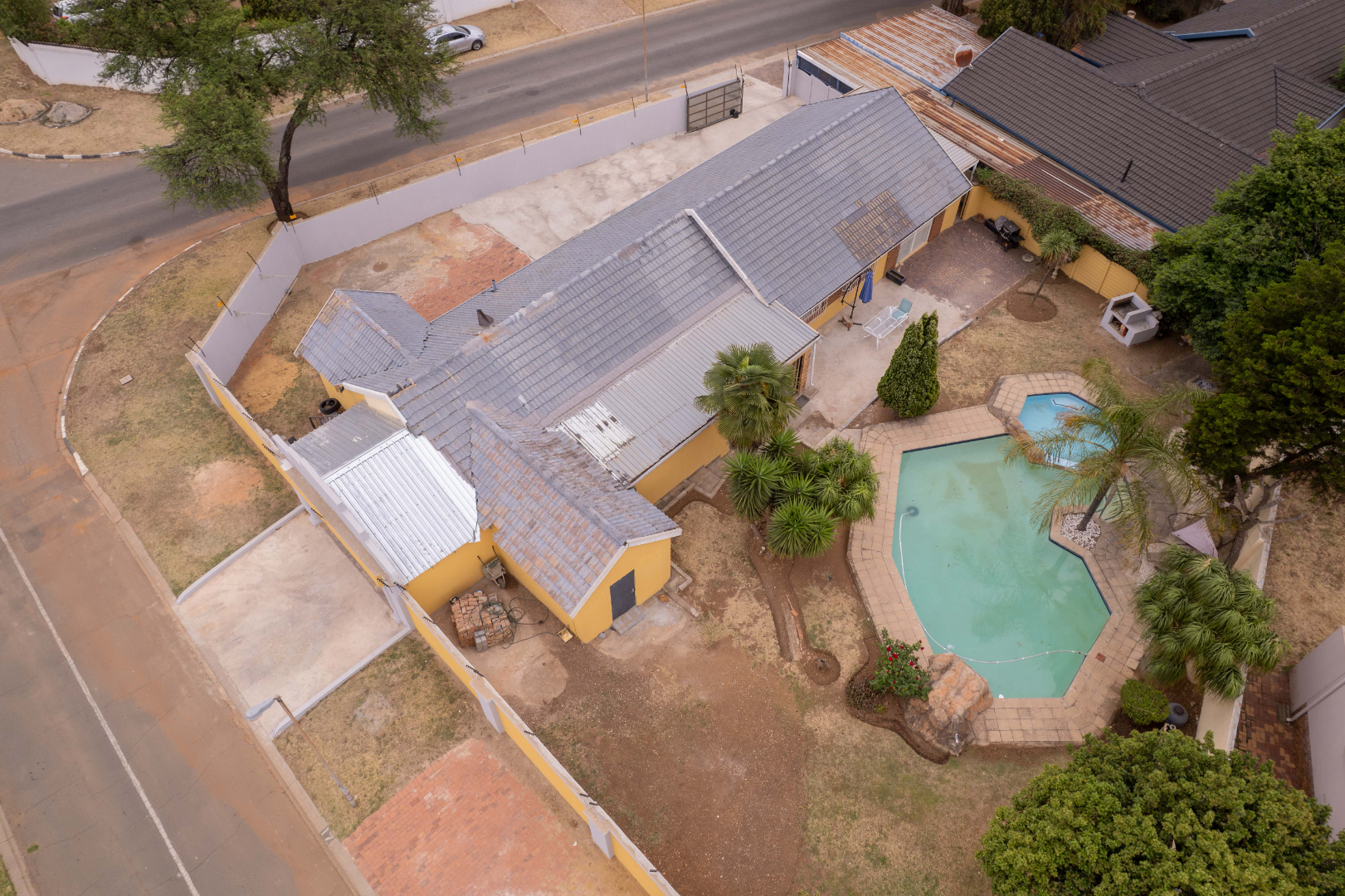 Discover this inviting four-bedroom, two-bathroom family home situated in the desirable suburban area of Mulbarton, Johannesburg. The property immediately impresses with its strong kerb appeal, featuring a high perimeter wall with an electric fence and an attractive two-tone yellow and grey exterior. A paved driveway leads to three garages, offering ample secure parking for up to 12 vehicles, ensuring convenience and peace of mind. Step inside to an intelligently designed open-plan living space, seamlessly integrating a modern kitchen, dining area, and lounge. The kitchen boasts sleek two-tone cabinetry, black countertops, and integrated stainless steel appliances, including a double oven and microwave. Stylish tiled flooring flows throughout, complemented by accent LED lighting. The versatile layout includes a dedicated home gym area and a built-in bar, perfect for entertaining or relaxation. Large sliding doors enhance the indoor-outdoor flow, leading directly to the private outdoor oasis. The residence offers four comfortable bedrooms, with the main bedroom featuring an en-suite bathroom, providing a private retreat. The additional bathroom serves the remaining bedrooms, catering to family needs. Security is paramount, with burglar bars on windows and security gates on doors, alongside an alarm system, ensuring a safe living environment. Outside, the property truly shines with a spacious freeform swimming pool and an adjacent smaller pool/spa, ideal for leisure and enjoyment. A dedicated outdoor braai area is perfect for alfresco dining, set within a garden featuring mature trees that provide shade and a tranquil atmosphere. An outside toilet adds to the convenience of the outdoor amenities. This Mulbarton home combines modern living with robust security and excellent outdoor facilities, making it an ideal choice for families seeking comfort and convenience in a well-established Johannesburg suburb. Key Features: * 4 Bedrooms, 2 Bathrooms (1 En-suite) * Open-Plan Living with Modern Kitchen * Dedicated Home Gym Area * Built-in Bar and Fireplace * Large Freeform Swimming Pool with Spa * Outdoor Braai Area and Garden * 3 Garages and 12 Parking Spaces * High Perimeter Wall with Electric Fencing * Burglar Bars and Security Gates * Erf Size: 953 sqm, Floor Size: 196 sqm